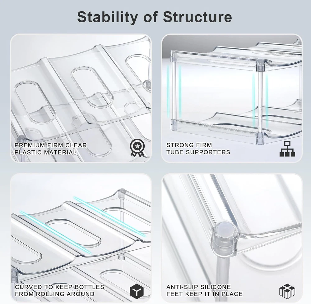Store New Arrivals Add to Favorite View Feedback Contact Our warehouse is located in US, please rest assured you will receive your items in the shortest time. ★Large Compartment Fits Large Bottles or Tumblers - Unlike most water bottle storage products, we gathered customer complaints that what they have bought doesn't fit common large size water bottles. We improved it so that each compartment grid measures 4" wide and 4 " high, perfectly fitting some large water cups or bottles up to 40 OZ. ★For Example - for YETI or STANLEY Brand 30oz insulated tumbler; for Nalgenes Brand 32oz wide mouth water bottle; for Hydro Flask Brand 32oz/40oz wide mouth bottle; for STANLEY Brand 40oz insulated tumbler with handle, etc. ★Quick Assembly and Stacking - No tools required, just 1 minute to assemble. The water bottle storage holder rack are easily stackble and can be freely split and combined, you can assemble any tiers you want to maximize the space, such as 1 tier, 2 tiers, 3 tiers, 4 tiers, 5 tiers, 6 tiers and more. ★Simple 3-Tier Bottle Storage Holder Rack - Size: 13.5" L x 7.8" W x 9.5" H, hold 9 bottles. Modern, stylish and chic design complements any interior. Fits most household water bottles or tumblers, like glass or plastic water bottles, sport bottles, insulated travel mugs or tumblers, baby bottles, kids sippy cups and many more. Ridges on both sides prevent bottles from rolling and give each bottle a room. ★High Quality Clear Material and Solid Construction - Each shelf is made of thick clear plastic. Each tier is tightly connected by 4 sturdy solid posts. The 3 tier water bottle holder can hold up to 30 lbs each tier without wobble or crack. (Note: not dishwaher safe) ★Versatile Home Storage and Organization - Not only can you use it for water bottle storage in cabinet or counter top, but also for other scenarios such as pantry or fridge shelf, cupboard, wine cellar, under sink closet, kitchen or office countertop, bar, rv etc. You can use it to store many cylindrical items such as sodas, drinks, cans, toiletries, bottled condiments, wine displays and more. Product Description LANDNEOO BRAND WATER BOTTLE ORGANIZER Add to Cart Add to Cart Add to Cart Add to Cart Add to Cart Add to Cart Add to Cart Customer Reviews 4.7 out of 5 stars 1,043 4.7 out of 5 stars 1,351 4.7 out of 5 stars 1,043 4.7 out of 5 stars 1,043 4.7 out of 5 stars 1,351 4.7 out of 5 stars 1,043 4.7 out of 5 stars 1,351 Price $16.99 $ 16 . 99 $14.99 $ 14 . 99 $14.99 $ 14 . 99 $19.99 $ 19 . 99 $17.99 $ 17 . 99 $12.99 $ 12 . 99 $11.99 $ 11 . 99 Color Clear Clear White Clear Clear Clear Clear Fit Small & Large Tumblers ✔ ✔ ✔ ✔ ✔ ✔ ✔ Freely Split & Combined ✔ ✔ ✔ ✔ ✔ ✔ ✔ Be Freestanding & Stable ✔ ✔ ✔ ✔ ✔ ✔ ✔ Food Grade Material ✔ ✔ ✔ ✔ ✔ ✔ ✔ Please Check the Diamensions Before Ordering Overall Size - 13.5"L x 7.8"W x 9.5"H. Compartment Size - 4" Diameter Please check the overall diamensions & compartment size and measure your cabinet/closet or tabletop space dimensions before ordering in case it doesn't fit. Overall Size - 13.5"L x 7.8"W x 9.5"H. Compartment Size - 4" Diameter Please check the overall diamensions & compartment size and measure your cabinet/closet or tabletop space dimensions before ordering in case it doesn't fit. Fit Large Tumblers Bottles Premium Quality Multiuses WINE DISPLAY RACK CAN OR SODA DRINKS STORAGE TOILETRIES STORAGE