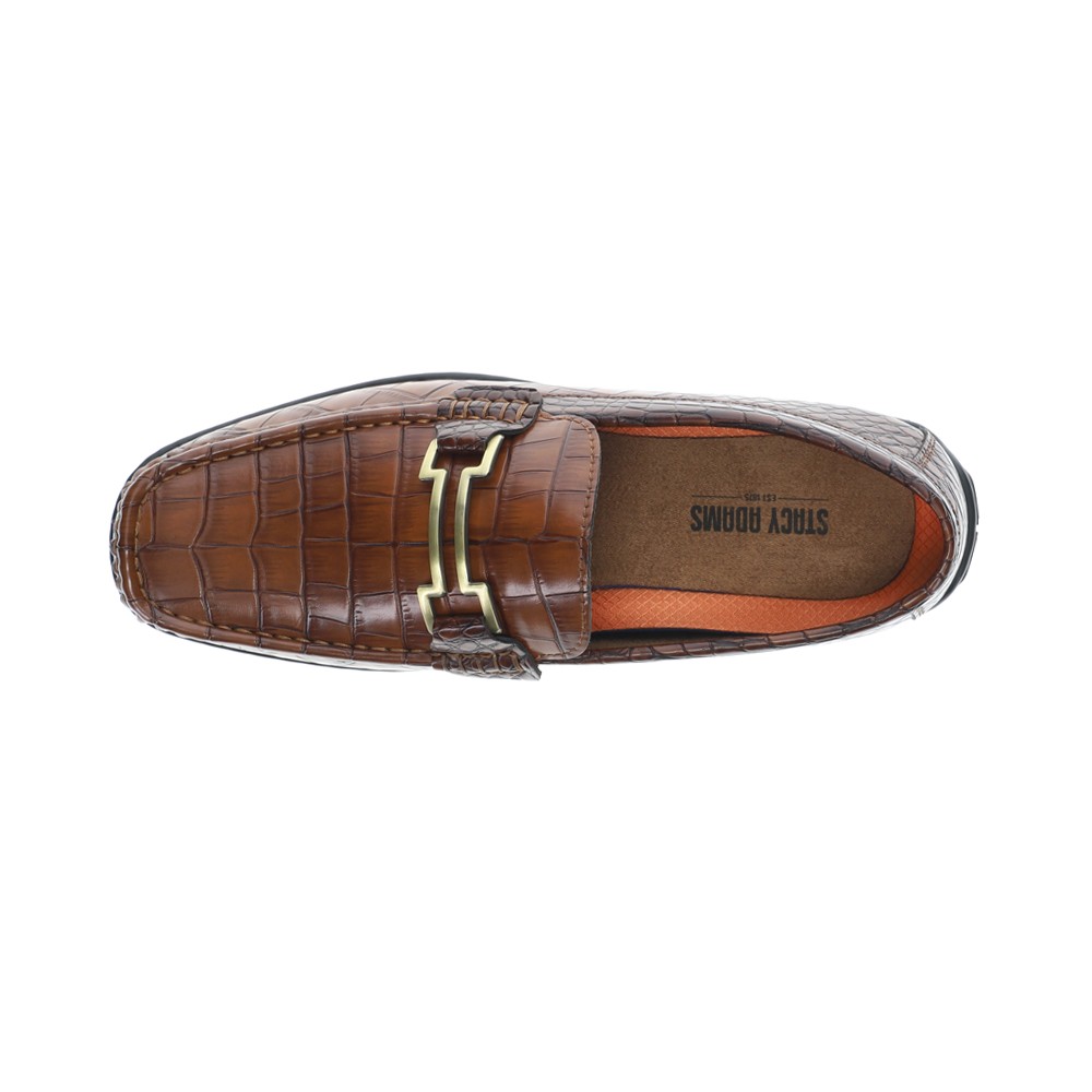 Embrey Croc Slip On Moc Toe Dress Shoes Product Details Croco Print man-made upper Microfiber linings for comfortability Fully cushioned insole with Memory Foam for all-day comfort Durable man-made outsole Flexible, TRUFOAM EVA outsole with rubber pods provides lightweight, cushioned comfort. From its crocodile print upper to its eye-catching colors and the elaborate metal bit, the Stacy Adams Embrey Moc Toe Bit Slip On is the hardest working loafer of the season. An attention grabber from every angle, it also features a cushioned footbed for all-day comfort. Additional Details Color: Brown Occasion: Dress Gender: Mens Age: Adult Brand: