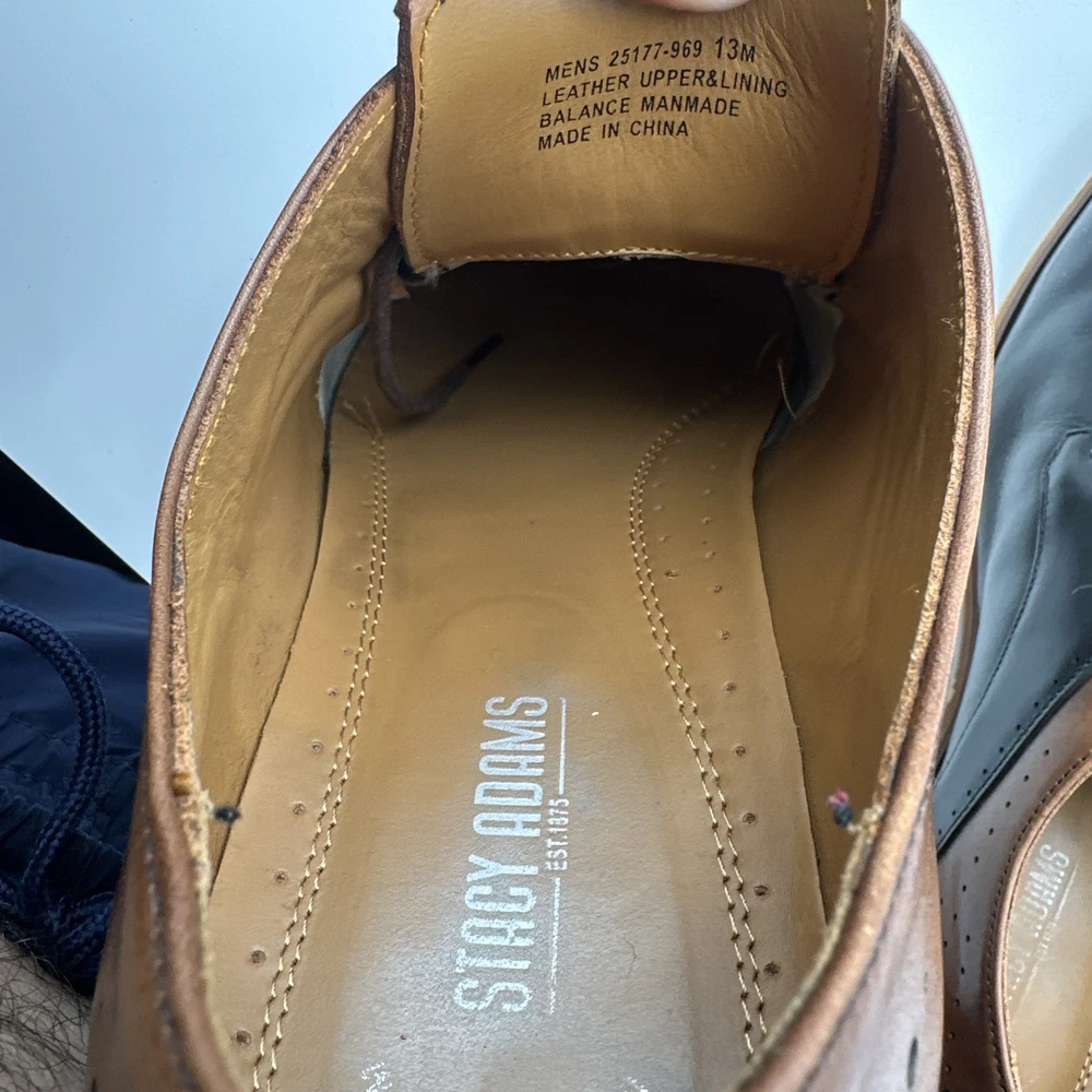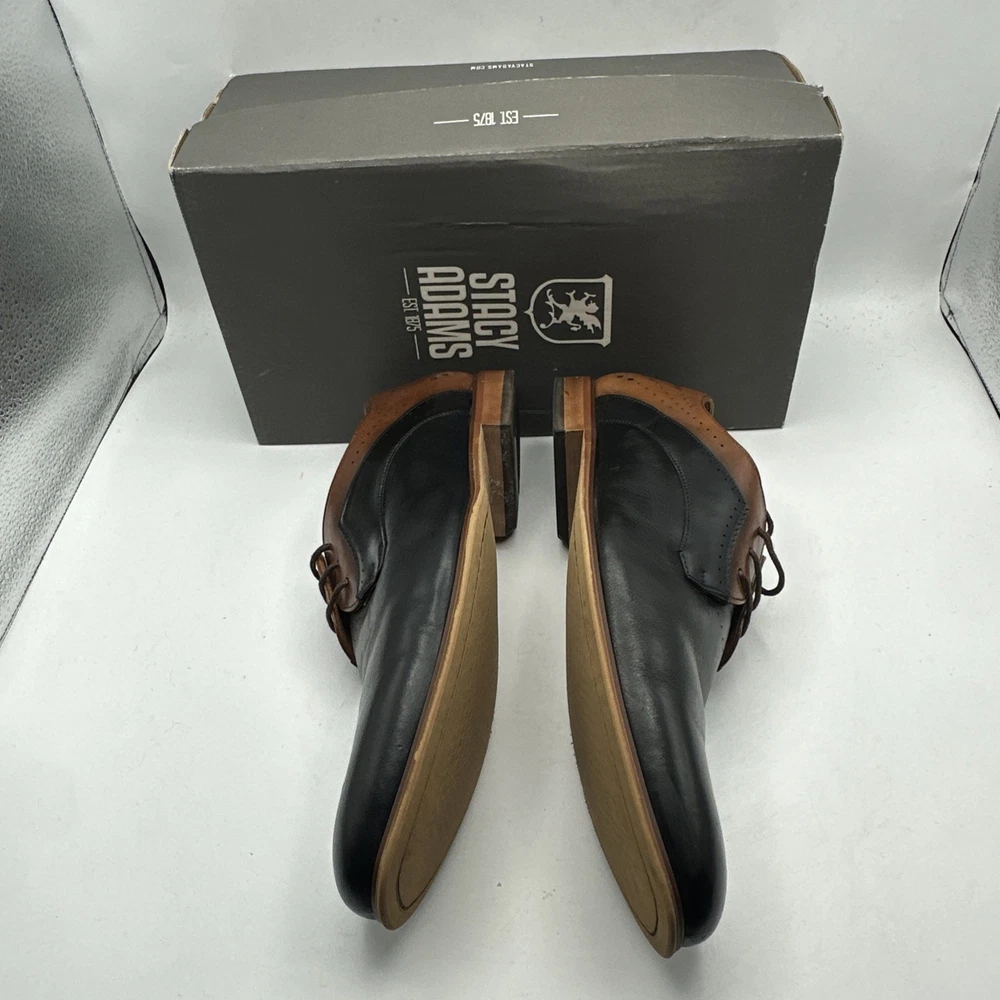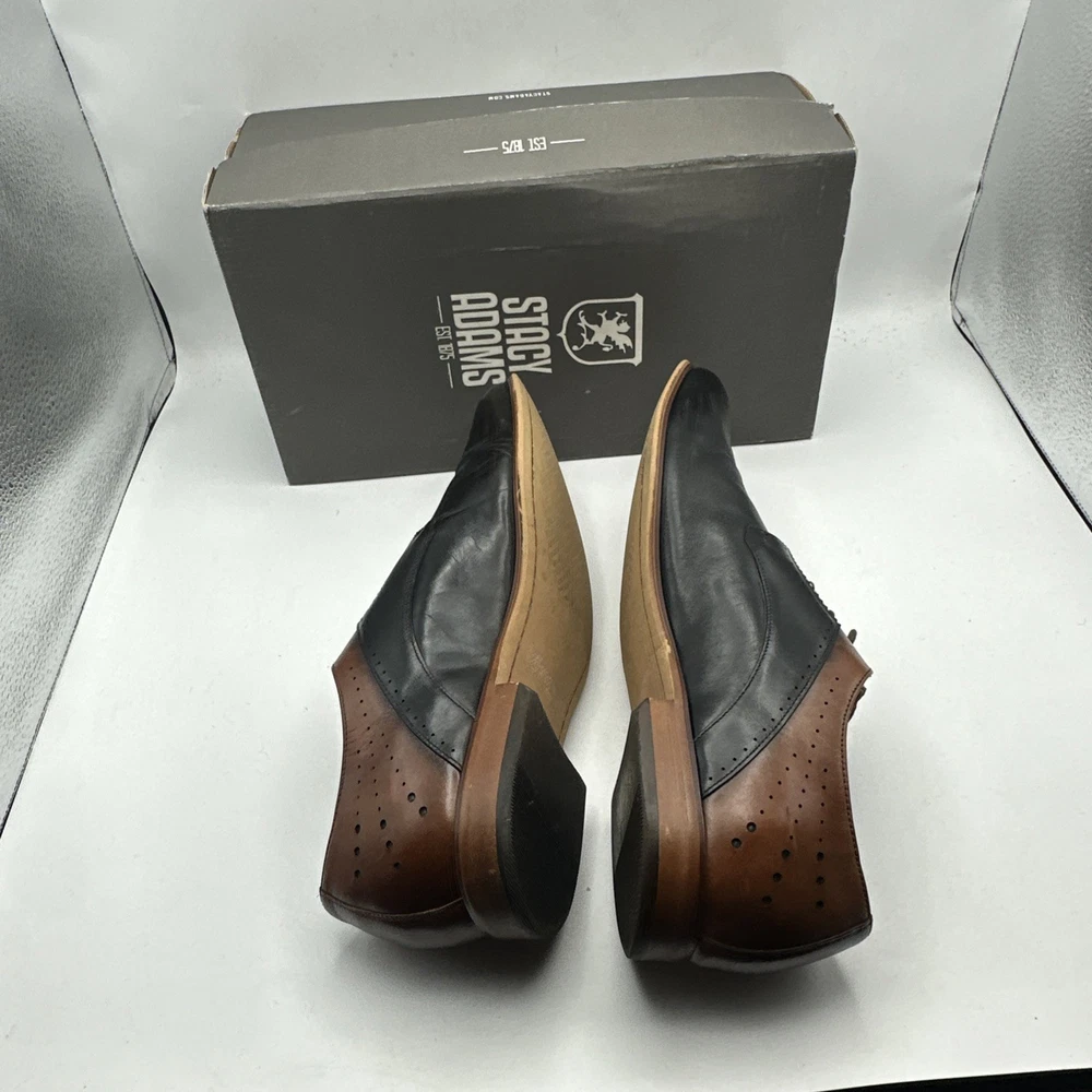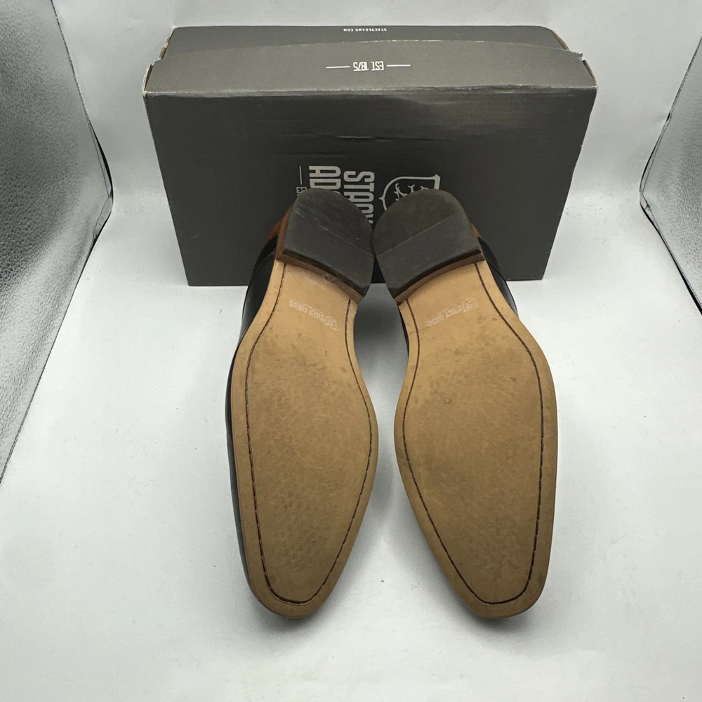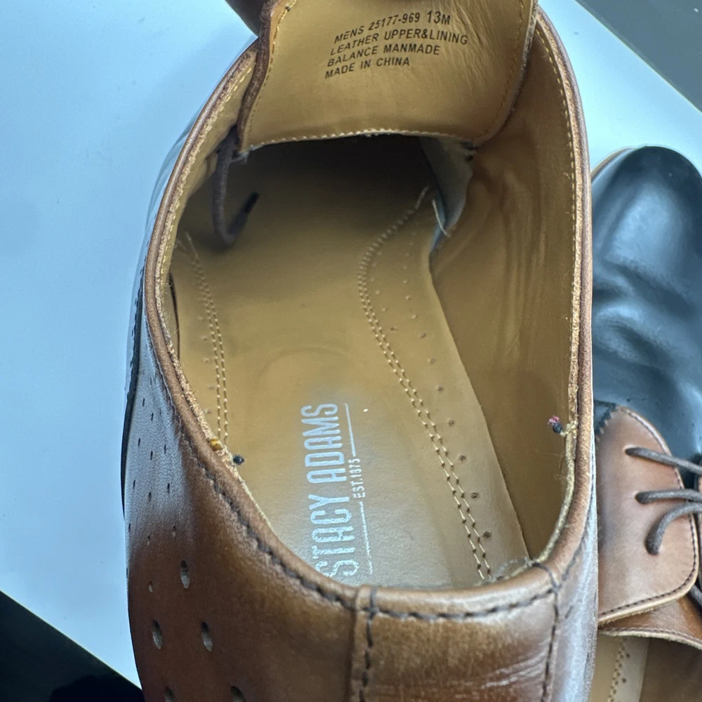 These Stacy Adams Men's Size 13 Shoes in Black Brown Leather with a Plain Toe Savion Office Dress are a stylish and versatile addition to any man's wardrobe. The almond toe shape and lace-up closure give them a classic and modern look, perfect for various occasions. Made with high-quality leather, these shoes are durable and comfortable for year-round wear. The solid black color and leather lining and outsole add a touch of sophistication to any outfit, making them a great choice for the office or a night out on the town.