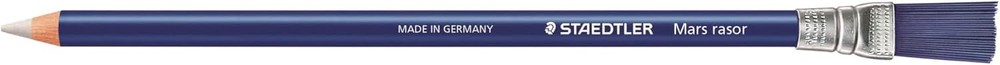 Staedtler Eraser Pencil with Brush, White, Blue, 1 1 Count (Pack of 1), Blue Product Details Manufacturer: STAEDTLER-MARS LTD Brand: Staedtler Item Weight: 0.705 ounces Product Dimensions: 10.28 x 2.6 x 0.35 inches Item model number: 526 61BK-CST Color: Blue Closure: No cap Grip Type: Round Shape Shape: Pencil,Pen Material Type: Wood Number of Items: 1 Size: 1 Count (Pack of 1) Point Type: Bold Line Size: 1.0-1.9mm Ink Color: White Manufacturer Part Number: 526 61BK-C Brand: Staedtler Color: Blue Material: Wood Recommended Uses For Product: Writing Special Feature: Brush Eraser pen with brush Phthalate and latex free Box contents: blister card with an eraser pen. Wood from certified, sustainably managed forests Get the precise erasing you want and need with this two-sided Pencil---with an white slender erase tip on one end a brush on the other. The hard, white erase can be used traditionally to erase away lead marks (as well as ink, India ink, and ballpoint pens), which works especially well for intricate sketches. Then use the incorporated brush to wisp and clean away the eraser residue left on your paper. Latex-free.