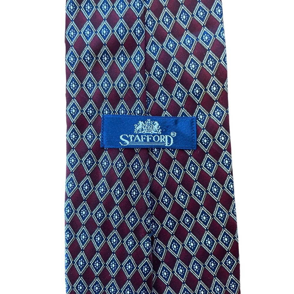 Stafford Neck Tie All Silk Made in the USA Red Blue Geometric Pattern Formal Photos are part of description. Condition: Excellent (Pre-Owned) Brand: Stafford Gender: Men's Category: Tie Color: Red Blue with pattern Stafford Neck Tie All Silk Made in the USA Red Blue Geometric Pattern Formal