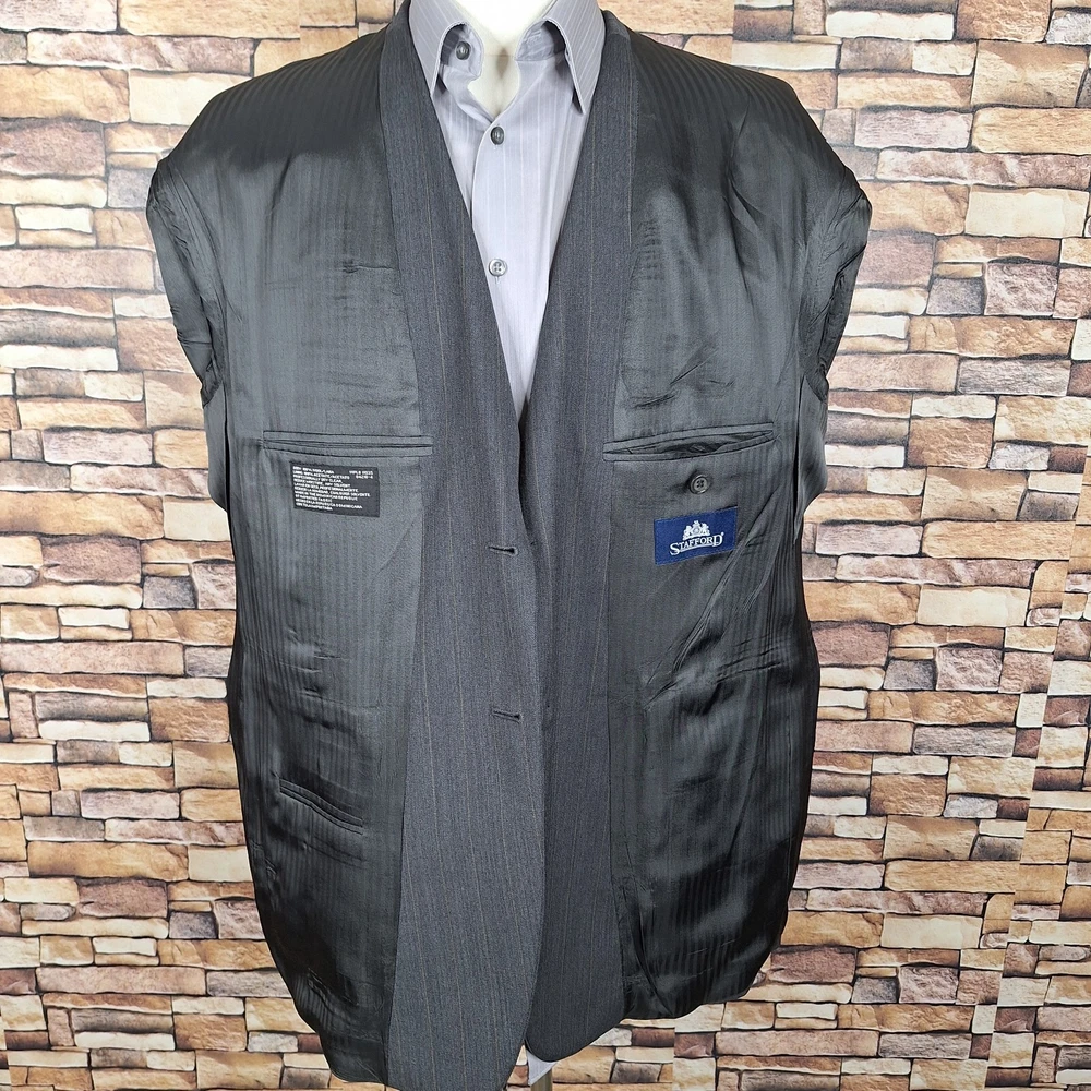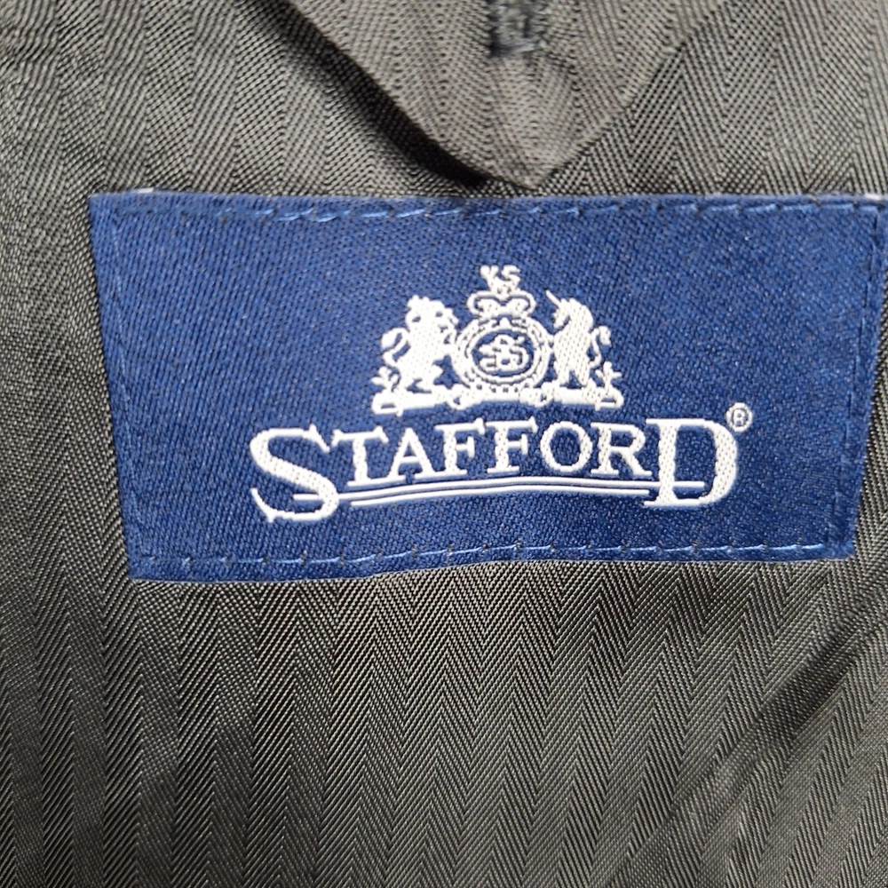 Brand: Stafford Size: 44 Fit: Regular Jacket Sleeve Button Style: Four-Button Chest Size: 44 Garment Care: Dry Clean Only Features: Inner Pockets Personalize: No gtin13: Does not apply Waist Size: 34 in Season: Fall, Spring, Summer, Winter Style: 2 Piece Seller Notes: “Quality used condition. Please check out the measurements before buying to ensure a perfect fit.” Jacket Vent Style: Ventless Color: Gray Front Type: Pleated Material: Wool Jacket Lapel Style: Notch Jacket Cut: Single-Breasted Jacket Front Button Style: Two-Button Theme: Classic, Designer, Elegant, Modern, Preppy, Wedding Department: Men Occasion: Business, Casual, Formal, Party/Cocktail, Travel, Wedding UPC: Does not apply Pattern: Striped Inseam: 28 Number of Pieces: 2 Piece Size Type: Regular Lining Material: Acetate Handmade: No Jacket/Coat Length: Short Type: Suit