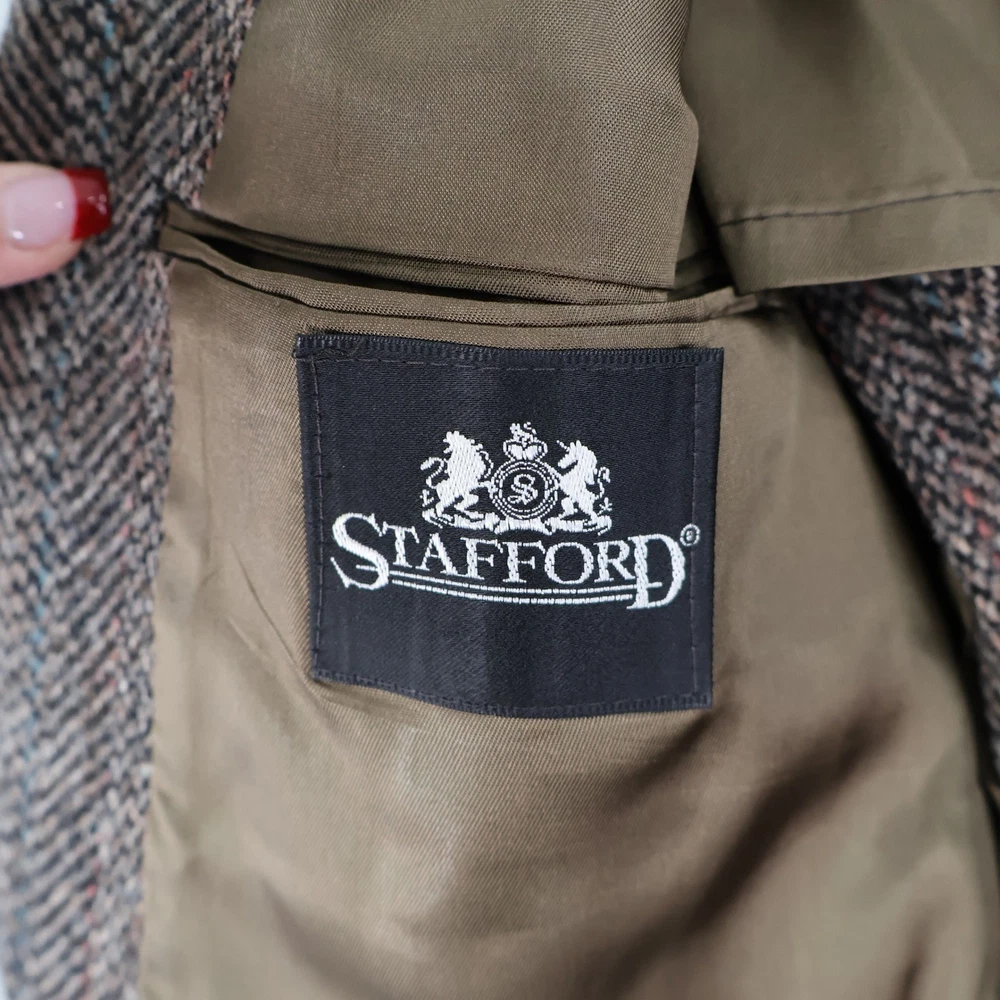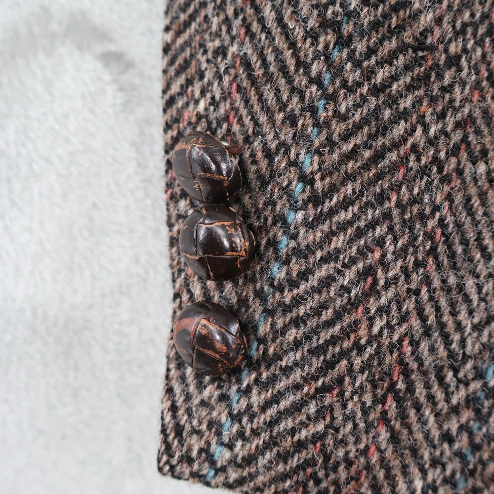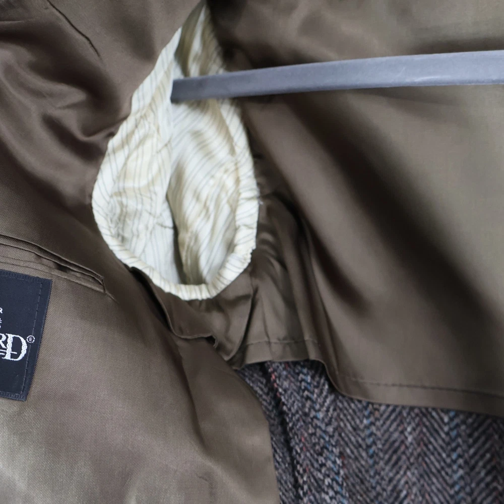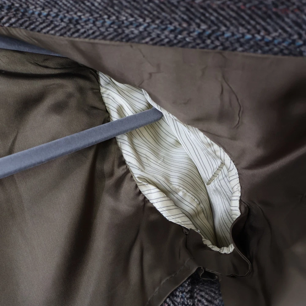 Classic mens blazer, a handsome fusion of heritage and style. This sophisticated piece features a timeless herringbone pattern in rich, earthy tones, complemented by a classic three-button closure and notched lapel. The blazer is fully lined, and includes functional pockets for added practicality. The handwoven Scottish wool provides warmth and durability, making it a versatile layering piece. Perfect for smart-casual events, weekend getaways, or adding a touch of refinement to your everyday ensemble. Size has been estimated based on measurements: Chest: 20.5" Shoulder to Shoulder: 17.5" Waist: 19" Length: 31.5" Sleeve Length" 26.5" Keywords: Preppy, Academia, Professor, Classic, Old Money, Country Club C3 •All clothing items have been steam sanitized or washed. •Please compare the measurements to something you already own.