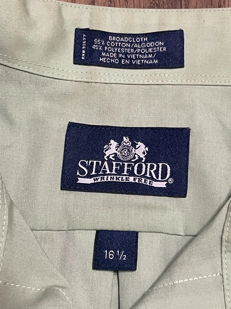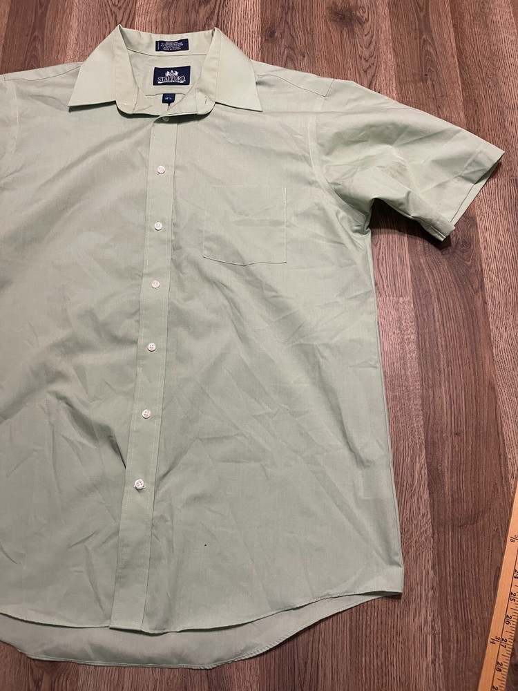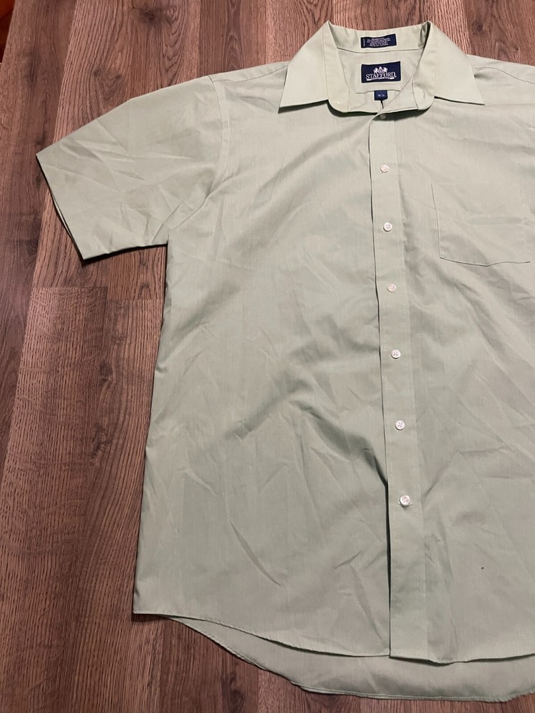Stafford Shirt, Men's Size 16.5, Green, Button Up, Short Sleeve, Broadcloth Good used condition Size: 16.5 Questions are welcomed Color may vary slightly due to lighting Please Review all photos before purchasing Thanks for stopping by FREE Return!