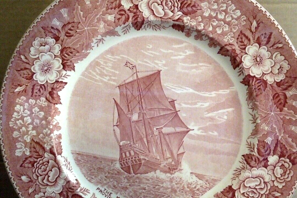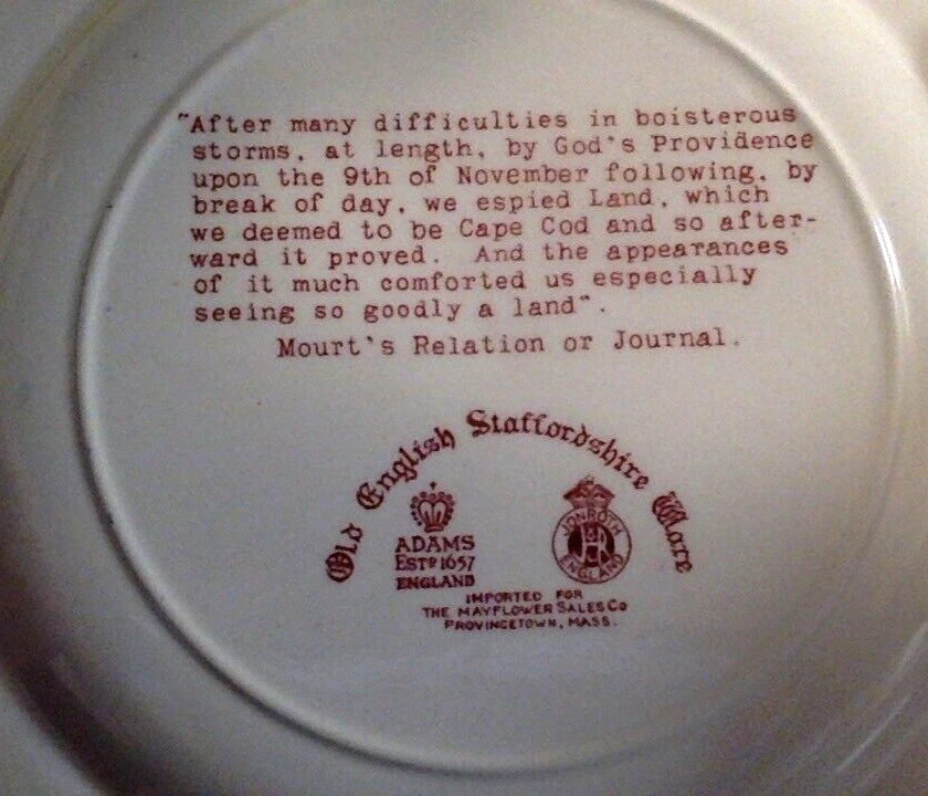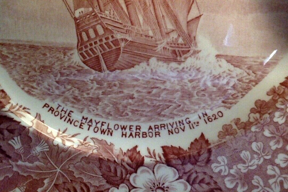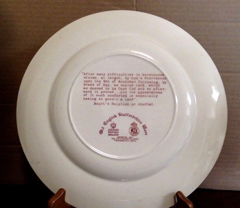 VERY GOOD used condition, NO chips or cracks, slight wear due to age, see photos. Approximately 10 inches in diameter. Rare image of the Mayflower from the stern of the ship. Great item for collectors or Thanksgiving decor. Ships via UPS ground. Thanks for looking, and enjoy!!!