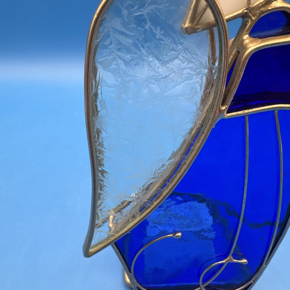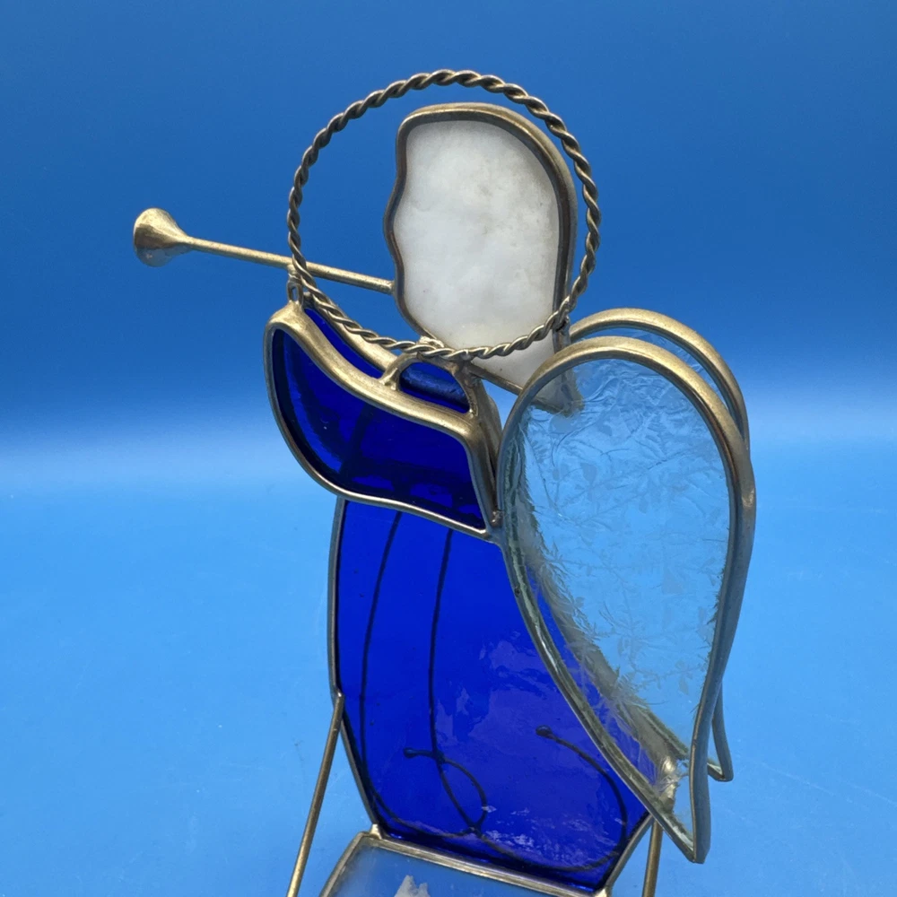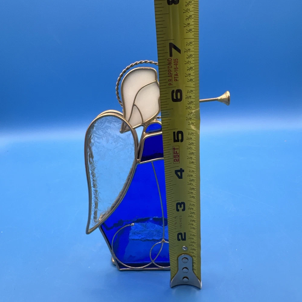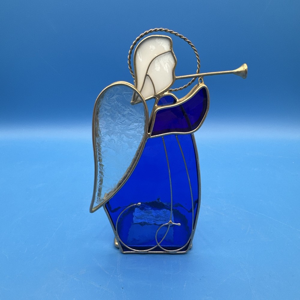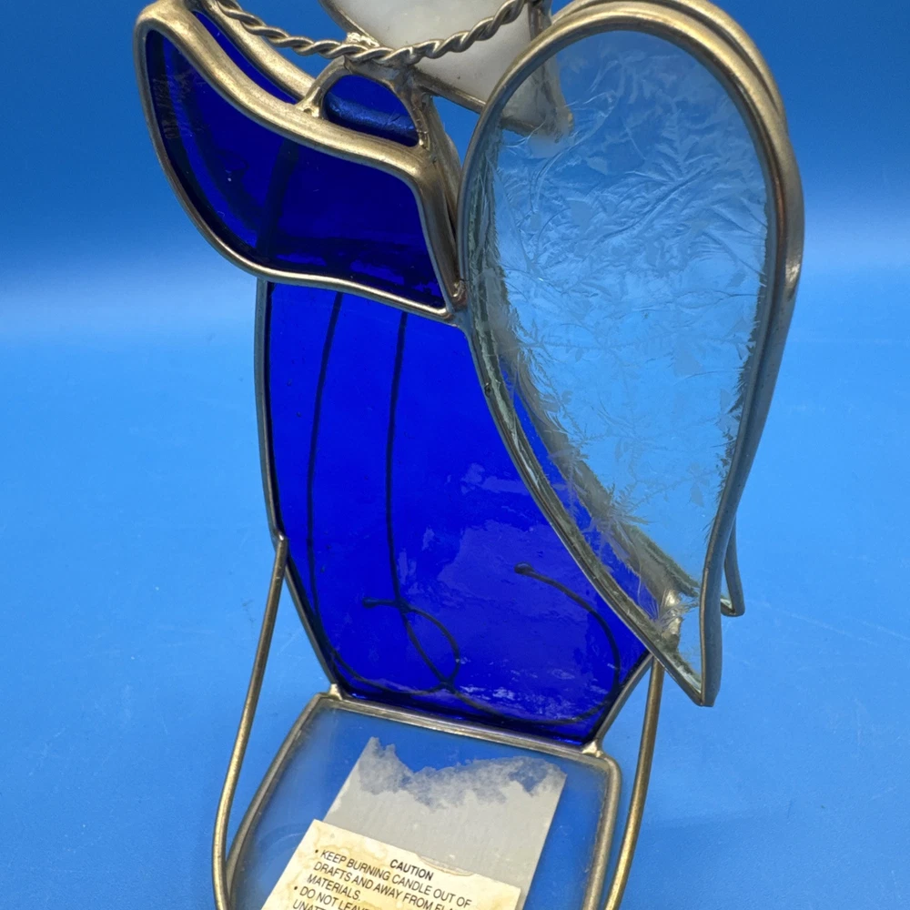 The product is a Stained Glass Angel Candle Holder designed to hold tea lights. It features a multicolor stained glass design with an angel subject. This decorative collectible is perfect for adding a warm and cozy atmosphere to any space. Pre-owned excellent condition. Hardly used. No cracks or damages. No original box. Please check the pictures carefully as part of the description. Feel free to ask questions if you need more information before you buy it. Thank you for your interest C-5
