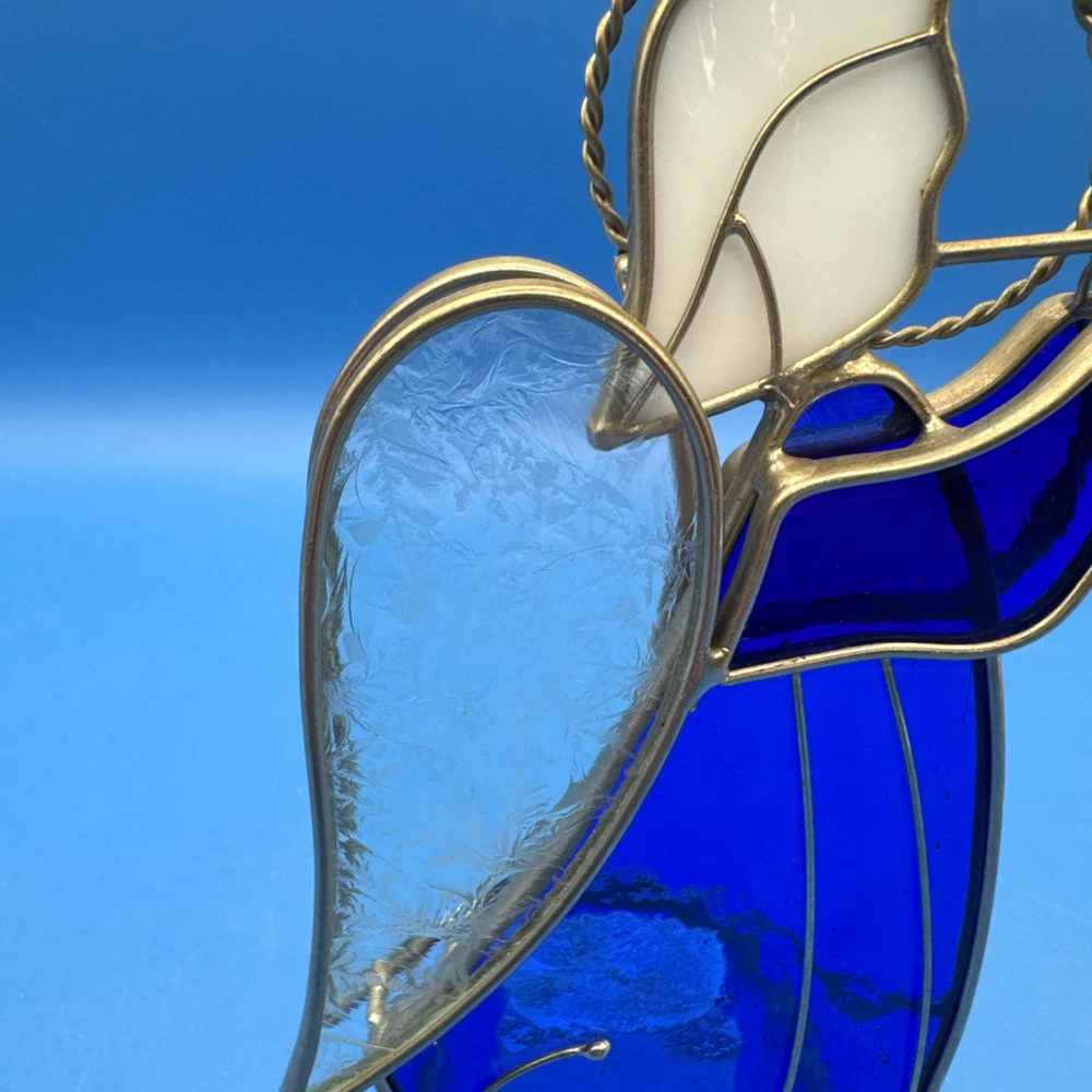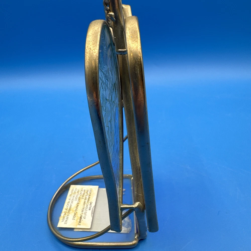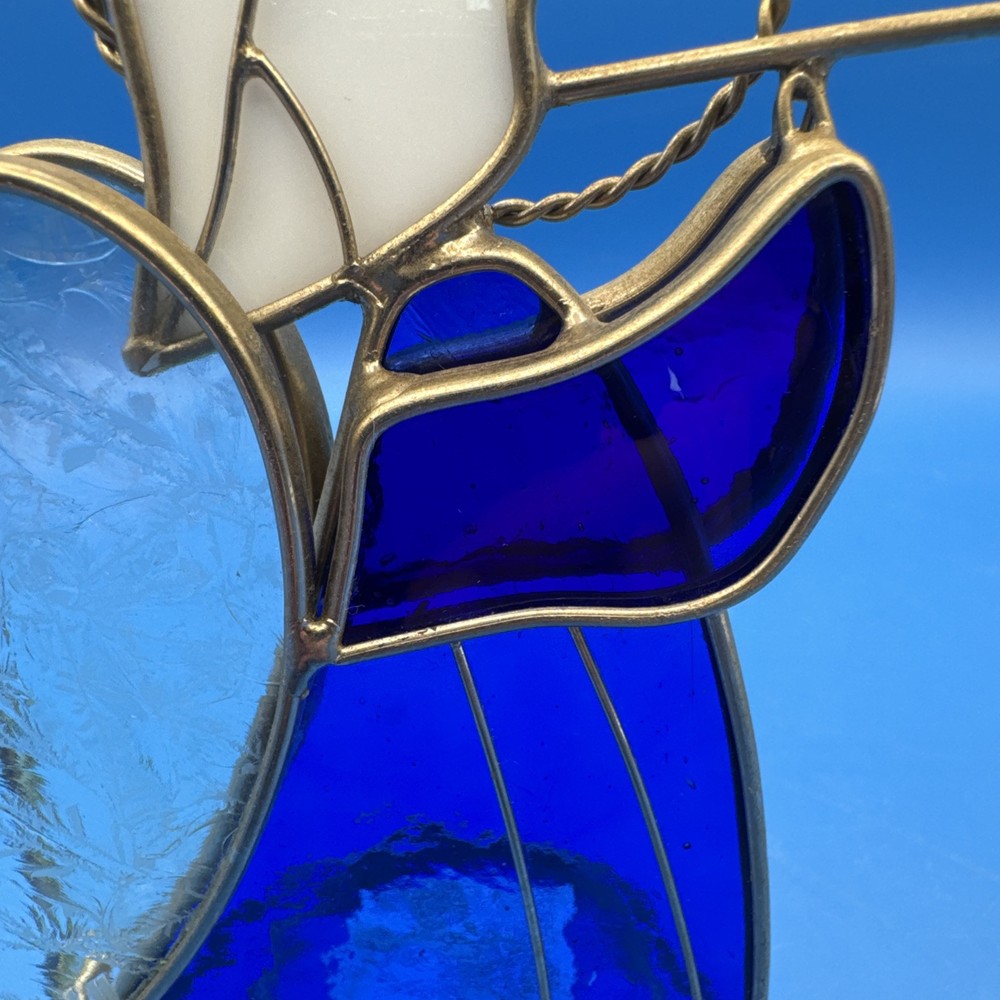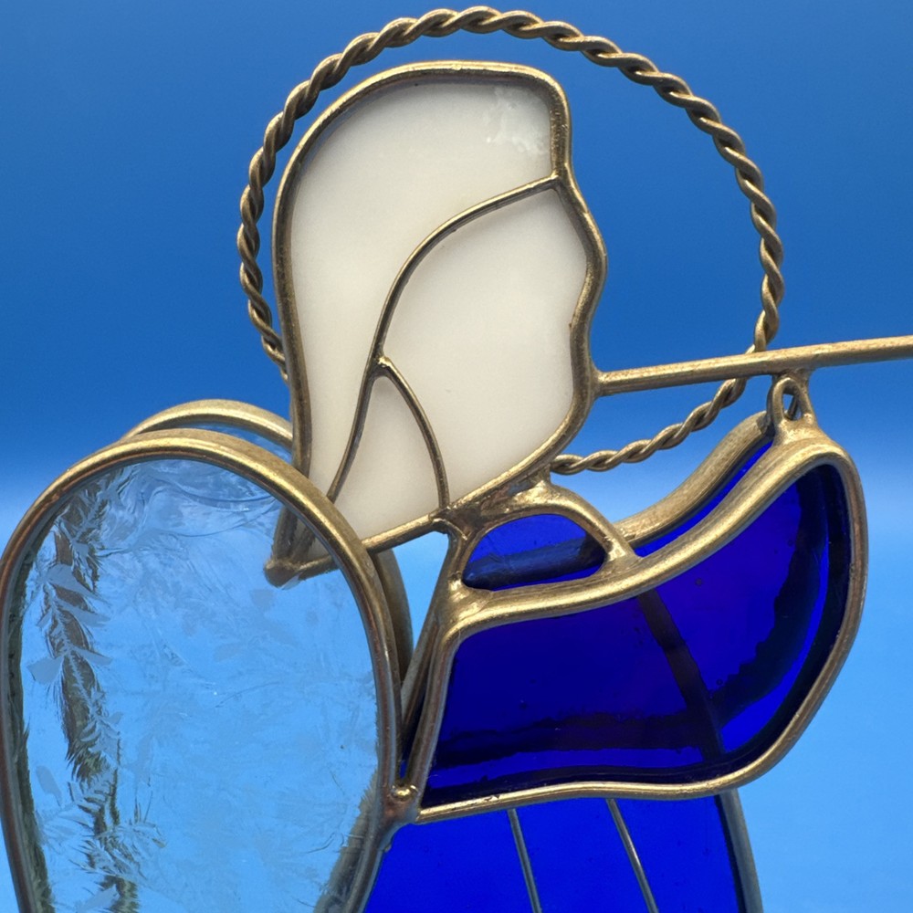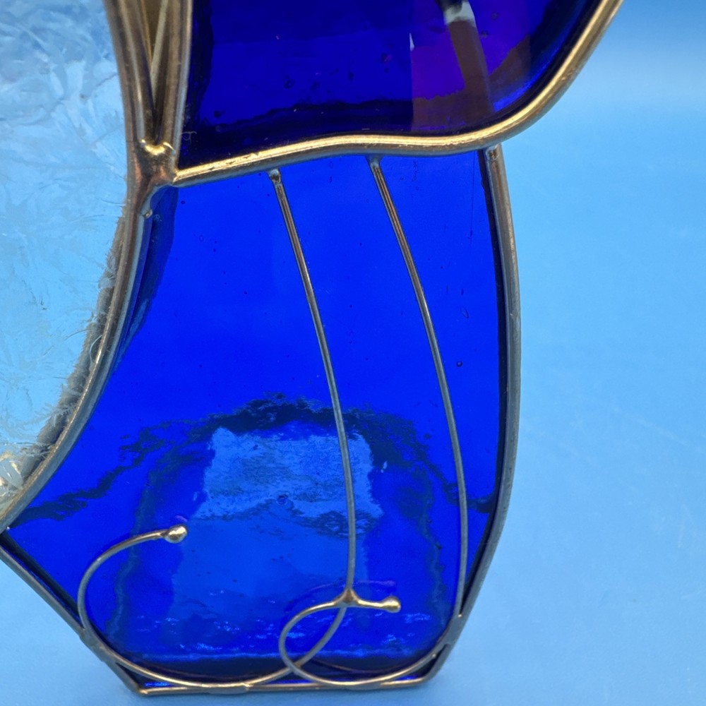 The product is a Stained Glass Angel Candle Holder designed to hold tea lights. It features a multicolor stained glass design with an angel subject. This decorative collectible is perfect for adding a warm and cozy atmosphere to any space. Pre-owned excellent condition. Hardly used. No cracks or damages. No original box. Please check the pictures carefully as part of the description. Feel free to ask questions if you need more information before you buy it. Thank you for your interest C-5