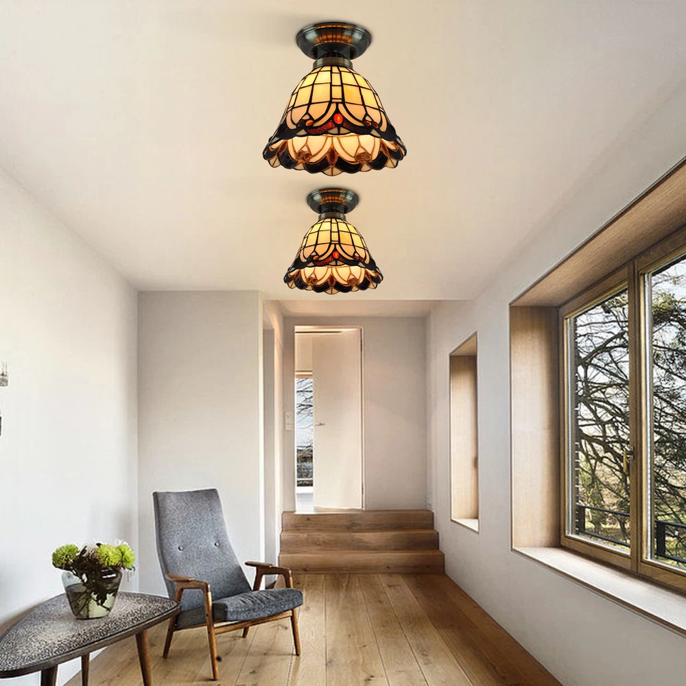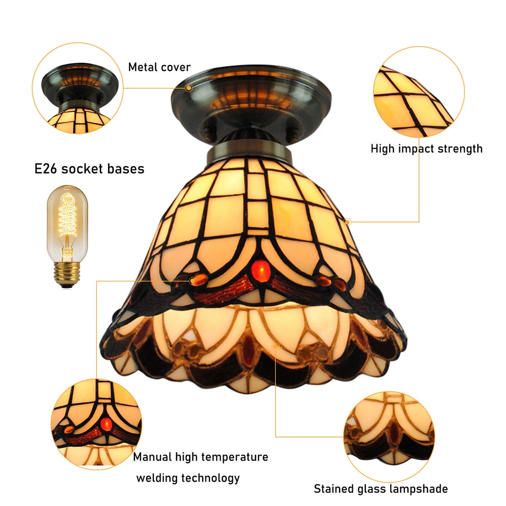 Stained Glass Chandelier Ceiling Hanging Lamp Light Fixtures Tiffany Style NEW Tiffany Style Flush Mount Ceiling Lamp Lights Vintage Stained Glass Chandelier About this item Size: 7.87 in wide x 7.08in high. Real Tiffany lamp: The Ceiling lamp use creative Stained glass lampshade,which have a high light transmission, high temperature resistance and easy to clean.It uses manual high temperature welding technology. 【Suitable for Various Occasions】 This Tiffany lamp be a retro & fashionable decor for your house. Perfect for kitchen, dining room, hallway, foyer, entryway, nursery, entrance way, hallway, bedrooms, sink, dining table, Cafe, restaurant, study, office, warehouse, club and etc. 【1-Light & E26 Bulb Socket】 This kitchen lights ceiling features 1 heat-resistant standard E26 bulb sockets (Max 40W, BULB NOT INCLUDED). Compatible bulbs: CFL, Halogen, Incandescent, or LED. Voltage: 110-120V,It can be dimmable when you used with a dimmable bulb and compatible dimmer switch. Easy Installation : All mounting hardware required for installation of chandelier are included in the package. Just need to follow the illustrated instructions of the hanging light provided for assembly and installation! ★ Best Gift,A perfect choice for Christmas gift,children's day gift,bridal gift, anniversary gift, mothers day gift,fathers day gift, birthday present, holiday gift etc.share this special light with the ones you love. What you get: 1 x Tiffany Light (Bulbs Not Included) 1 xScrews sets 1 xInstruction Manual Tips: -Please make sure the light is securely supported and is disconnected from power when installing. -Installing the light bulbs before hanging the makes the installation easier. Payment Delivery details Terms of sales About us Contact us Payment We accept ebay payment 。 Fees such as import duties, taxes are not included in the item price or shipping costs. These charges are the buyer's responsibility. Delivery details Shipping: 2-9 working days to: USA Terms of sales We maintain high standards of excellence and strive for hundred percent customer satisfaction. Feedback is very important to us. We hope that you contact us immediately before you give neutral or negative feedback, so that we can address your concerns. It is impossible to address issues if we do not know about them! About us Your satis faction is our ultimate goal. We work hard to earn your trust and future business. Our certified technicians have tested each item before shipping. The unit comes with 1 year limited warranty on all manufacturing defects. a) If you receive a defective item, you may return it or ask for a discount. Please contact us within 14 days after you receive the package. b) What you returned must be intact and in its original packaging as re? u. Customer is responsible for shipping costs of the returned item. c) We will cover the cost of shipping back t with the shipping rate indicated in the registration page. We will send you a new unit or refund the full payment you paid. Thank you. Contact us Business Hour Business Hour: Monday To Friday: 8:30 AM to 5:00 PM (Beijing China time) Due to time zones, our reply to your questions may not be immediately. But within above working time, we will reply your email within 24 hours. If it's non-workdays, please kindly be patient and wait till Monday. Please contact us with ebay message. Please feel free to contact us if you have any questions. Monday To Friday: 8:30 AM to 5:00 PM (Beijing China time) Due to time zones, our reply to your questions may not be immediately. But within above working time, we will reply your email within 24 hours. If it's non-workdays, please kindly be patient and wait till Monday. Please contact us with ebay message. Please feel free to contact us if you have any questions. * Feature * Nice and Practical, High Quality Packaging Features Fast shipping from US Warehouse Assembly Required Yes Type Chandelier Color Multicolor MPN Does Not Apply Brand Unbranded Style Stained Glass Material Glass, Metal Power Source Hardwired Room Bar, Bedroom, Dining Room, Hallway, Home Office/Study, Kitchen, Living Room, Porch, Sunroom Control Style Wall Control(Not included) Voltage 110-120V Lighting Technology E26 Installation Area Indoor Personalized Yes Manufacturer Warranty 3 Years Compatible bulbs CFL, Halogen, Incandescent, or LED