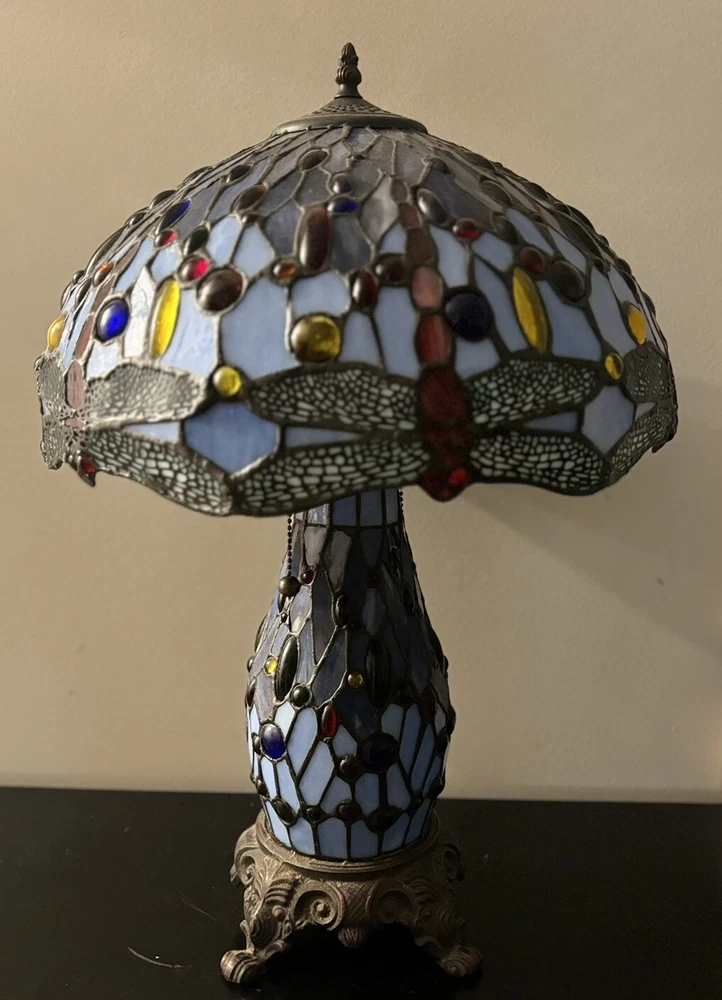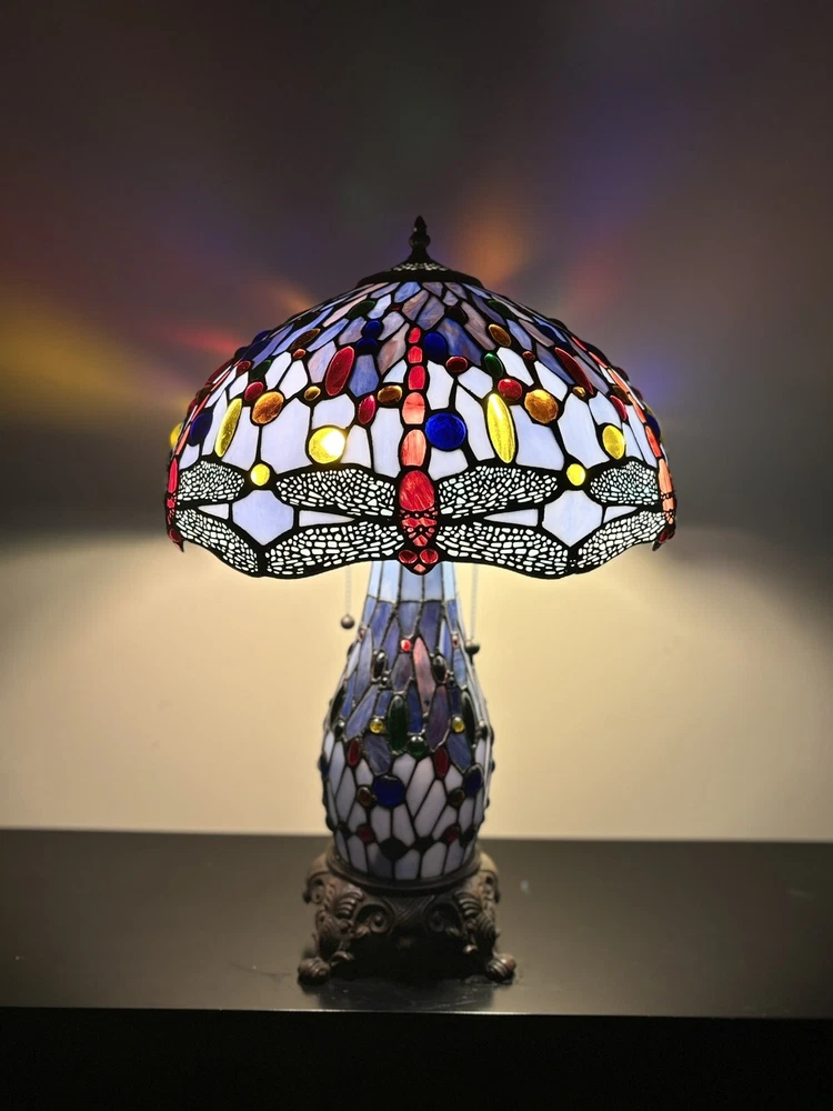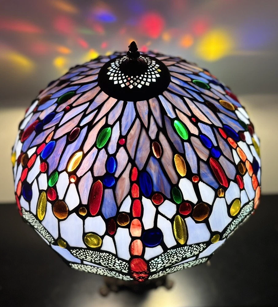 Stained Glass Lamp Tiffany Style Dragonfly Colorful 24 Inch Large