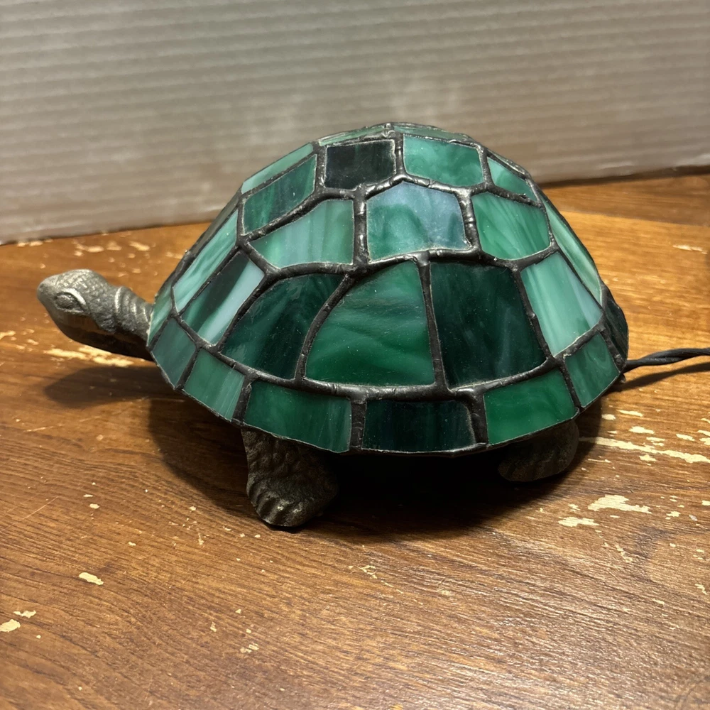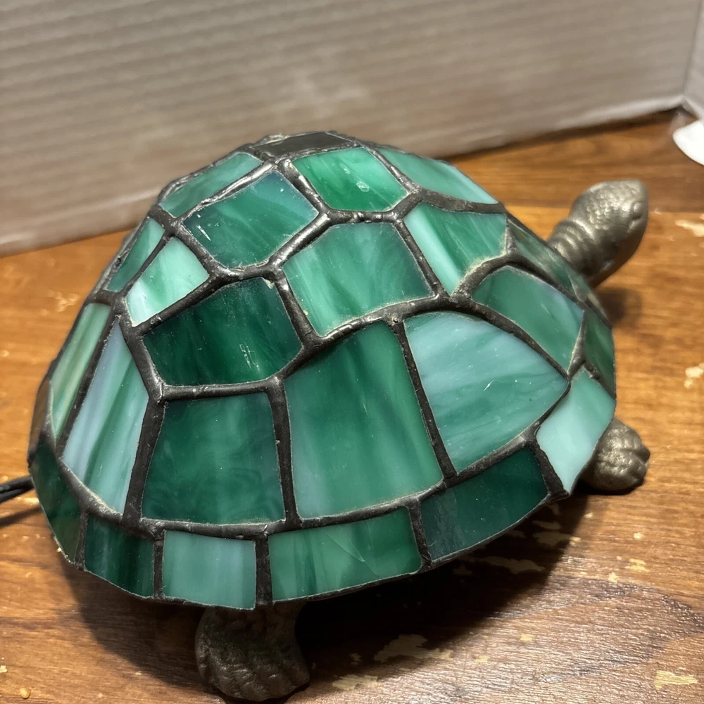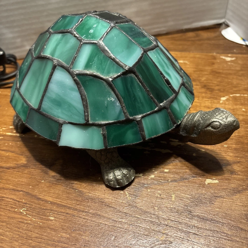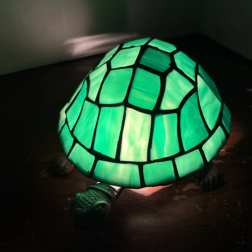 Stained Glass Tiffany Style Brass Turtle Night Light Lamp Nightlight DK/LT Green