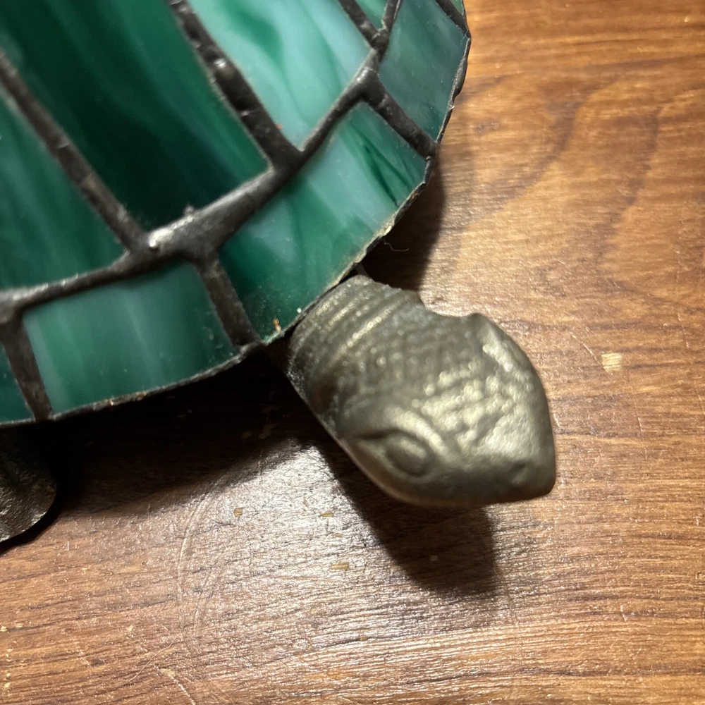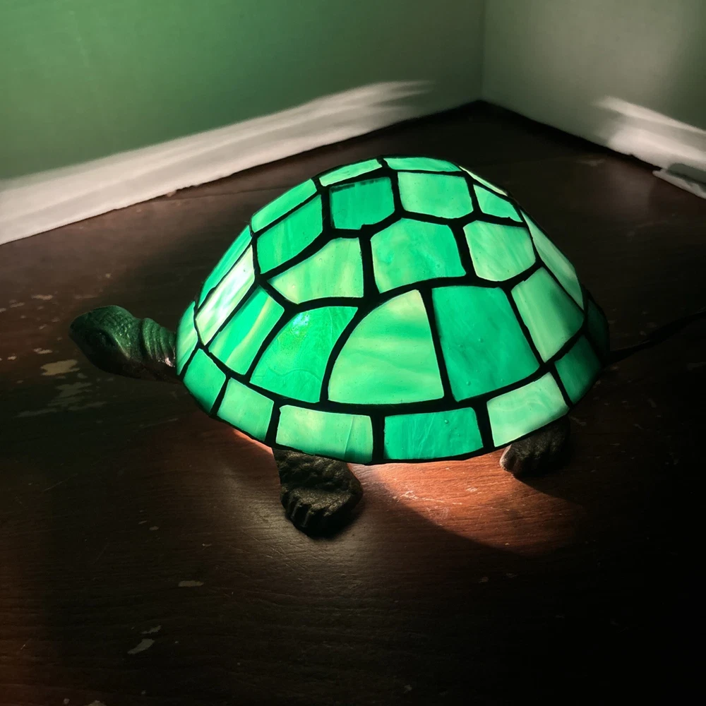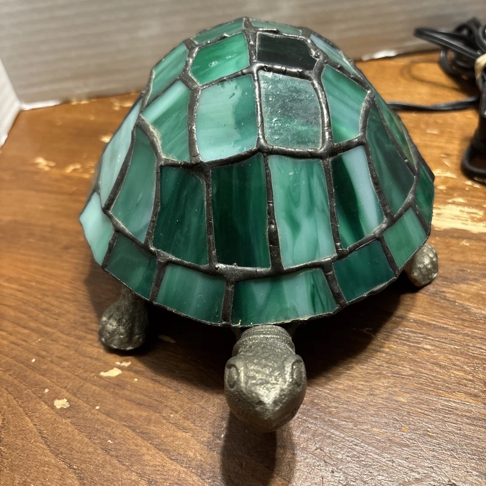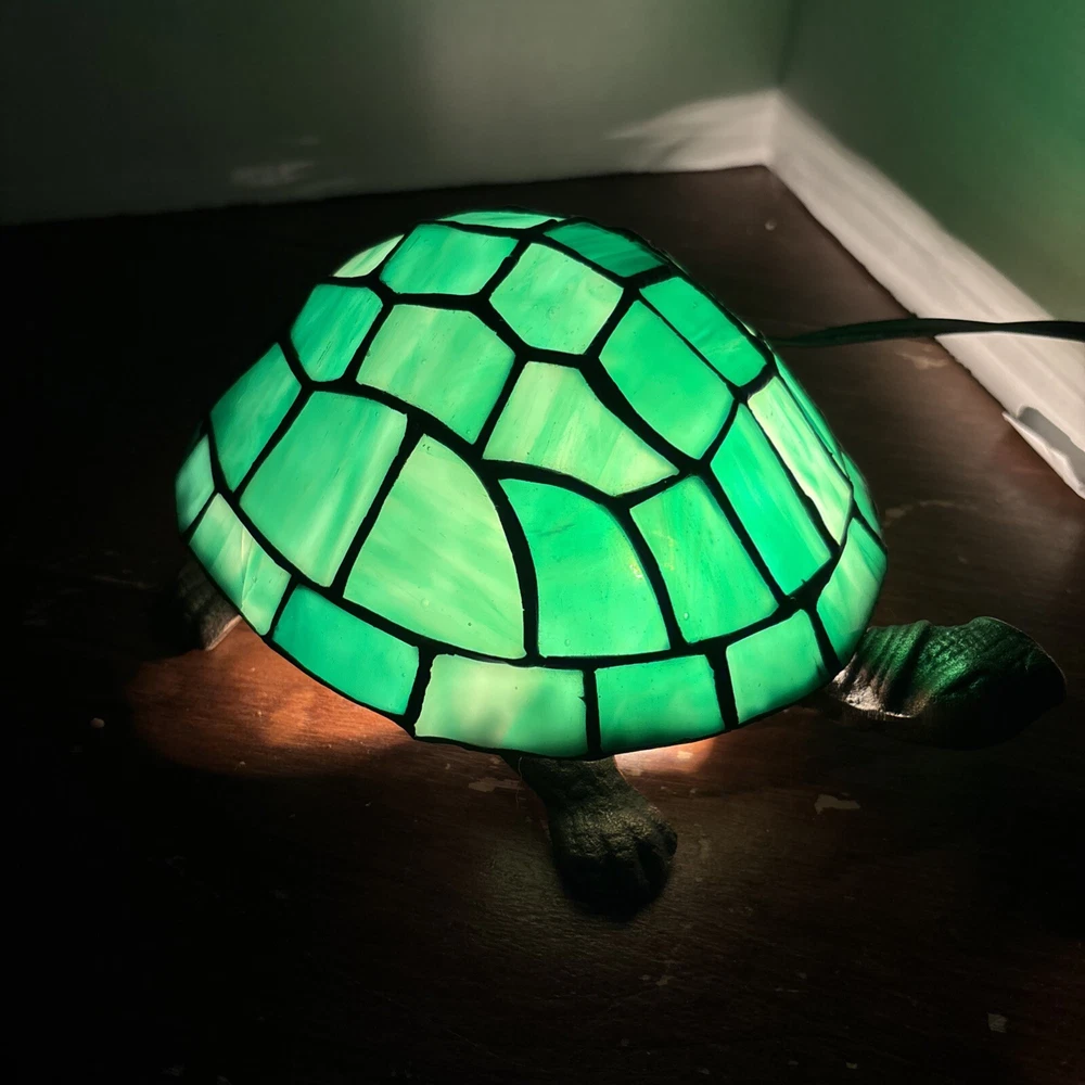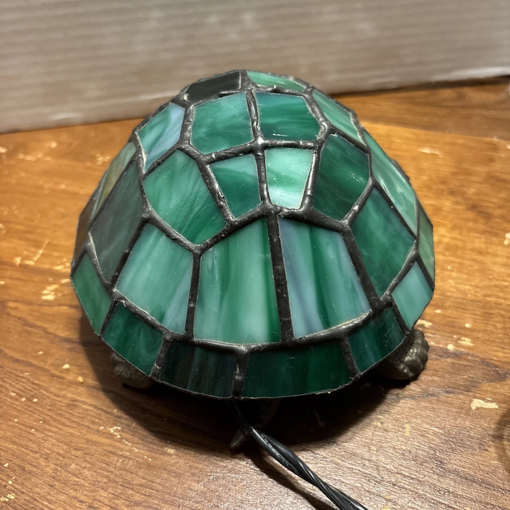 Stained Glass Tiffany Style Brass Turtle Night Light Lamp Nightlight DK/LT Green
