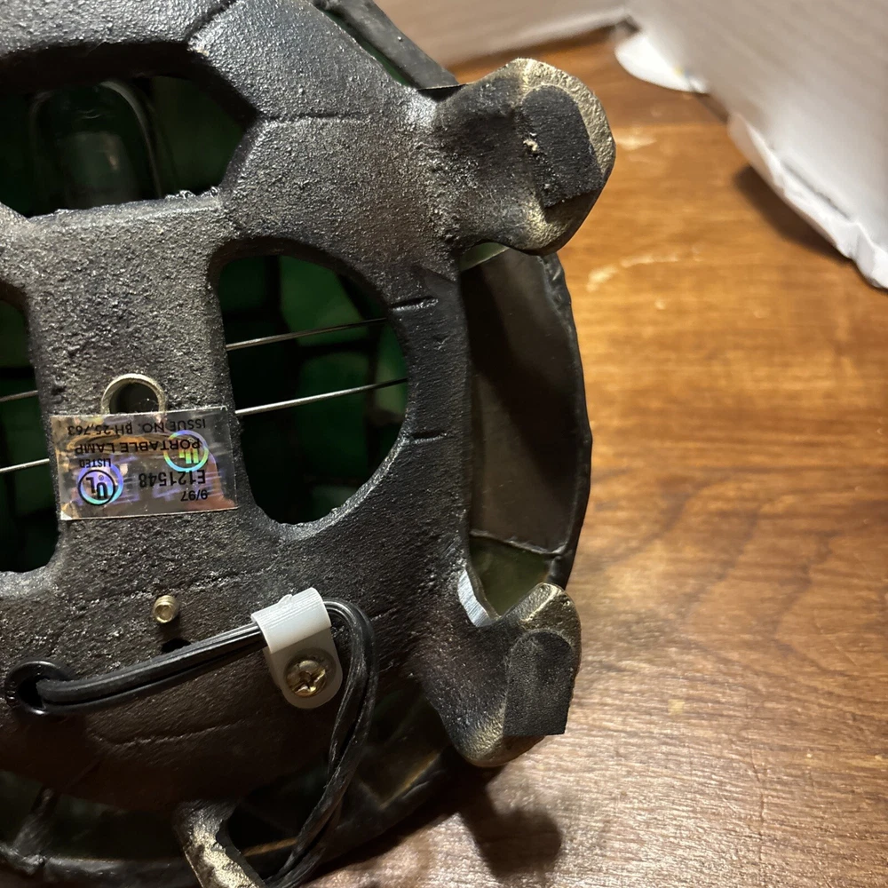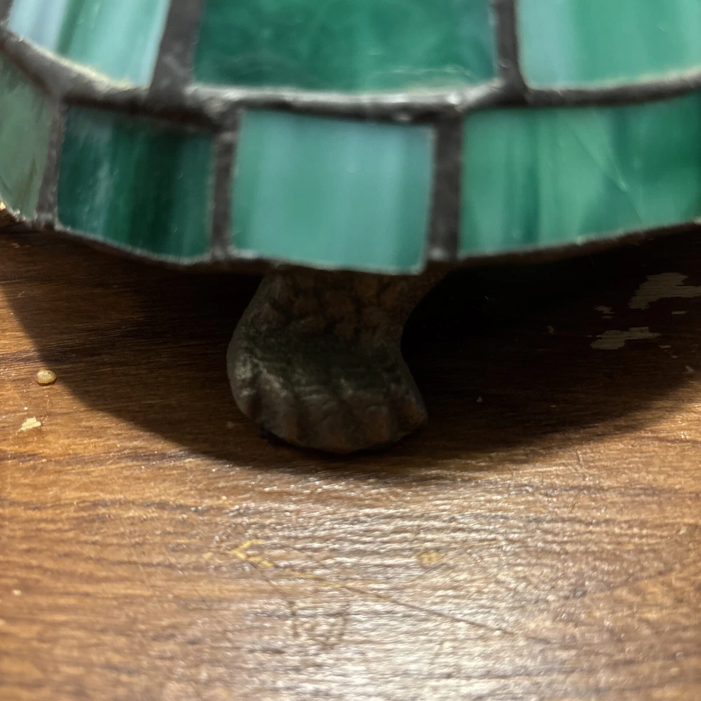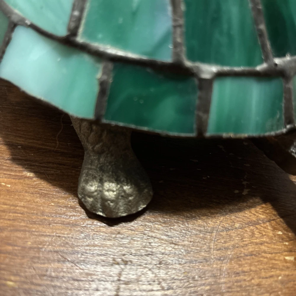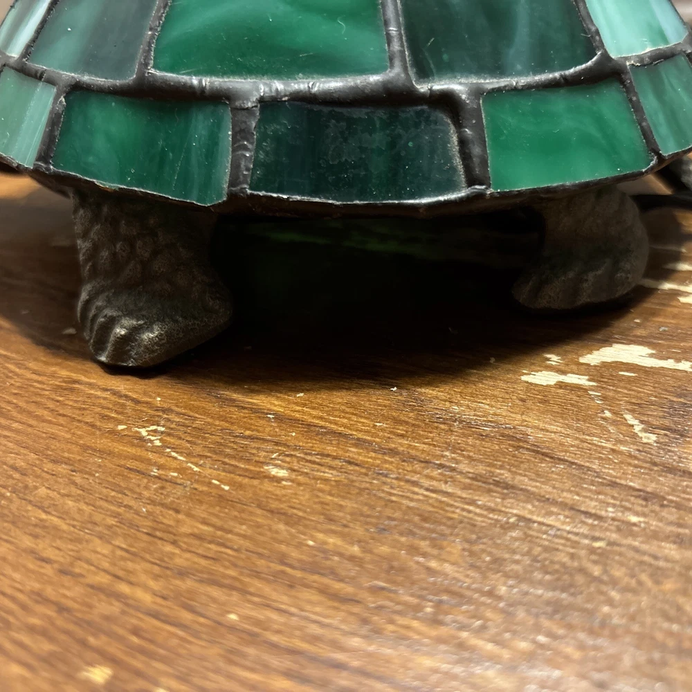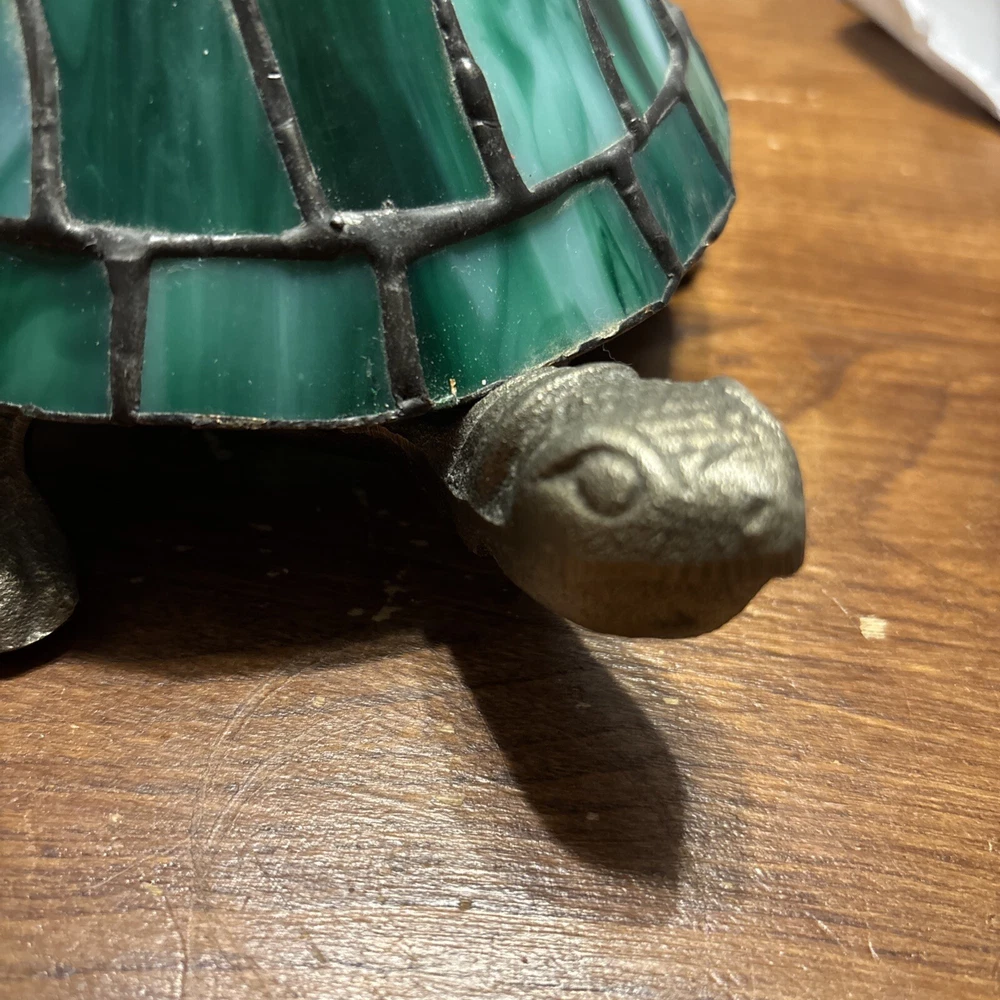 This beautiful table lamp is a stunning addition to any room. The stunning combination of antique brass and stained glass in a clear green hue adds an artistic touch to your decor. The lamp is corded electric and features a rotary knob for easy control. The lamp is designed with a beautiful oval shade shape and a turtle night light lamp nightlight DK/LT Green color. The lamp is made of high-quality metal and has a vintage feel that adds character to your home. This lamp is perfect for anyone who loves art deco style and wants to add a touch of elegance to their living space. International charges are the buyer’s responsibility. No international returns.