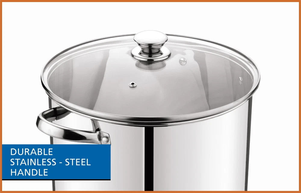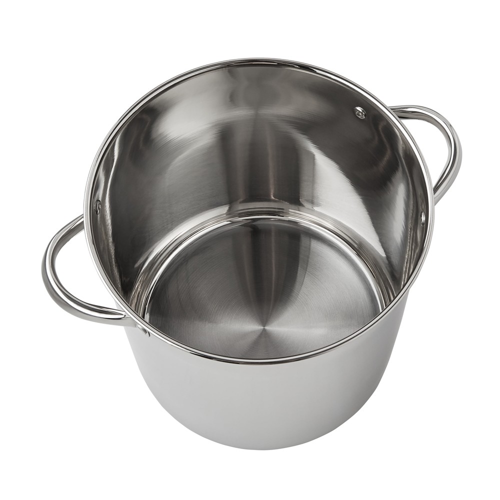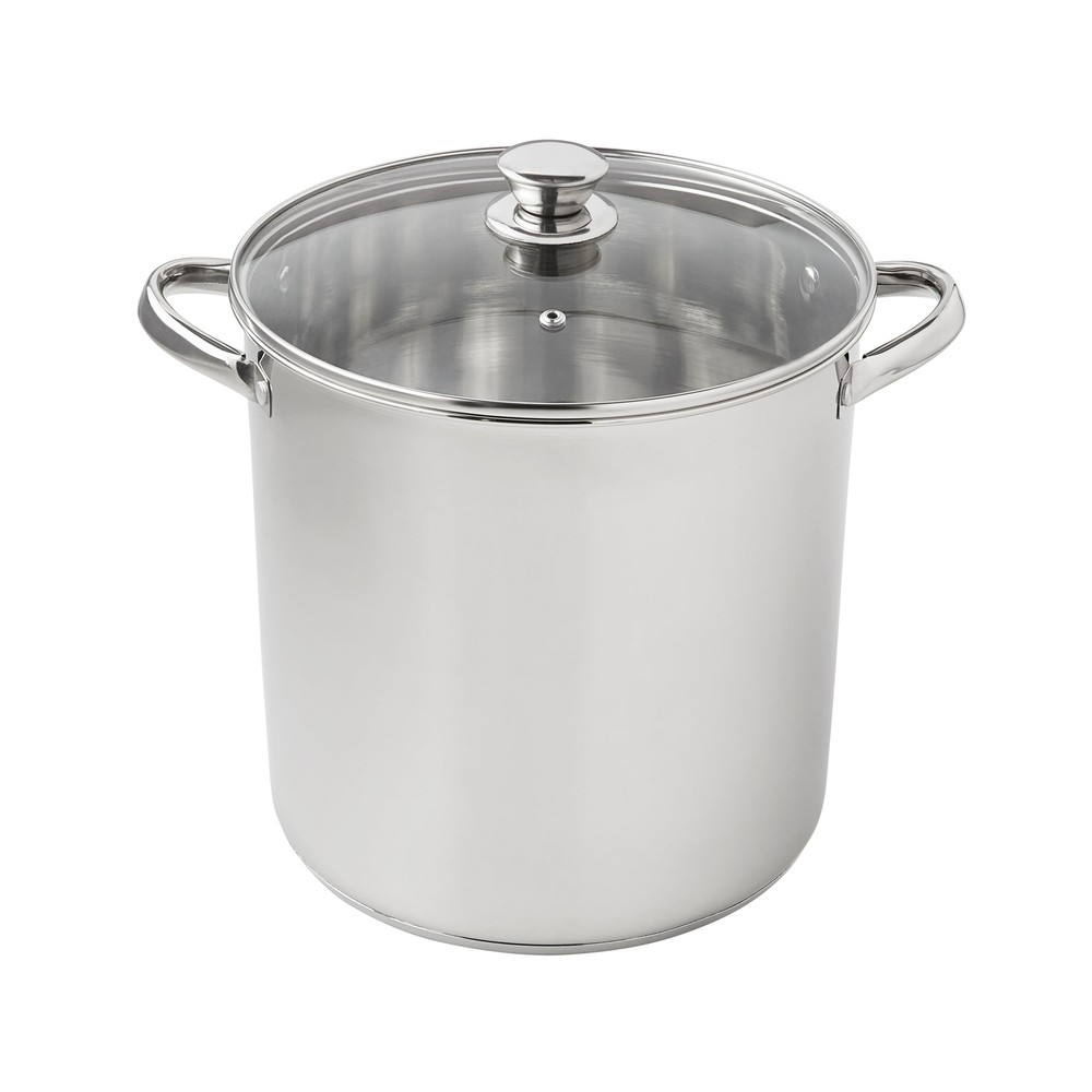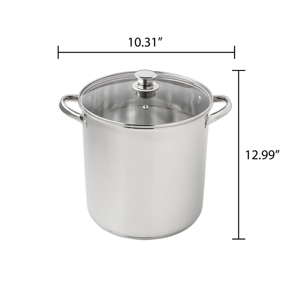 The Mainstays Stainless Steel 12-Quart Stock Pot with Glass Lid is a large and versatile cookware ideal for preparing sauces, soups, pastas, and more. It features a stainless steel construction , transparent glass lid , and stay-cool handles, making it perfect for cooking for large gatherings or smaller groups. The stock pot is induction safe , dishwasher safe , and has a durable design that coordinates with existing cookware. With dimensions of 10.04L x 10.04W x 9.64H and a weight of 4.04 lbs, it is easy to store and maneuver. This product is suitable for various cooking occasions, including family meals, backyard barbecues, and special events. The Mainstays Stainless Steel 12-Quart Stock Pot with Glass Lid is a large and versatile cookware ideal for preparing sauces, soups, pastas, and more. It features a stainless steel construction , transparent glass lid , and stay-cool handles, making it perfect for cooking for large gatherings or smaller groups. The stock pot is induction safe , dishwasher safe , and has a durable design that coordinates with existing cookware. With dimensions of 10.04L x 10.04W x 9.64H and a weight of 4.04 lbs, it is easy to store and maneuver. This product is suitable for various cooking occasions, including family meals, backyard barbecues, and special events. Prepare amazing sauces, soups, pastas, and more with the sizable Mainstays Stainless Steel 12-Quart Stock Pot with Glass Lid. This large stock pot measures 10.04”L x 10.04”W x 9.64”H. Perfect for cooking family meals for any occasion. Designed with stylish stainless steel and glass, it’s sure to coordinate with your existing cookware. This sturdy stock pot features stay-cool handles, transparent glass lid, durable stainless steel construction and is induction safe. Ideal for helping you feed your family and friends at get-togethers, backyard barbecues, celebrations, and other special events. The Mainstays Stainless Steel 12-Quart Stock Pot with Glass Lid is a must-have cookware item in any kitchen. Mainstays Stainless Steel 12-Quart Stock Pot with Glass Lid, Induction Compatible, Stainless Steel, Dishwasher Safe Features stay-cool handles for safe handling Dishwasher safe for easy cleanup Stylish design coordinates with existing cookware Ideal for cooking for large gatherings or smaller groups Recommended to use medium or lower heat settings to prevent damage On Jul 9, 2025 at 01:18:02 PDT, seller added the following information: