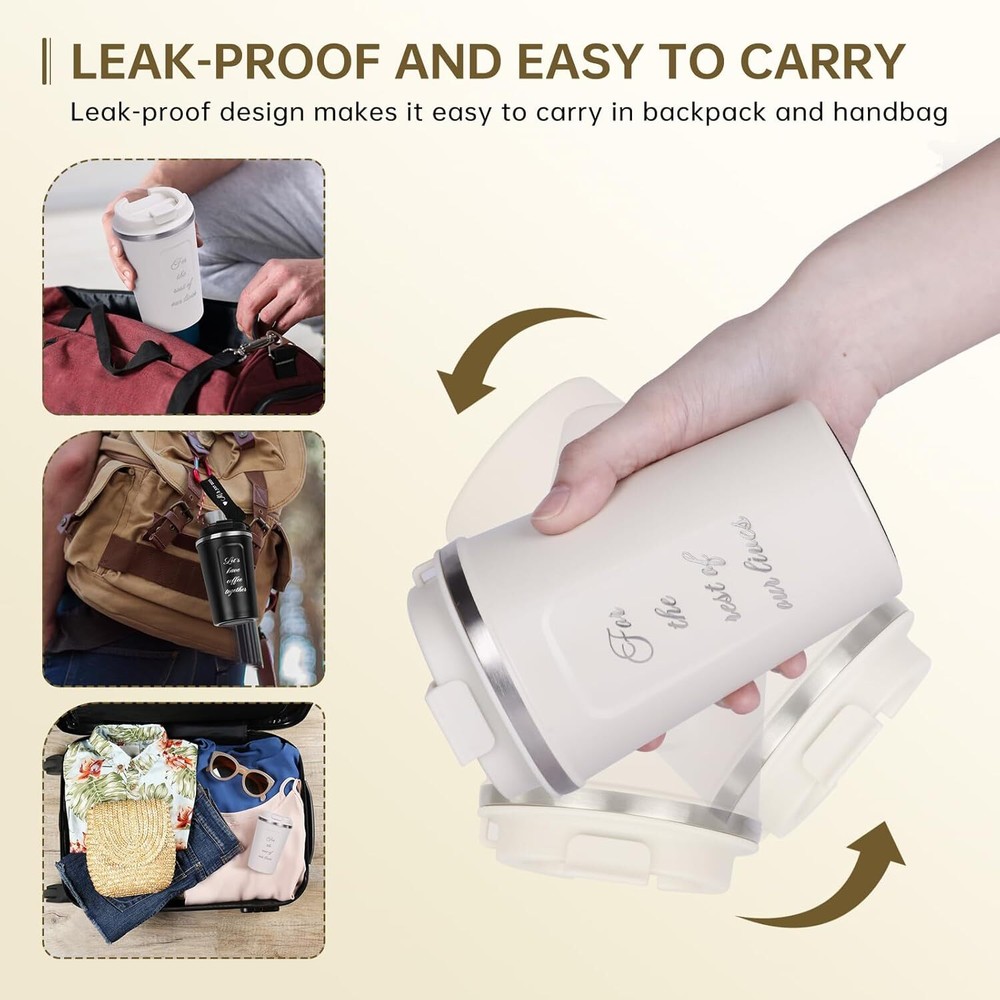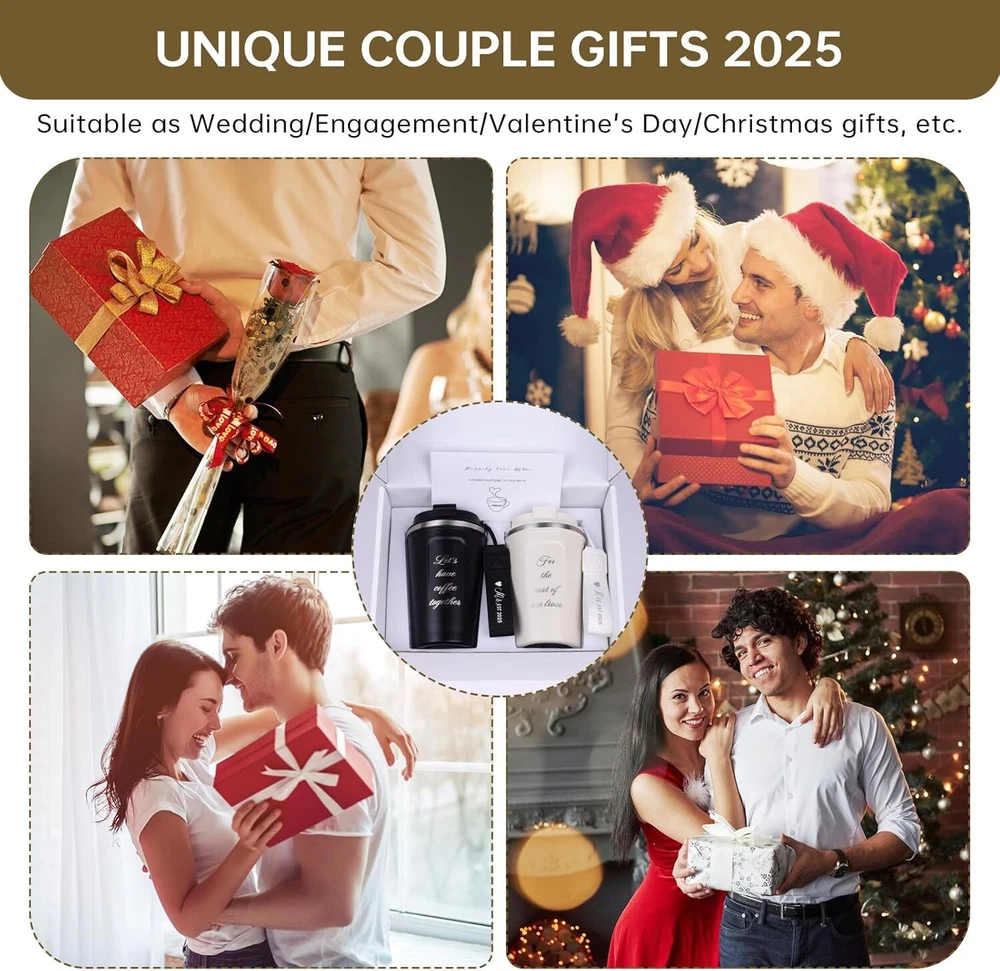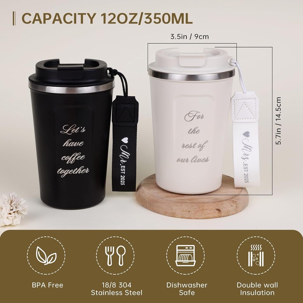 Eternal Love Mark: The coffee cup is engraved with "Let’s have coffee together, for the rest of our lives", every sip is a vow of love. Let this pair of coffee cups accompany you through every morning and evening, become a witness to your love, and like every cup of coffee, never cool down. Double Warmth, Double Enjoyment: Made of high-quality 304 stainless steel, it has a long-lasting heat preservation effect and is suitable for daily use. The rubber ring on the cup lid ensures the tightness of the cup and prevents it from leaking.Whether it is hot or cold drinks, it can maintain the ideal temperature for a long time. Personalized Design: Simple yet romantic design, suitable for any style of home or office environment, adding warmth and love to every day.In addition, the cup is equipped with a lanyard, which is convenient for carrying and hanging. Environmentally Friendly and Durable: Environmentally friendly stainless steel is used to ensure durability, drop resistance, corrosion resistance, and does not contain harmful substances, safe and healthy. Perfect Wedding Gift 2025: It is an ideal choice for newlyweds and lovers, implying every moment of the rest of your life together, accompanying each other through every memorable day.