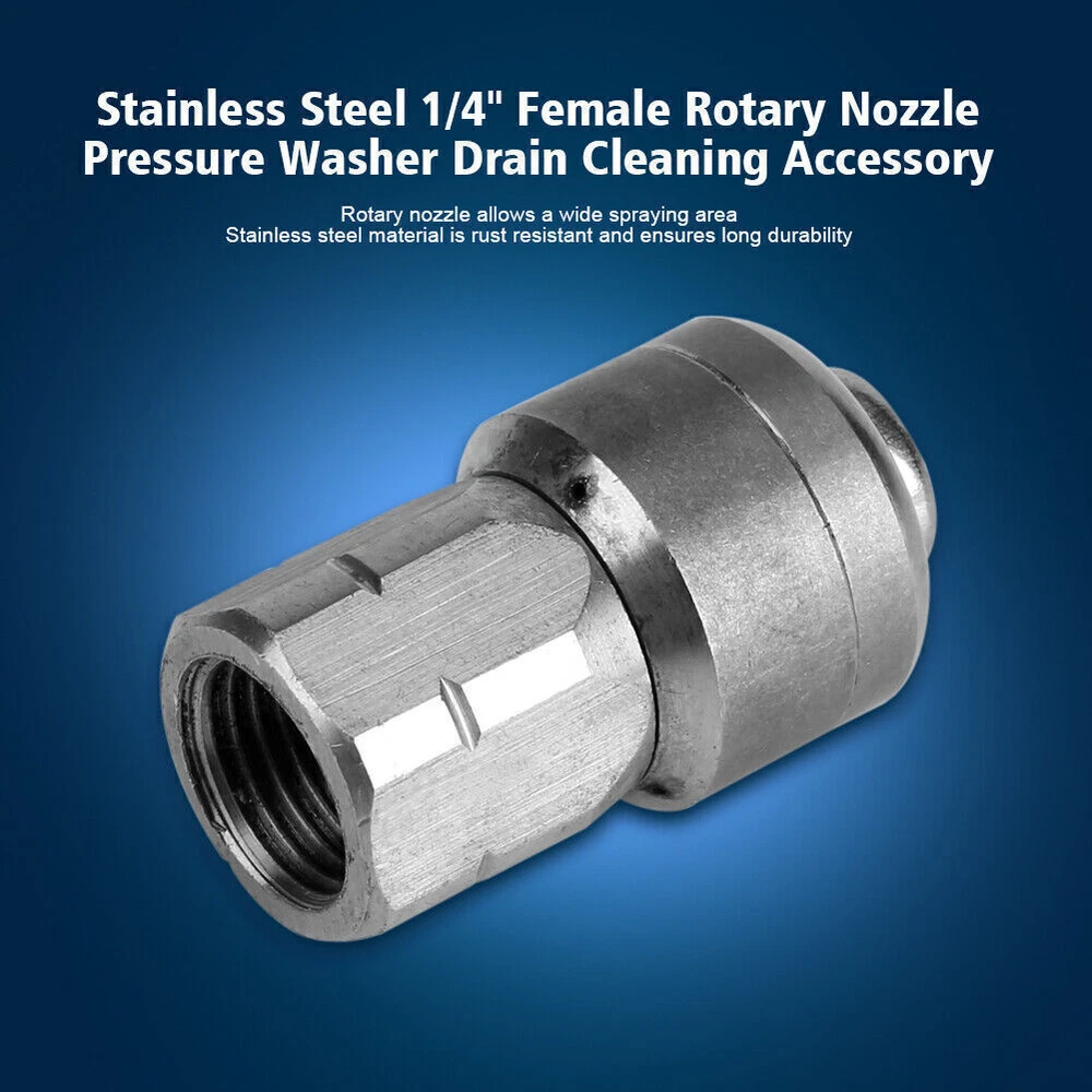 1. This rotary nozzle is a game-changer for pressure washing! The stainless steel build resists rust, and the rotating spray covers a wide area, making cleaning faster and more efficient. Perfect for tough jobs like drain cleaning—durable, powerful, and easy to use. Highly recommend!