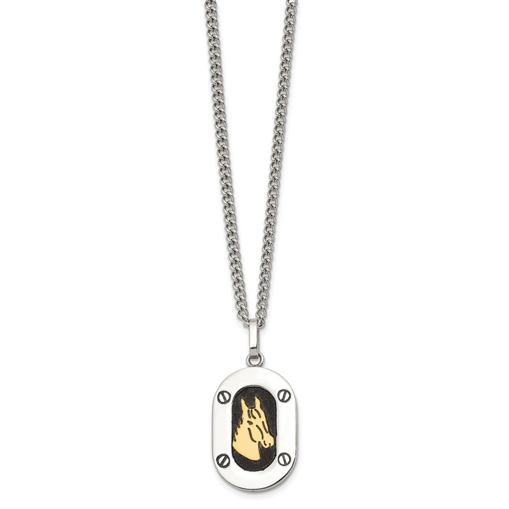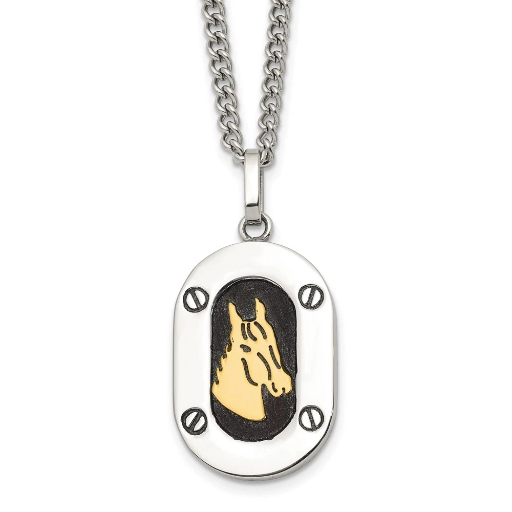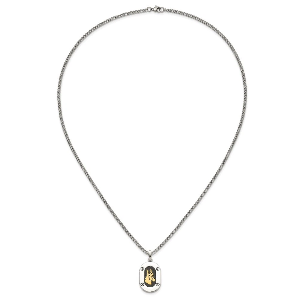 Finish:Polished|Length of Item:24 in|Material: Accents:Enamel|Material: Accent Color 1:Black|Chain Length:24 in|Chain Type:Curb|Chain Width:3 mm|Charm/Element Length:34 mm|Charm/Element Width:20 mm|Clasp /Connector:Lobster (Fancy)|Material: Primary:Stainless Steel|Item Weight U/M:gm|Width of Item:20 mm|Material: Other:Gold|Packaging:Gift Boxed|Product Type:Jewelry|Jewelry Type:Necklace|Sold By Unit:Each|Necklace Type:Necklace with Pendants|Pendant/Charm Type:Themed|Gender:Men's|Bail Width:6 mm|Material: Primary - Color:White|Bail Length:10.3 mm|Bail (Inside) Length:7|Bail (Inside) Width:4|Bail (Inside) Width U/M:mm|Bail (Inside) Length U/M:mm|Material: Chain Only:Stainless Steel All weights and measurements are approximate and may vary slightly from the listed information. Welcome to diamond_6720 Payments We accept all Ebay approved payment. Please sent the payment to us within 8 days after the auction has ended, or you will have unpaid case auto open by eBay. Shipping Policy We will ship all items within 1 business days of purchase during the work week (M-F) excluding holidays. If you order on Friday, your order will be shipped the following business day. Tracking will be provided when it becomes available. We will only ship to a PayPal Verified Address. Please make sure your address is current and correct. If the information does not match, your order may be canceled. Buyers are responsible for all customs, duties and taxes for your respective countries. Delivery times for International Shipping will vary. California Buyers Pay 9.0% Tax on all orders. case auto open by eBay. Return Policy & Exchange Returns or Exchange are accepted. Buyer must contact us within 30 days after the item is received. Item must be returned in unworn and resalable condition. We will only issue a refund for the purchase price, excluding any shipping fees. If we are at fault, we will provide a full refund. Buyer is responsible for all return shipping costs. BUYERS FEEDBACK If you have any concerns regarding your purchase, please contact us via eBay Message, we assure you that a satisfactory resolution will be reached. Your feedback is very important to us Do remember to give us 5 star rating(*****) if you are satisfied with our product & service .