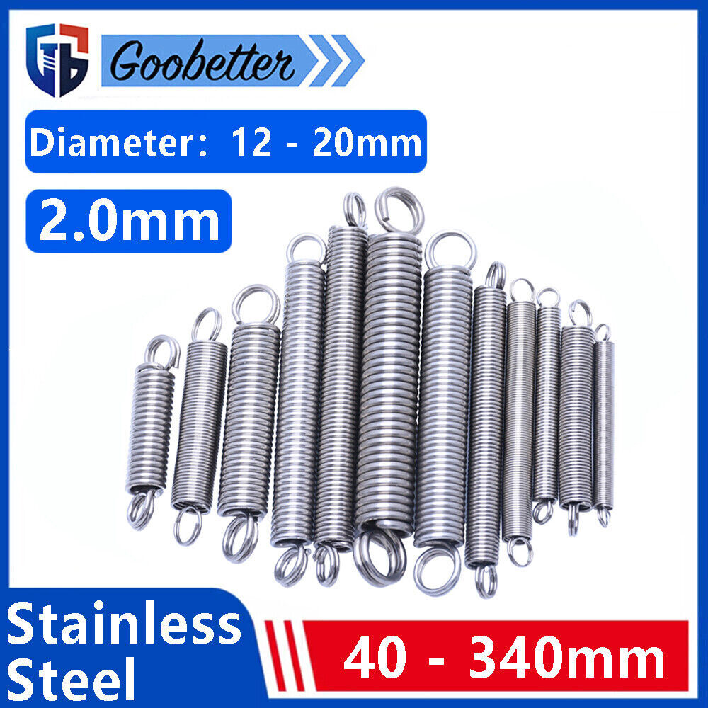 Product description Specifications: 【Features】- Springs occupy an important position in various markets. Stainless steel spiral compression spring, waterproof, rust-proof, durable. 【Application】- Widely used in shipbuilding, computer, electronics, automobile, chemical industry, aerospace, railway, wind power, thermal power, construction machinery, mining machinery, construction machinery, elevators and other fields. Wire diameter:2.0mm Diameter:12/14/15/16/17/18/20mm Length:40 - 340mm Material:304 Stainless Steel