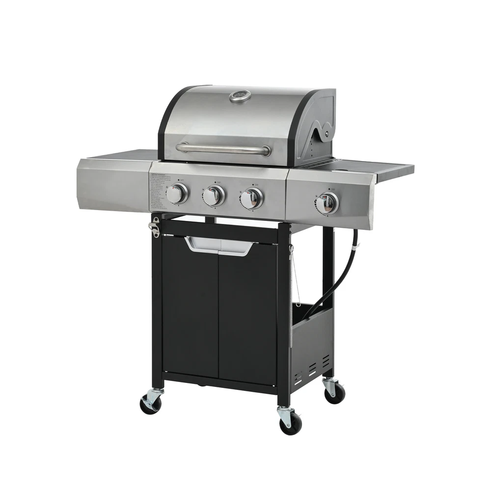 Stainless Steel 3 Propane Gas Grill with Side and Cover for BBQ