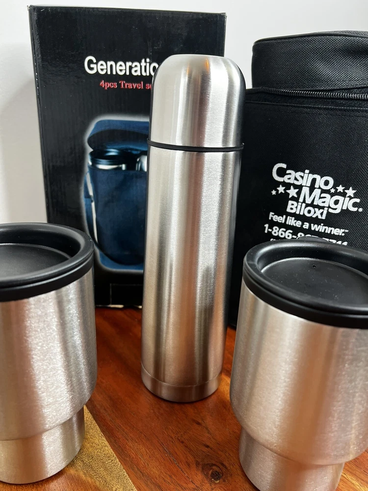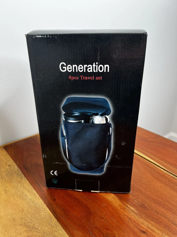 This like new four-piece travel mug set by Generation is perfect for those who love to enjoy their hot or cold beverages on the go. The stainless steel material ensures durability and longevity, while the drink-through lid type allows for easy sipping. Each mug comes with a handle and lid, making them easy to use and store. The silver color adds a sleek touch to your travel routine, and the set includes four mugs, making it a great gift option for friends and family. With its suitability for hot beverages, this set is perfect for coffee, tea, or any other hot drink. The vacuum flasks and mugs category ensures that your beverages stay hot or cold for an extended period. Get your hands on this convenient and stylish travel mug set today!