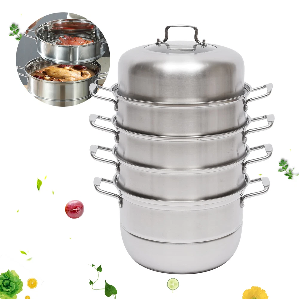 304 steel material: the steamer is made of 304 stainless steel (0.023 inches / 0.6 mm thickness) with polished mirror surface and is of high thermal conductivity and efficient heating. It is hygienic, durable and not easy to deform. large capacity:5 layers large capacity for delicious food: 5 layer capacity offers enough space to cook a lot. It can absorb your different ingredients at the same time. It is larger than conventional stockpot steamers, perfect for large gatherings and commercial kitchens. Compatible with multiple ovens: the bottom of the steam pot is made of 3-layer composite material, which makes it excellent energy efficient and cooks evenly without hot spots. It is suitable for most ovens, including gas stoves, electric ceramic stoves, halogen ovens, etc. Stainless Steel 5 Tier Pot Steaming Food Steamer Cooking Cooker Cookware Large 304 steel material: the steamer is made of 304 stainless steel (0.023 inches / 0.6 mm thickness) with polished mirror surface and is of high thermal conductivity and efficient heating. It is hygienic, durable and not easy to deform. large capacity:5 layers large capacity for delicious food: 5 layer capacity offers enough space to cook a lot. It can absorb your different ingredients at the same time. It is larger than conventional stockpot steamers, perfect for large gatherings and commercial kitchens. Compatible with multiple ovens: the bottom of the steam pot is made of 3-layer composite material, which makes it excellent energy efficient and cooks evenly without hot spots. It is suitable for most ovens, including gas stoves, electric ceramic stoves, halogen ovens, etc. Highly flexible lid and comfortable handles: the dome-shaped lid allows the steam to run back and reaches all levels.The visible tempered glass pot lid allows for easy observation of the inner food. The evenly distributed steam holes increase steam flow and prevent the accumulation of steam water. Various space-saving combinations: it can serve as a steamer for food, a soup pot and the steamer as a sieve for sieving and washing food. The steamer for cooking can be divided into five different pots (4 Layer, 3 Layer, 2 Layer, single Layer steamer, soup pot) to meet your different needs. Proper stacking gives you more storage space. It is made of very durable 304 stainless steel. It works with all types of ovens, including gas and induction. It can also be used to cook all kinds of steamed dishes you can imagine! Technical data: Item height: 56cm. Lid height: 15 cm. Pot diameter: 32 cm. Dimensions: 56 x 32 x 32cm Product weight: 3.2 kg. Payment Delivery details Terms of sales About us Contact us Payment We accept ebay payment 。 Fees such as import duties, taxes are not included in the item price or shipping costs. These charges are the buyer's responsibility. Delivery details Shipping: 2-9 working days to: USA Terms of sales We maintain high standards of excellence and strive for hundred percent customer satisfaction. Feedback is very important to us. We hope that you contact us immediately before you give neutral or negative feedback, so that we can address your concerns. It is impossible to address issues if we do not know about them! About us Your satis faction is our ultimate goal. We work hard to earn your trust and future business. Our certified technicians have tested each item before shipping. The unit comes with 1 year limited warranty on all manufacturing defects. a) If you receive a defective item, you may return it or ask for a discount. Please contact us within 14 days after you receive the package. b) What you returned must be intact and in its original packaging as re? u. Customer is responsible for shipping costs of the returned item. c) We will cover the cost of shipping back t with the shipping rate indicated in the registration page. We will send you a new unit or refund the full payment you paid. Thank you. Contact us Business Hour Business Hour: Monday To Friday: 8:30 AM to 5:00 PM (Beijing China time) Due to time zones, our reply to your questions may not be immediately. But within above working time, we will reply your email within 24 hours. If it's non-workdays, please kindly be patient and wait till Monday. Please contact us with ebay message. Please feel free to contact us if you have any questions. Monday To Friday: 8:30 AM to 5:00 PM (Beijing China time) Due to time zones, our reply to your questions may not be immediately. But within above working time, we will reply your email within 24 hours. If it's non-workdays, please kindly be patient and wait till Monday. Please contact us with ebay message. Please feel free to contact us if you have any questions.