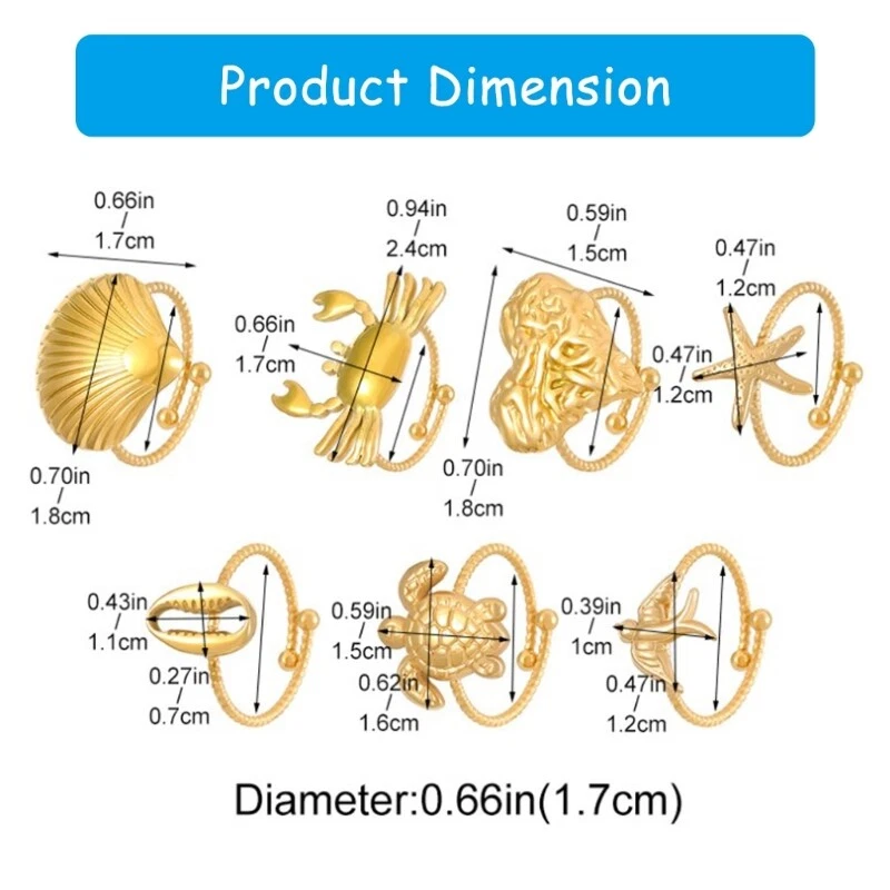 Stainless Steel Animal Themed Rings Collection Set of 7 Unisex Accessories Features: With this set of 7 stainless steel animal rings each featuring a unique designed that's sure to turn heads. Crafted from stainless steel, these rings boast durability and a resistance to tarnishing, complemented by a smooth for comfortable wear. for trendy individuals, both men and women who love to expressing their personality through unique jewelry pieces. Whether it's for casual outings, themed parties, or romance dates, these versatile animal rings add sophistication and styles to any outfit. Gifts these charm rings to friend or family as a thoughtful present, or expand your own jewelry collection with these trendy and stylish animal themed accessories. Specifications: Component: Stainless Steel Color: Gold Size: Diameter 1.7cm/0.67inch Package Includes: 7pcs Stainless Steel Rings note: 1.Please allow 1-2cm errors due to manual measurement, making sure that you will not mind before order. 2.Due to the differences between different monitors, the picture may not reflect the actual color.