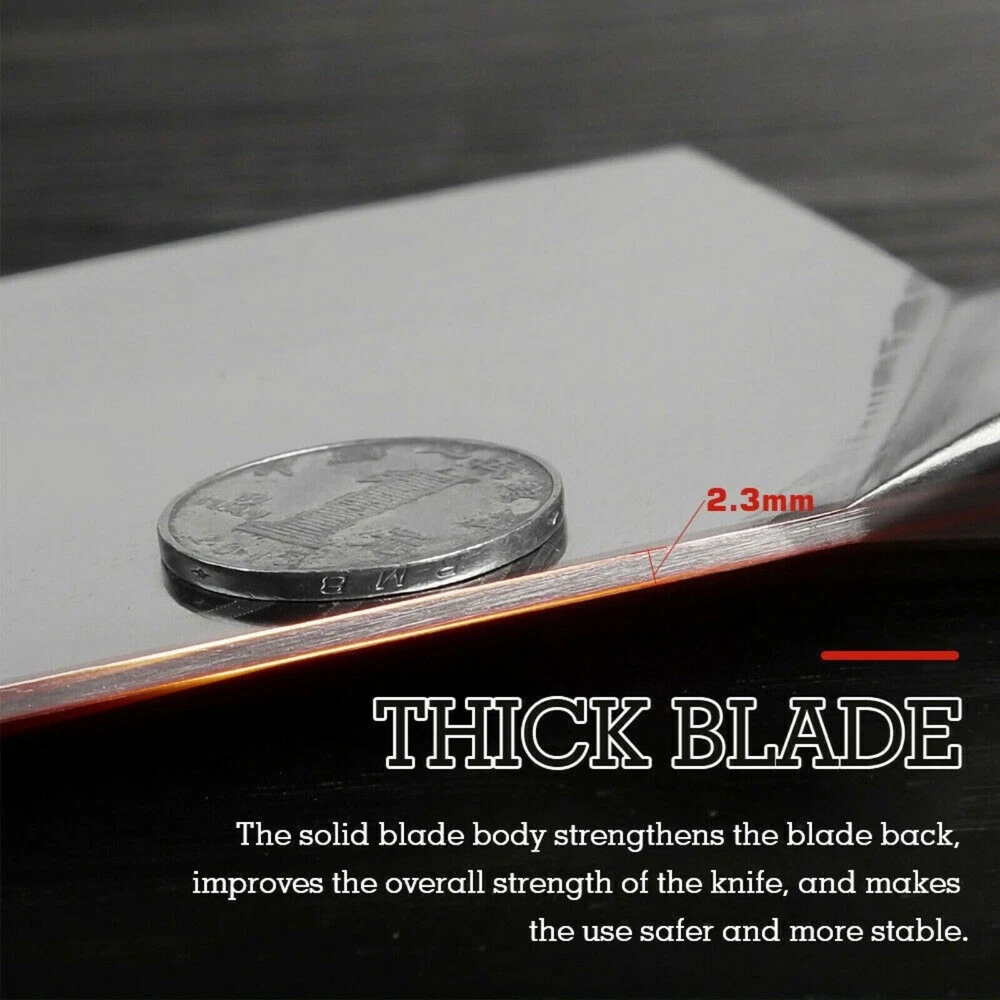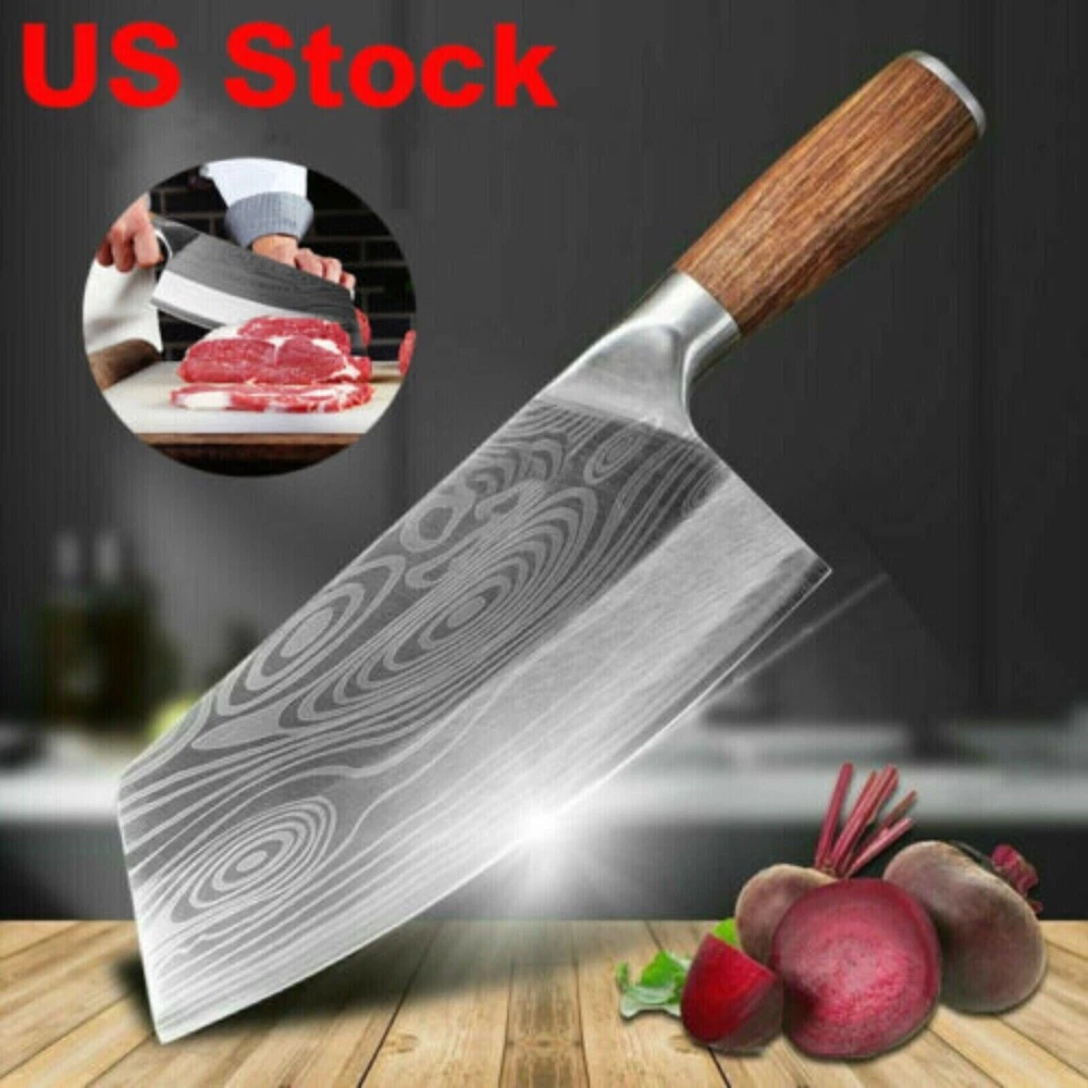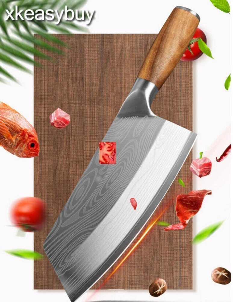 Multifunctional Chinese Knife Professional Chinese Slicer that can handle your daily kitchen tasks to chop, slice, chop and cut fruits, vegetables and meat. It is a versatile cooking knife for any home or professional kitchen chef Sharp Edge The blade is made of 4Cr13MoV stainless steel, high Rockwell hardness, hand polished edges, 15 degrees per side. Carefully designed tapered stainless steel edges for easy and efficient cutting. Brushed blade design that anti-food sticks to the blade. Mirror blade, sharp and durable, maintain good brightness Color wooden handle carefully selected wood, healthy and environmentally friendly. Ergonomically designed handle, complete tang and perfect balance for ruggedness and complete control. Descriptions: Multifunctional Chinese Knife Professional Chinese Slicer that can handle your daily kitchen tasks to chop, slice, chop and cut fruits, vegetables and meat. It is a versatile cooking knife for any home or professional kitchen chef Sharp Edge The blade is made of 4Cr13MoV stainless steel, high Rockwell hardness, hand polished edges, 15 degrees per side. Carefully designed tapered stainless steel edges for easy and efficient cutting. Brushed blade design that anti-food sticks to the blade. Mirror blade, sharp and durable, maintain good brightness Color wooden handle carefully selected wood, healthy and environmentally friendly. Ergonomically designed handle, complete tang and perfect balance for ruggedness and complete control. Specifications: Length: 32 cm Blade length: 20 cm Blade width: 8.5 cm Handle length: 12 cm Material: 4Cr14MoV Handle material: wooden handle + steel head HRC hardness: 54 + -2HRC Net weight: 280 g Gross weight: 340 g Knife thickness: 2.3 mm Suitable for: kitchen cutting vegetables, bone cutting, meat cutting, fruit cutting, etc. Package includes: 1 * Knife Tips: 1. Please do not use these knives to chop other hard foods as it will damage the blade. Do not hit the food with the knife. 2. In order to ensure the anti-rust function of the knife, please do not leave acidic or corrosive juice in the machine. The blade is too long, e.g. B. tomato juice, lemon juice, etc. 3. Be sure to shave the knife after use, wipe it dry with a clean cloth and place it in a dry and ventilated place. 4. In order to have a better cutting effect, please choose different types of knives to cut different food. 5. If the knife is blunt, please use a sharpener or grinding wheel to sharpen it several times before and after. The knife is as sharp as a new knife. 6. Do not test the sharpness of the blade with your fingers. Shipping About us Payment Ruturns Contact us Shipping Please read for your own benefit and understanding on our shipping items. All the items will be dispatched to you within 2 business day. The pacakge you can tracking on the USPS, Fedex, UPS, or DHL. Purchase price do not cover any applicable tax or duty that might be charged by customs ,buyers are responsible for such charges. If you have not received your package as our declaring in description please contact me before you want to leave feedback we can refund money or resend item as your choice. For the vast majority of orders, we will ship within 24 hours of your payment. Please be patient and we'll timely update order status for you. Each product has shown our hearts to you, and we believe that our products will not disappoint you for your patience. About us Welcome to our eBay store. As a leading and emerging company in manufacturer and exporting business, we are specialized in Business and Industrial Products, Sporting Goods, Pet Products, Home and Garden products for more than 10 years. We believe that it is our vision and mission to provide innovative products with best service and competitive price to satisfy you. Our goal is to make sure that you can find exactly what you are looking for and make it easy for you to place your orders. Payment Payment should be completed within 4 (Four) days of auction closing. Or unpaid dispute will be filed for closing auction. We will leave a positive feedback immediately after payment is received. We appreciate a positive feedback as much as you do. If for some reason there is any issue with the purchase, please contact us prior to leaving feedback, we will be glad to work together and provide a satisfying solution. Ruturns All of our items are backed with a 30-day return policy. We ensure all our items are new and in excellent condition prior to shipping. In case you receive the item that is not to the standards above, please contact us via e-Bay messages. All returns must be in new original condition as received and should be shipped with delivery confirmation Please note that all returns must be pre-approved by us. Unauthorized returns will not be accepted. If you need to return, please check twice to confirm the item not work and contact our customer service representative, let us know the detailed problem and send us some pictures for confirmation. We ONLY accept returns with original package. Please make sure that item has NO man-made sabotage. Used items will not be accepted for return. Contact us We will reply message or E-mail in 7-10 hours Our working time : M onday - Sunday 9:00am-22:30pm ( GMT+08:00 Beijing ) 1:00am-14:30pm ( GMT+00:00 London ) 19:00pm-08:30pm ( GMT+06:00 USA / Canada )