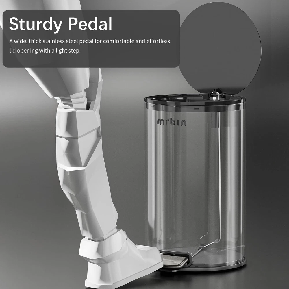 Elegant Art-Inspired Decor Accessory: This decorative trash can enhances your home decor with a minimalist design and a tungsten grey steel construction. Its matte oxidized finish and super-thin lid offer a sophisticated touch, elevating the aesthetic of any space with a high-end accessory. Durable and Rust-Resistant Wastebasket: Crafted with a fortified metal construction, this wastebasket offers unmatched durability and rust resistance for your bath or toilet. Its advanced surface technology eliminates stains and fingerprints, ensuring a pristine and reliable waste solution for long-term use. Silent Covered Disposal: Enjoy the tranquility with our covered trash can, designed with a quiet closure system that offers low-noise, slow lid descent, ensuring a peaceful environment. Premium Plastic Inner Bucket: This waste container boasts a removable premium plastic inner bin with a built-in handle for easy cleaning and disposal. The retention hole keeps trash bags tidy and concealed, ensuring your can remains clean and presentable. Portable Compact Design: Equipped with a convenient rear handle for easy movement, this 2.4 gallons capacity waste container, with its compact dimensions of 9.2 * 9.2 * 13.58 inches, serves as an ideal accessory for restroom essentials and a practical office trash can for placement near desks.
