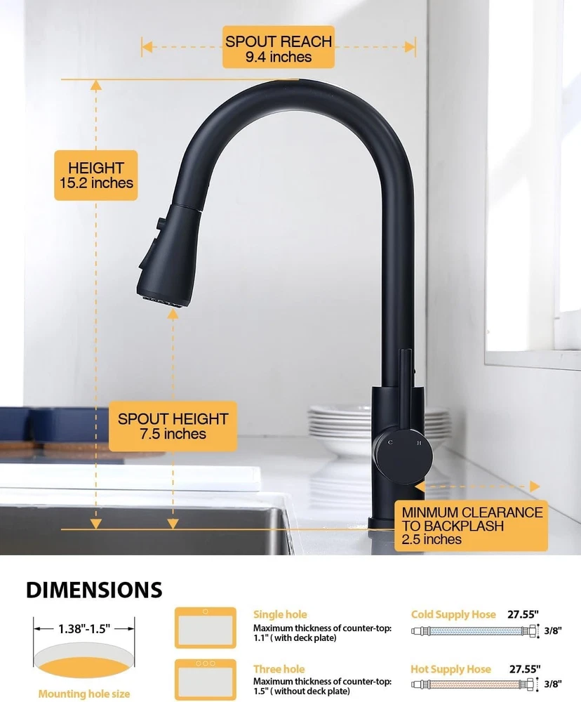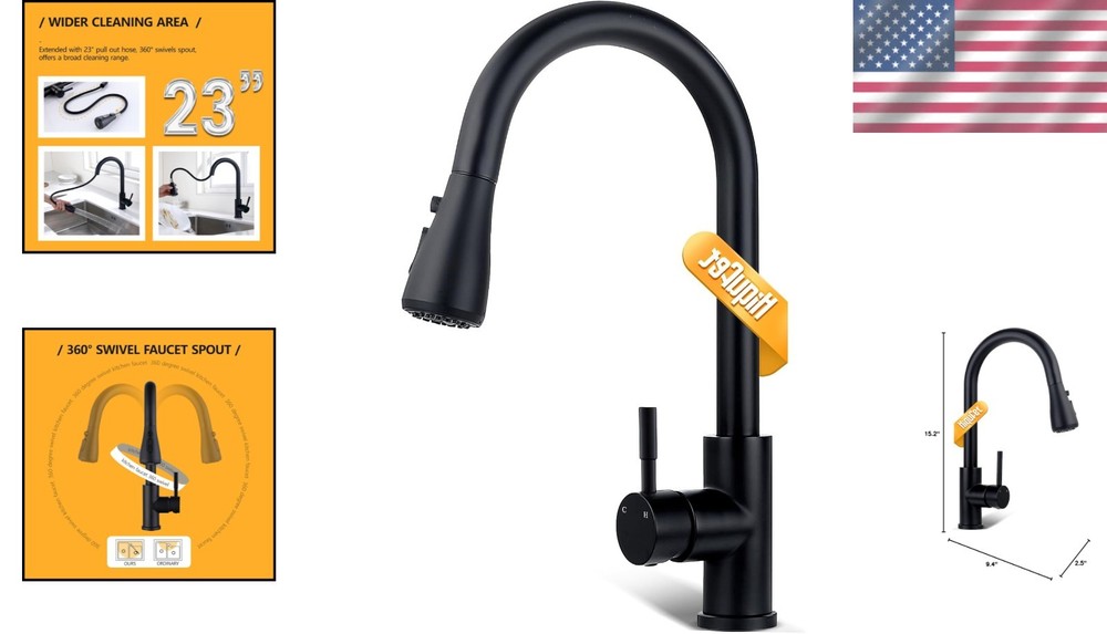 Black Kitchen Faucet Stainless Steel Pull Down Sprayer Deck Mount Single Handle ‹ › ‹ › ‹ › ‹ › ‹ › ‹ › ‹ › ‹ › ‹ › ‹ › Black Kitchen Faucet Exquisite Stainless Steel Pull Down Sprayer Elevate your culinary space with our luxurious Black Kitchen Faucet, designed with both functionality and elegance in mind. Crafted from stainless steel, this faucet is not only visually stunning but also built to withstand the rigors of daily use. Key Features: Stainless Steel Construction: Resists rust, corrosion, and tarnishing, ensuring a lasting shine and durability. Elegant Black Finish: The sophisticated black hue adds a touch of modern elegance to any kitchen decor. Pull Down Sprayer: Enjoy the convenience of a flexible sprayer that reaches every corner of your sink with ease. Single Handle Design: Effortlessly control water temperature and flow with a smooth single lever. Deck Mount Installation: Designed for easy installation on standard sinks, enhancing your kitchen with minimal effort. Easy to Clean: The smooth surface and sturdy construction make maintenance a breeze, allowing you to enjoy your kitchen without worry. Benefits: Transform your kitchen into a modern culinary haven with a stylish yet practical faucet. Versatile sprayer function perfect for rinsing produce, washing dishes, or filling pots. Enhances your kitchen's aesthetics while providing reliable performance. Built for longevity, maintaining its beauty and functionality over time. A statement piece that combines luxury with everyday utility. Why Choose Our Black Kitchen Faucet? Transform your kitchen into a sophisticated cooking space with our Black Kitchen Faucet. Not only does it serve as a functional tool, but its elegant design and durable construction will captivate all who enter your home. Enjoy the luxury of a kitchen faucet that merges innovative features with timeless style. Don't settle for less when it comes to your kitchen – elevate your experience today! Shipping Free & Fast Shipping - We offer free shipping to most of the USA with a normal delivery time of 3-7 days. However, due to the current situation, additional delivery time (up to 3 weeks) may be required for some items. Alternative Carriers - We may use alternative carriers (e.g. USPS, FedEx, UPS, etc.) to ensure your package arrives safely and on time. Due to the use of multiple carriers, we are unable to provide a tracking number automatically. Handling Time - Orders are processed and shipped within 1-2 business days of receiving cleared payment. Shipping Restrictions - Shipping to Alaska, Hawaii, Puerto Rico, Guam, and other US territories may incur shipping charges or delivery restrictions. Please contact us before ordering, or your order can be refunded/cancelled. State Restrictions - There may be restrictions based on your state of purchase. For example, certain items may not be shipped to California due to state regulations. Contact for Tracking Updates - If you require tracking updates or have any concerns about the delivery of your order, please feel free to contact us, and we will be happy to assist you. Return 30-Day Hassle-Free Returns - We want you to be completely satisfied with your purchase. If you are not, you can return the item within 30 days of receiving it for a full refund or exchange. Easy Return Process - To start a return, simply contact us and we will provide you with a prepaid return shipping label and detailed instructions. Restocking Fee - There are no restocking fees for returns. However, the buyer is responsible for return shipping costs if the return is not due to a seller's error. Refund Processing Time - Refunds will be processed within 5 business days of receiving the returned item in its condition. Payment We accept all major credit cards, PayPal, and Apple Pay for your convenience. Your payment information is secure and encrypted to ensure a safe and seamless transaction. Please complete your payment within 3 days of purchase to avoid any delays in shipping. Feedback Your feedback is extremely important to us. We strive to provide the best products and customer service possible. If you are satisfied with your purchase, please take a moment to leave us a positive review. If you have any concerns or issues with your order, please contact us before leaving negative feedback. We are committed to resolving any problems and ensuring your satisfaction. Contact Us If you have any questions or concerns, please feel free to out to our customer support team. You can contact us through the eBay messaging system. We are available Monday to Friday, 9:00 am to 5:00 pm EST, and we will do our best to respond to your inquiry within 24 hours. Buy it now and enjoy a pleasant shopping experience! Item Weight: 50.08 oz Unit Quantity: 1 Material: Stainless Steel Suitable For: Kitchen Sink,Kitchen,RV Kitchen Features: Pull-Out,Pull Down Sprayer,360 Swivel Room: Kitchen Items Included: None Type: Kitchen Faucet Finish: Black Number of Faucet Holes: 1 Color: Matte Black Number of Faucet Handles: 1 Handle Type: Lever Faucet Mounting Type: Deck Mount Shape: High Arc Installation: Single Hole Faucet Hole Spacing: 1 Spout Height: 7.5 Inches Style: Modern Unit Type: oz
