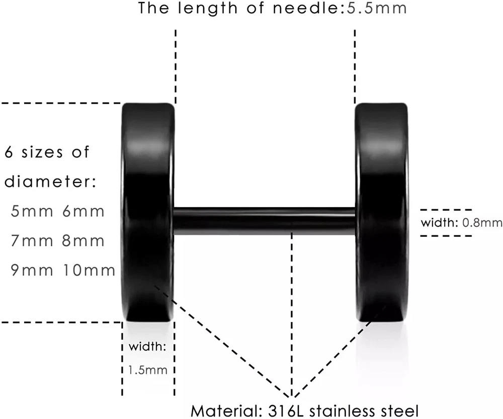 Specifications: Fashion punk gothic stainless steel earrings jewelry. Delicate arts and crafts, it will make you stand out easily from the crowds. Suitable for evening party, pub, daily wear. Type: Earrings Gender: Men's Women's Theme: Beauty Quantity: 1 Pair/2pcs Style: Fashion, Punk Material: Stainless Steel Occasions: Evening Party, Gift, Dating, etc Features: Fashion, Jewelry Charms, Hoop Earrings, High Quality, Punk Size Details 3mm: 3mm x 3mm x 2mm/0.12" x 0.12" x 0.08" (Approx.) 4mm: 4mm x 4mm x 2mm/0.16" x 0.16" x 0.08" (Approx.) 5mm: 5mm x 5mm x 2mm/0.2"x 0.2" x 0.08" (Approx.) 6mm: 6mm x 6mm x 2mm/0.24" x 0.24" x 0.08" (Approx.) 8mm: 8mm x 8mm x 2mm/0.32" x 0.32" x 0.08" (Approx.) 10mm: 10mm x 10mm x 2mm/0.39" x 0.39" x 0.08" (Approx.) 12mm: 12mm x 12mm x 2mm/0.47" x 0.47" x 0.08" (Approx.) Notes: Due to the light and screen setting difference, the item's color may be slightly different from the pictures. Please allow slight dimension difference due to different manual measurement. Package Includes: 1 Pair of Earrings(1 Pair=2 pcs)