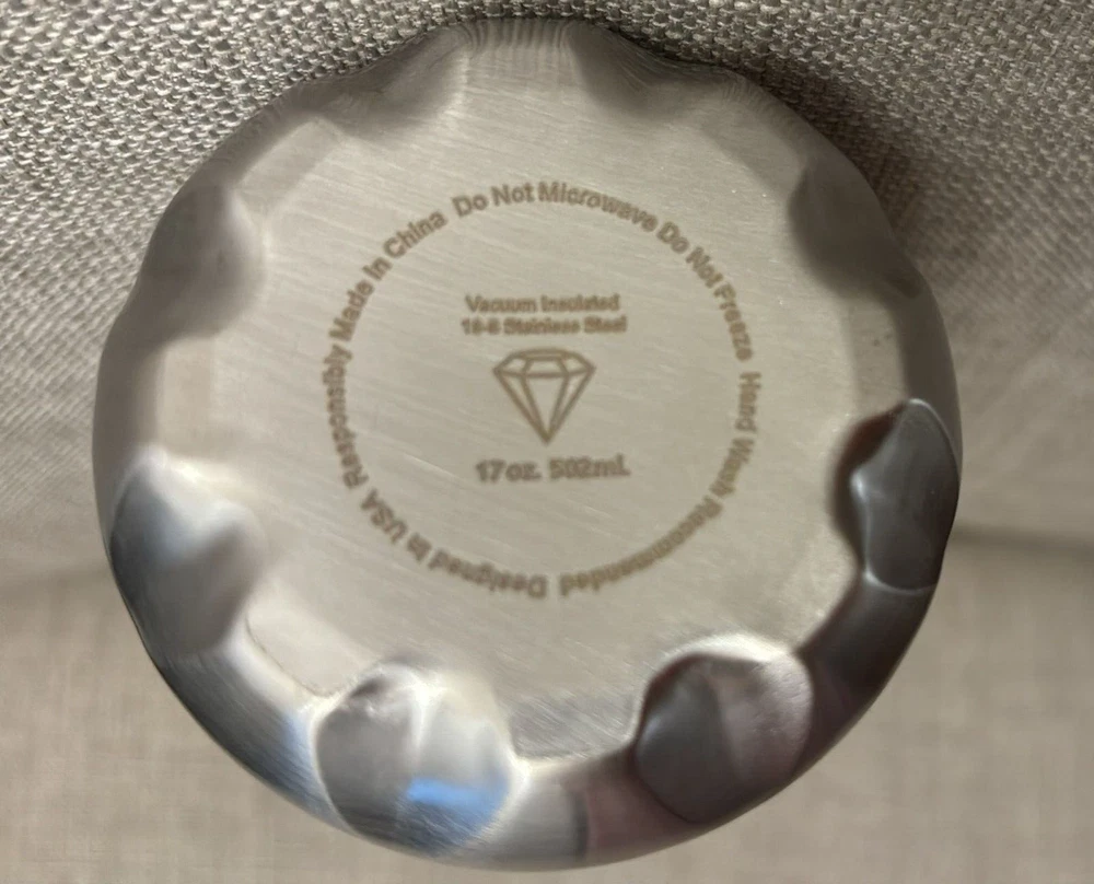 This premium stainless steel vacuum insulated bottle is a must-have for anyone who appreciates high-quality style . 17 oz capacity, it is perfect for keeping your hot or cold beverages at the ideal temperature for hours. The bottle features a diamond style lid that adds an extra touch of elegance. It comes in a silver color that will complement any kitchen decor. This premium stainless steel vacuum insulated bottle is perfect for outdoor activities, travel, or daily use and for gifts: birthdays gifts, Christmas gifts or other ocassions. Rare,unique and elegant style! 2 in stock. Price is for 1.