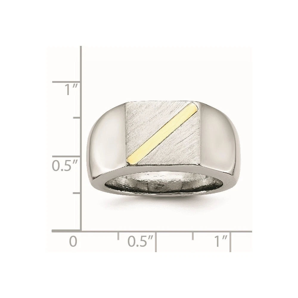 Finish:Polished & Brushed|Material: Accents:14K Gold|Plating:Gold Plated|Material: Accent Color 1:Yellow|Band Width:11 mm|Material: Primary:Stainless Steel|Ring Fit:Standard|Sizeable:No|Item Weight U/M:gm|Product Type:Jewelry|Jewelry Type:Rings|Sold By Unit:Each|Gender:Men's|Material: Primary - Color:White|Ring Type:Signet Ring|Plating Color:Gold Tone All weights and measurements are approximate and may vary slightly from the listed information. Welcome to diamond_6720 Payments We accept all Ebay approved payment. Please sent the payment to us within 8 days after the auction has ended, or you will have unpaid case auto open by eBay. Shipping Policy We will ship all items within 1 business days of purchase during the work week (M-F) excluding holidays. If you order on Friday, your order will be shipped the following business day. Tracking will be provided when it becomes available. We will only ship to a PayPal Verified Address. Please make sure your address is current and correct. If the information does not match, your order may be canceled. Buyers are responsible for all customs, duties and taxes for your respective countries. Delivery times for International Shipping will vary. California Buyers Pay 9.0% Tax on all orders. case auto open by eBay. Return Policy & Exchange Returns or Exchange are accepted. Buyer must contact us within 30 days after the item is received. Item must be returned in unworn and resalable condition. We will only issue a refund for the purchase price, excluding any shipping fees. If we are at fault, we will provide a full refund. Buyer is responsible for all return shipping costs. BUYERS FEEDBACK If you have any concerns regarding your purchase, please contact us via eBay Message, we assure you that a satisfactory resolution will be reached. Your feedback is very important to us Do remember to give us 5 star rating(*****) if you are satisfied with our product & service .