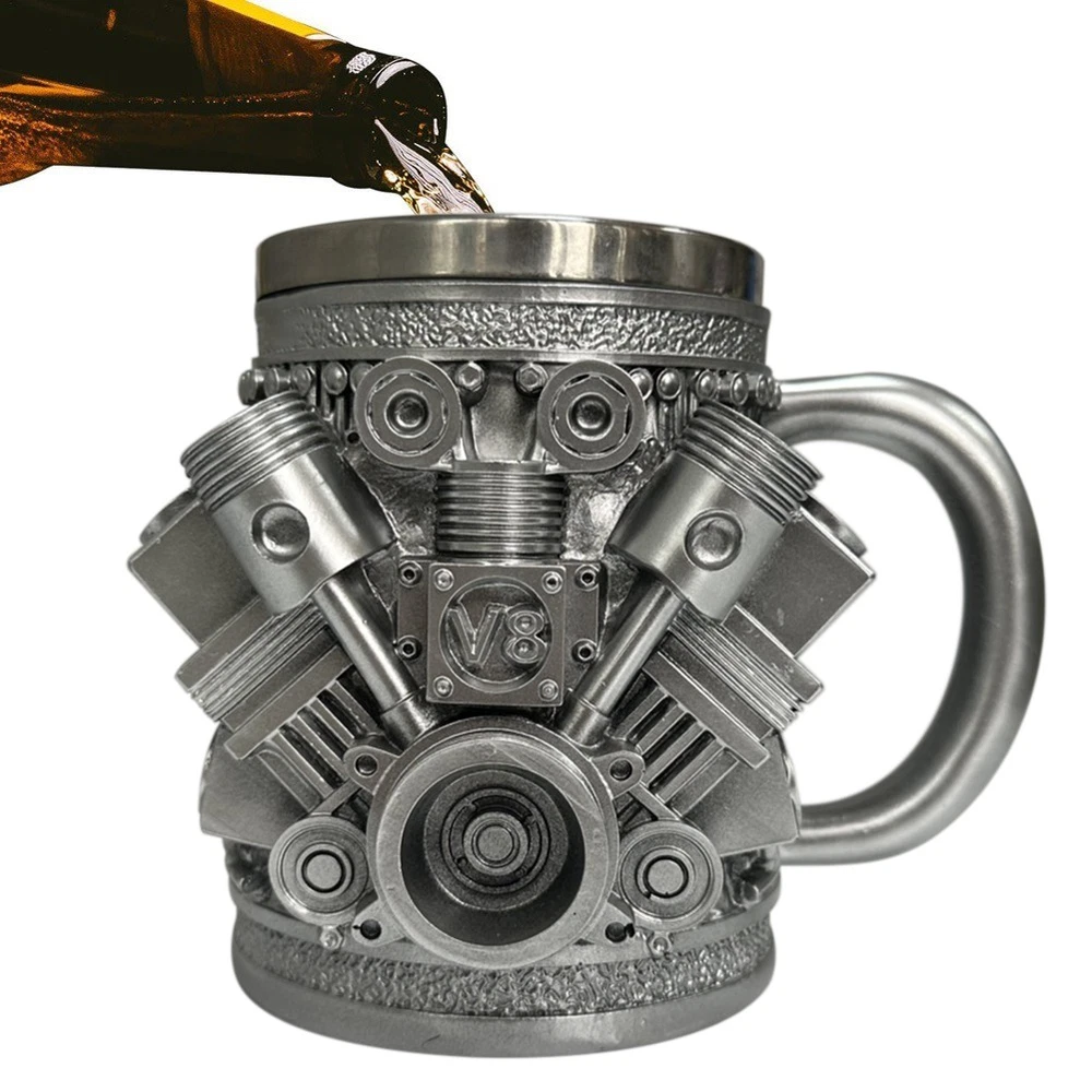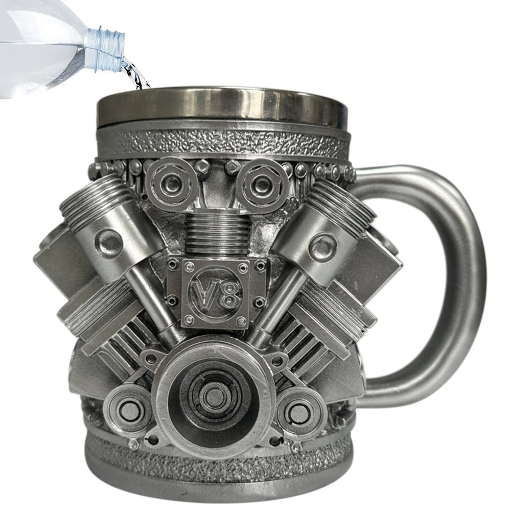 Stainless Steel Mug Engine Stainless Steel Mug Car Engine Ceramic Coffee1877 Attractive Design for Car Lovers: This mug features a 3D car engine design that captures the essence of V8 engines, making it a perfect collectible for those who admire automotive power and precision. Its intricate patterns are sure to draw attention and admiration. and Long-Lasting: Constructed from high-quality stainless steel, this coffee mug is designed to withstand daily use without breaking or deforming. Ideal for enjoying your favorite beverages in the garage or while working on your car. Advanced Temperature Retention: Equipped with double-wall vacuum insulation, this mug keeps your coffee, tea, or hot chocolate at the perfect temperature for hours. Whether you're or on a trip, your drink stays warm, enhancing your drinking experience. Portable and Convenient: and compact, this stylish stainless steel mug is easy to carry and store, making it a practical choice for everyday use. Its sleek design fits comfortably in car cup holders and small spaces, ensuring you can enjoy your brew anywhere. for Special Occasions: Impress car enthusiasts and coffee lovers alike with this creatively designed mug. Its detailed craftsmanship and stylish appearance an excellent gift for birthdays, holidays, or as a special treat for yourself or a loved one. Color: As shown Material: stainless steel Package Contents: 1 x stainless steel cup