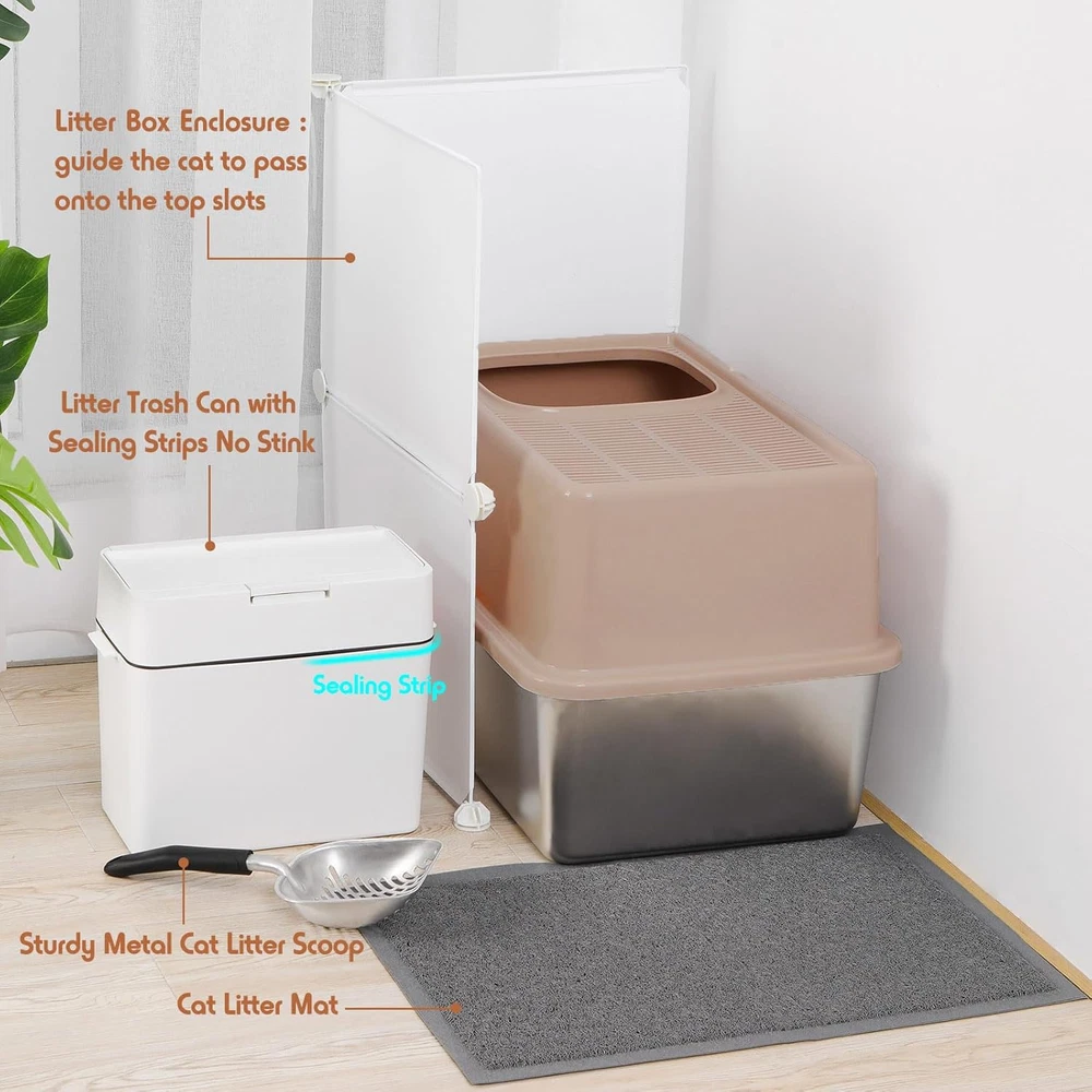 Store New Arrivals Add to Favorite View Feedback Contact Stainless Steel Cat Litter Box Top Entry XL with Lid Kit, 8'' High Side Metal Cat Litter Box for Big Cats with High Litter Box Enclosure, Litter Mat, Scoop & Trash Can, Non-Sticky, Easy Clean Description Item model number MP-CLB-LID Age Range Description All Life Stages Warranty Description 2 years Item Dimensions LxWxH 24.4 x 16.5 x 16.5 inches Color Silver Product Dimensions 24.4"L x 16.5"W x 16.5"H Material Stainless Steel, Plastic Country of Origin China Style Stylish Specific Uses for Product Indoor Item Weight 12 Pounds Target Species Cat Target Audience Keyword house-cats Model Name MP-CLB-LID Directions Cat Size X-Large Item Package Dimensions L x W x H 24.75 x 17 x 9.5 inches Included Components Sturdy Metal Cat Litter Scoop, Litter Box Enclosure, Litter Trash Can with Sealing Strips, Cat Litter Mat, Cat stainless steel litter box with lid 【Top Entry】The top entry cat litter box stainless steel means more privacy for your cat and less litter spillage. It also functions to keep other pets out of your cat's business. Attention : It’s ideal for cats under 12 lbs 【8" Deep Stainless Steel Litter Box for High Peeing Cat 】The stainless steel litter box high sides and totally 16" high can solve the problems that the cats urine and litter leaks to the floor. It never absorbs odors and stains, not rusting, non-sticky bottom 【Slot Design for Filtering Litter】The lid with many slots and grooves, acts as a litter mat on the top, will filter any litter of your cat's paws, just help the rest litter fall back into the litter box where it belongs 【Cat Litter Box Enclosure High Wall】The enclosure lead your cats to enter and exit from the passage with gaps for preventing cat litter from spilling on the floor, save litter and keep clean 【Sturdy Metal Cat Litter Scoop & Litter Trash Can with Sealing Strips】Large and heavy duty , a worthwhile metal scoop to have. The trash cans with seals strips can better hide odors and make your home fresher 【Cat Litter Mat】23.6 x 15.7 inches, help trap the litter better Product Description MEEXPAWS Extra Large Top Entry Litter Box with High Sides for Big Cats Top Entry : means more privacy for your cat and less litter spillage 8" Deep Stainless Steel Litter Box for High Peeing Cat Slot Design for Filtering Litter Special Buckle Design : make the top lid and stainless steel litter box connection more stable Cat Litter Box Enclosure High Wall Sturdy Metal Cat Litter Scoop & Litter Trash Can with Sealing Strips Easy to clean and non stick Large Top Entry Cat Litter Box KIT Package List : Stainless Steel Cat Litter Box with Lid Metal Cat litter scoop Cat litter mat Cat Litter Trash Can with Sealing Strips Cat Litter Box Enclosure High Wall Slot Design for Filtering Litter Filter any litter of your cat's paws Special Buckle Design MEEXPAWS top entry stainless steel litter box with lid equiped the buckle to make the top lid and stainless steel litter box connection more stable Large Space Non-slip Pads at the Bottom Non-Stick ABOUT US We offer the best prices around on high quality products. Our E-store includes media such as books, movies, music and games while offering electronics, toys, sporting apparel, clothing, tools, general home, garden items and more. SHIPPING We are always working hard to ensure your package arrives as soon as possible. Please understand that some factors like weather, high postal traffic, and the performance of shipping companies are outside of our control. We offer free shipping to the lower 48 states and ship within 2 business days of payment, usually sooner. We do not accept P.O. Boxes. Please provide a physical address. For shipping outside of the continental USA, we only use eBay's Global Shipping Program.The item is shipped to KY and then sent to the rest of the world. International customers are responsible for all duties and taxes. Continue to check out in order to calculate costs for shipping the item to your country. Messages regarding eBay's Global Shipping Program MUST be directed at eBay EXCLUSIVELY. RETURNS We offer a 30-Day Return Policy on items which you are not completely satisfied with. You have the option for a full-refund or an exchange of the item. No returns are available on items shipped outside of the USA. PAYMENT We accept PayPal. CONTACT US This page content is yet to come Please ad us to your favorite seller and visit again later Thank You CUSTOMER SATISFACTION We try our very best to make sure every customer is completely satisfied. If there's a problem, message us! We're happy to help. WE ACCEPT Copyright © 2021 AutoDS. | All Rights Reserved