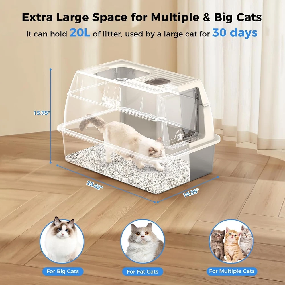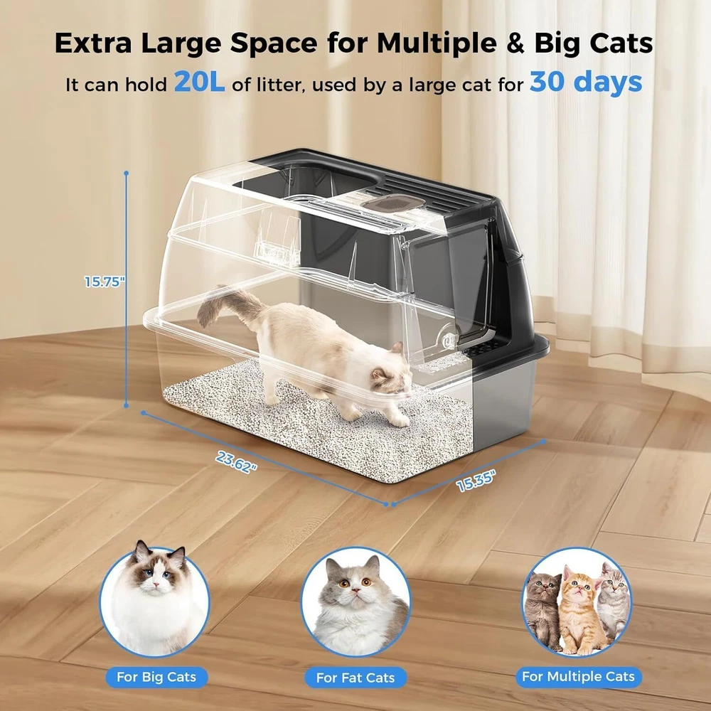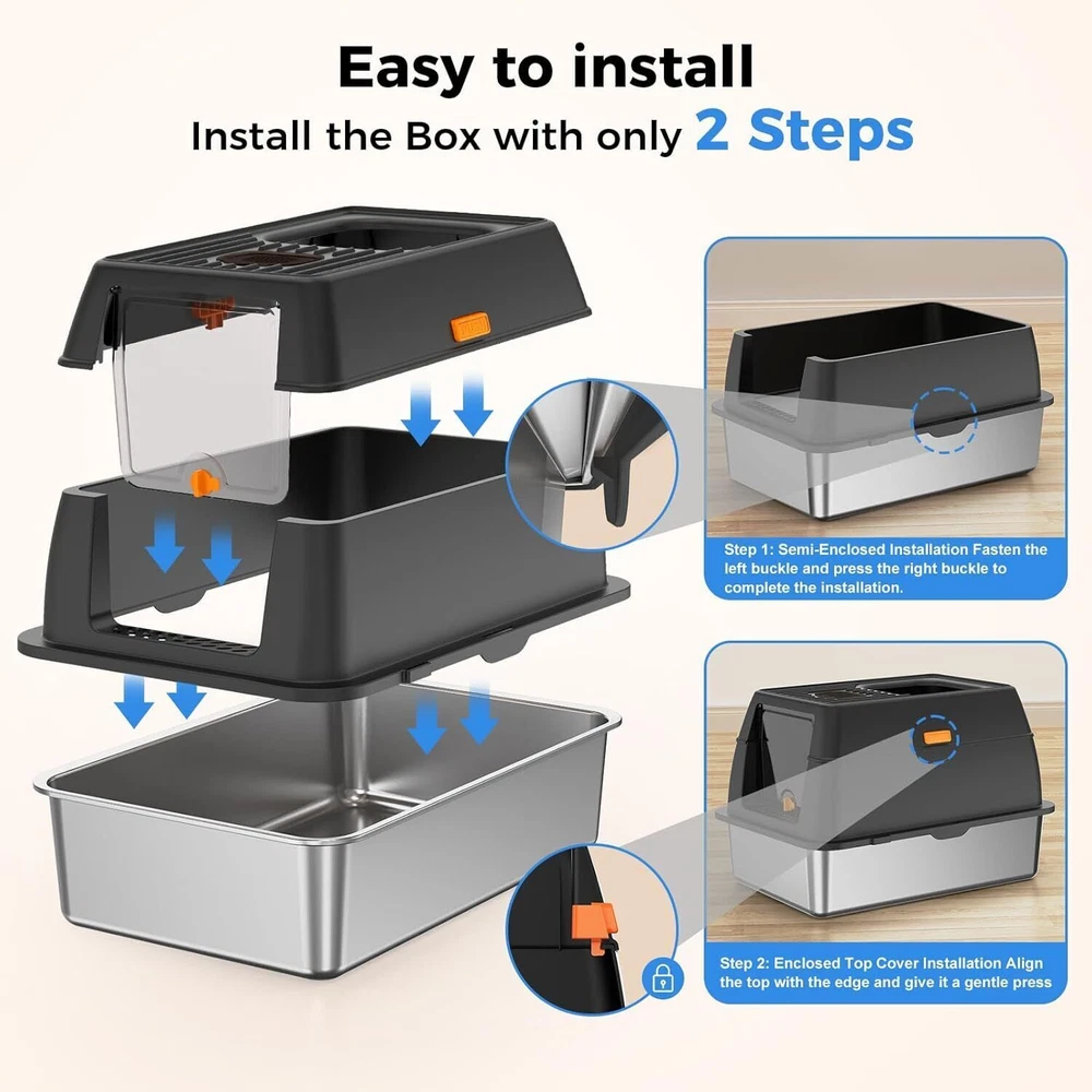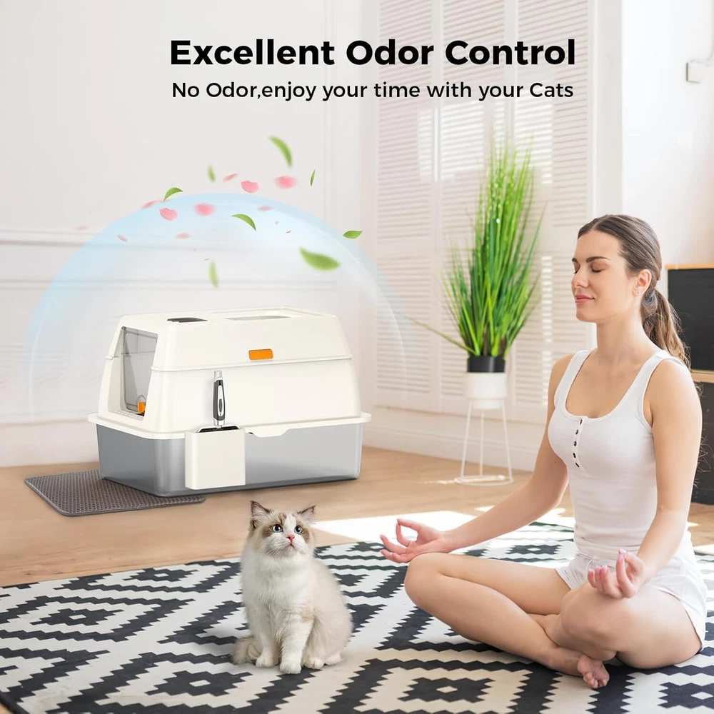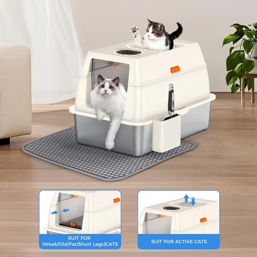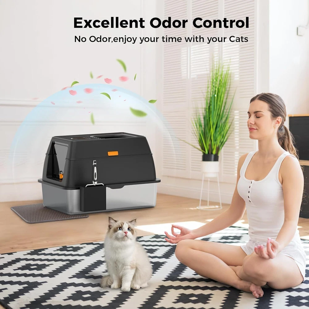 【Save on Expenses】The XL side entry cat litter box is made of sturdy stainless steel, It has a never absorbs odors and stains, not rusting, non-sticky bottom, the cat litter box is strong and durable, easily cleaning, longer life compared to plastic cat litter boxes. Choose the large stainless steel litter box with high wall can save you money on expensive cat litter box replacements, you can use it for many years. 【Perfect for High Peeing Cats】 The covered cat litter box large, and 15" high wall can solve the problems that the cats urine and litter leaks to the floor, cat litter box even though your has a high peeing cats. Keeping the surrounding floor clean and tidy at all times. 【Extra Large Litter Box for Big & Multiples Cats】 Side entry stainless steel cat litter box is 23.62"/60CM long, 15.75"/40CM wide, and 15.35"/39CM high. The extra larger size enclosed litter box is designed for large cats and small cats, providing a spacious and comfortable space for all sizes cats. Side entry stainless steel litter box with lid is also an ideal for multiples cats households. 【Easy Clean】The stainless steel cat litter box larger only needs to be rinsed with water or wiped with a rag. By the way, the extra cat litter scoop makes cleaning easier. 【Superior Quality Enclosed Stainless Steel Litter Box】 Committed to developing and manufacturing superior-quality of cat litter boxes, and also selects superior-quality materials and passes strict quality inspections, aiming to provide all the cat owners with a superiorer quality cat litter box! On Oct 24, 2024 at 03:40:19 PDT, seller added the following information: