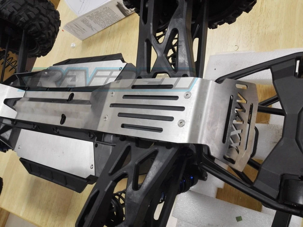 Stainless Steel Chassis Armor Front & Rear Skid Plate 5pcs Hollow Version for Traxxas X-Maxx XMAXX 6S 8S Material: Stainless Steel Color : Silver For 1/5 Scale Traxxas X-MAXX 6S 8S Front & Rear skid plate fixed by screw , Middle Chassis Armor fixed by 3M double-sided tape