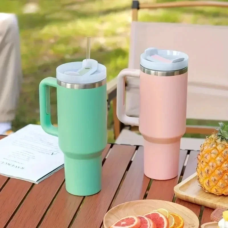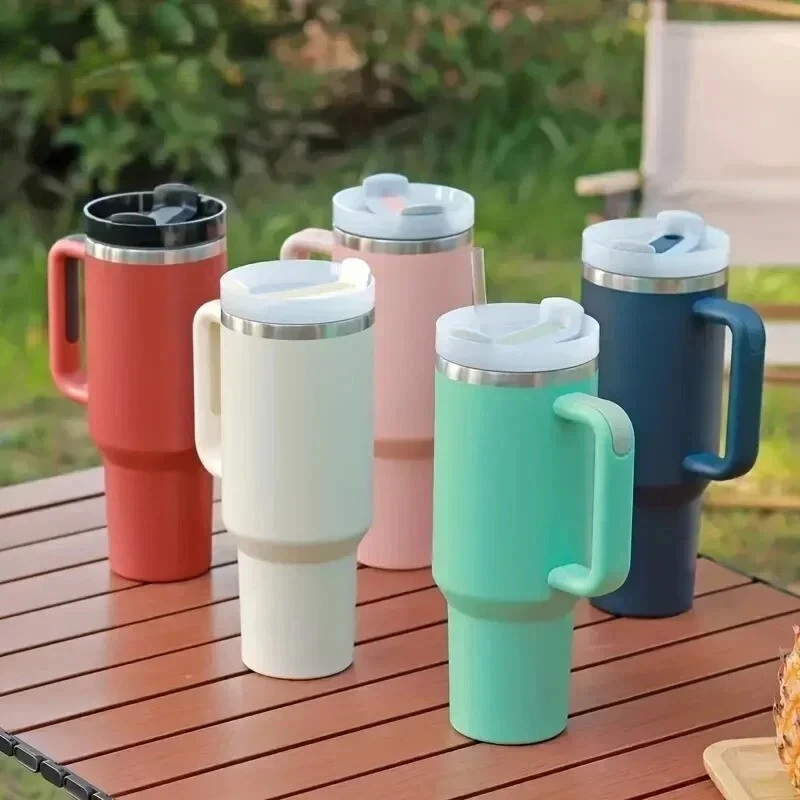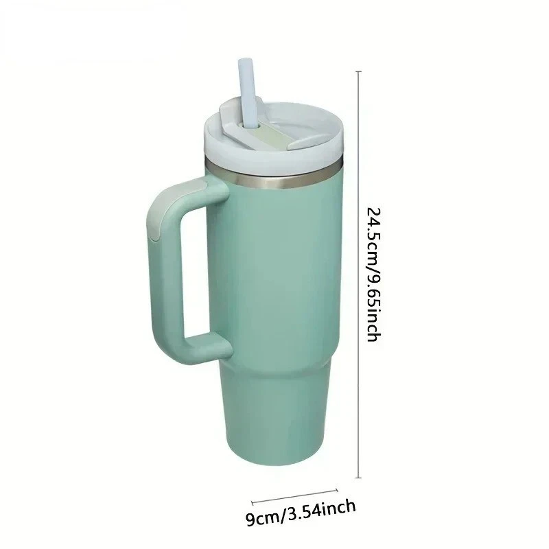 Tumbler with Handle Lid Straw 40oz Stainless Steel Water Bottle Vacuum Thermos Cup Travel Car Coffee Mug. This stainless steel coffee insulated cup is perfect for keeping your hot or cold beverages at the right temperature for hours. Its vacuum insulation technology ensures that your drink stays fresh and delicious for longer. Made from high-quality stainless steel, this cup is durable and built to last. With its sleek design and sturdy construction, this vacuum flask is ideal for use at home, in the office, or on the go. Its insulated feature keeps your drink cold or hot for an extended period, making it perfect for any outdoor activity. Get your hands on this stainless steel coffee insulated cup and enjoy your favorite beverage anytime, anywhere.