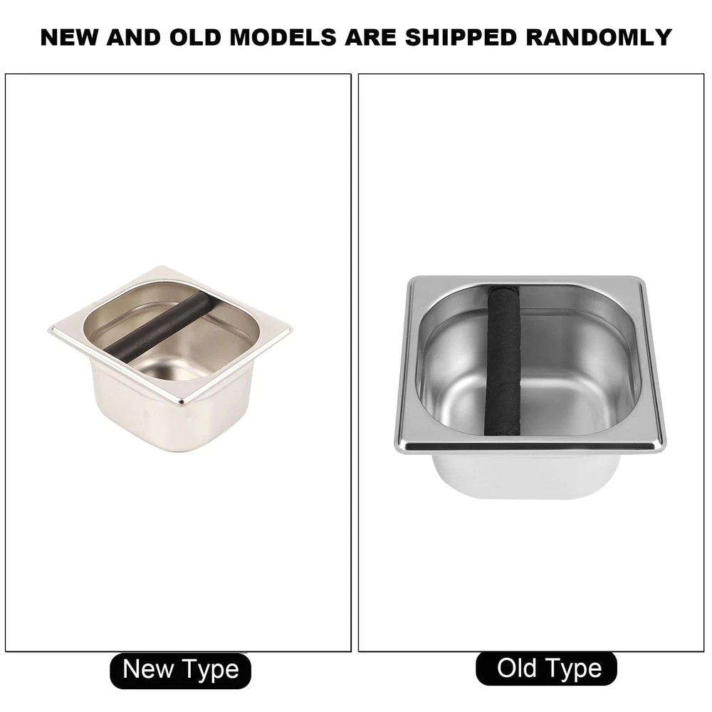 Description: The coffee knock box solves the extremely messy problem of removing the used grinds from your coffee machine or group handle. The knock boxes are used to knock out to the spent ground coffee out of the filter handle, so the next espresso can be prepared. Keep the mess in the box, and the flavor in the cup. The knock box should be cleaned minimum once per day or when full. Features: Heavy duty stainless steel construction for professional use, which is resistant to rust and easy to clean. Using deep bowl design capacity is big, coffee grounds are not easy to splash. The size is perfect for storing underneath most espresso machines. Replaceable protective rubber bar has very good buffer performance, the coffee machine controller. It's the ideal accessories of household and professional coffee machine. Specification: Condition: Brand New Material: Stainless Steel Color: Silver Product Size: S, M (Optional) S: Approx. 17.5 x 16 x 9.5cm / 6.88 x 6.29 x 3.74inch L: Approx. 16 x 17.5 x 15cm / 6.29 x 6.88 x 5.90inch Product Weight: Approx. 437g~544g Package Included: 1 x Coffee Knock Box with Rubber Bar Note: 1. Please allow 1-2 cm error due to manual measurement and make sure you do not mind before ordering. 2. Please understand that colors may exist chromatic aberration as the different placement of pictures. 3. Please note that the new type and old type of this product will be sent randomly, and make sure you will not mind before ordering.