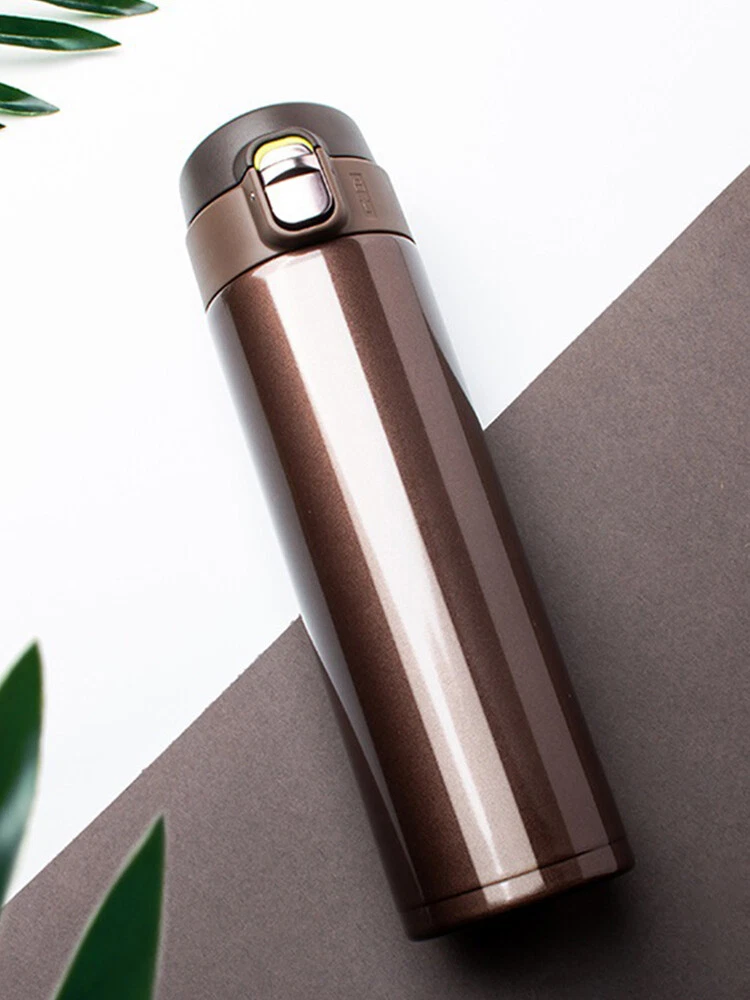 Features: 1. One handed operation convenience: This thermos cup adopts an innovative one handed opening and closing design, allowing users to easily open or close the cup lid without putting down their belongings. Its simple operation mechanism ensures that drinks can still be conveniently enjoyed even when busy or in need of free hands. 2. Lightweight and portable: The body of the thermos cup is made of lightweight materials, which greatly reduces the weight of the entire cup and makes it easy to carry. Whether it's daily commuting or outdoor activities, it can be easily packed in a bag without adding any extra burden. 3. Large opening for easy cleaning: The large opening design of the cup not only facilitates placing ice cubes or adding drinks, but also makes cleaning easier. Users can easily insert their hands or cleaning tools into the cup to thoroughly clean every corner, maintaining the hygiene and cleanliness of the cup. 4. Anti scald safety design: Considering safety during use, this thermos cup has specially added an anti scald design. Whether pouring hot or cold drinks, the insulation material on the cup body can effectively prevent heat transfer, protect users' hands from burns, and ensure comfort and safety during use. 5. Stainless steel inner liner: The insulated cup is made of high-quality stainless steel inner liner, which is not only durable and easy to clean, but also can maintain the temperature of the beverage for a long time, whether it is hot or cold. Stainless steel material also has corrosion resistance and can maintain a shiny appearance even after long-term use, ensuring the freshness and hygiene of beverages. Specifications: Capacity: 500ML Material: Stainless steel Color: Black, Coffee Package List: 1 x insulated cup On Nov 19, 2024 at 01:12:35 PST, seller added the following information: