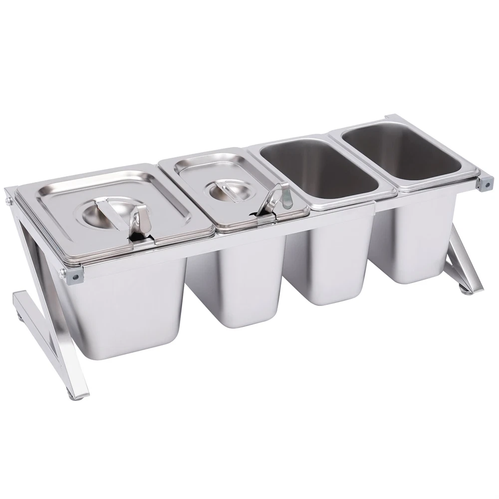 Commercial Seasoning Spice Rack Organizer Shelf for Restaurant Stainless Steel Welcom to alwaytty03 Description A neat, clean, and stylish kitchen need a user-friendly spice rack to store and organize your abundant spices for you. This sturdy and stable shelf not only effectively uses the vertical space of the countertop, but also easily avoids the embarrassment of tipping over the spice pan. This countertop inclined spice rack will give you a neat and comfortable kitchen to enjoy your cooking! Key Features High-quality Material: The shelf is made of high-quality 304 stainless steel, and the pans are made of 201 stainless steel, both of which are strong, wear-resistant, rust-resistant, and corrosion-resistant to ensure long service life. Wide Application: The stable performance of stainless steel is resistant to acids and alkalis, making it suitable for a variety of seasonings and safe for use in dishwashers, ovens, and freezers. Large Capacity: With a total of one 1/6 pans (2.32 Qt) and three 1/9 pans (1.69 Qt), this countertop spice rack set can be used not only for everyday household needs but also in restaurants and canteens. The large capacity also eliminates the need for frequent refilling. Telescoping Shelf: The support telescoping tube is adjustable in length (14.17-23.6in), allowing you to choose the number of pans to hold depending on your needs, as well as slide the pans to the left or right for easy access as you wish. Space Saving: It makes good use of the vertical space of the countertop to organize your kitchen spices or sauces in an orderly manner, keeping your kitchen neat and tidy High Load-bearing Capacity: Compared with directly placing the food pans on the tabletop, which tends to be knocked over or overturned, this frame adopts durable stainless steel and provides firm support. It ensures a good load-bearing capacity and can stably accommodate multiple filled pans. Easy to Install: Its simple structure and complete screw accessories allow you to easily complete the installation. All you have to do is attach and tighten the shelf with the screws provided, saving you time and effort. Easy to Clean: The removable pans and the electrolytic processed stainless steel, make cleaning a breeze. You can clean it directly with water without taking too much time. Easy to Store: The detachable shelf and stackable pans will easily fit in any wall cabinet without taking up too much space. Customer Service: We aim to provide quality products and services. If you have any problems, please feel free to contact us. We will reply and solve the problem for you as soon as possible. Details Practical Lid: Each pan comes with a lid to protect the spices from dust and moisture, maintaining the hygiene and quality of the spices. A recess on the lid ensures that the spoon is securely placed without affecting the seal of the lid. In addition, the top of the lid is designed with a handle for your convenience. Adjustable Foot Pad: The adjustable non-slip feet at the bottom adapt well to uneven countertops, making placement stable without tilting or slipping. It also protects the countertop from scratching. Rounded Corners: The rounded corners and smooth polished edges without burrs protect your hands from scratches and scrapes, making them more secure to use. Practical Ladles : Each pan is equipped with a ladle to avoid mixing spices. The ladle also makes it easier to control the number of spices precisely for a delicious meal. Application It is widely used in the home or commercial kitchens, canteens, pantries, cafes, beverage stores, and restaurants to store condiments, spices, sauces, jams, sweet soups, coffee beans, sugar, nuts, grains, etc. Specification Shelf Material: 304 Stainless Steel Pan Material: 201 Stainless Steel Color: Silver Installation Type: Freestanding Process: Polished, Electrolysis Special Feature: Expandable Spice Rack Number of Shelves: 1 Food Pan Quantity: 3 x 1/9 Pans + 1 x 1/6 Pan 1/9 Pan Dimensions: 17.5*11*15cm/6.88*4.33*5.9in 1/9 Pan Capacity: 1.6L/1.69Qt 1/6 Pan Dimensions: 17.5*16.5*15cm/6.88*6.49*5.9in 1/6 Pan Capacity: 2.2L/2.32Qt Shelf Dimension: 50*18*20cm/19.7*7.1*7.9in Shelf Length Range: 36-60cm/14.17-23.6in Packing Size: 43*32*22cm/17*12.6*8.7in Gross Weight: 3.5kg/7.7lbs Net Weight: 3.1kg/6.8lbs Package Included 2 x Side Support Frames 2* Telescopic Tubes 3 x 1/9 Pans 1 x 1/6 Pan 4 x Ladles 4 x Lids 4 x Adjustable Foot Pads All Accessories Required for Installation Notes Please note that the shelf can only be adjusted to a maximum of 60cm/23.6in. Please allow the slight color difference caused by the shooting light and 1-3cm error due to manual measurement, and make sure you do not mind before you order. Payment Delivery details Terms of sales About us Contact us Payment We accept ebay payment 。 Fees such as import duties, taxes are not included in the item price or shipping costs. These charges are the buyer's responsibility. Delivery details Shipping: 2-9 working days to: USA Terms of sales We maintain high standards of excellence and strive for hundred percent customer satisfaction. Feedback is very important to us. We hope that you contact us immediately before you give neutral or negative feedback, so that we can address your concerns. It is impossible to address issues if we do not know about them! About us Your satis faction is our ultimate goal. We work hard to earn your trust and future business. Our certified technicians have tested each item before shipping. The unit comes with 1 year limited warranty on all manufacturing defects. a) If you receive a defective item, you may return it or ask for a discount. Please contact us within 14 days after you receive the package. b) What you returned must be intact and in its original packaging as re? u. Customer is responsible for shipping costs of the returned item. c) We will cover the cost of shipping back t with the shipping rate indicated in the registration page. We will send you a new unit or r