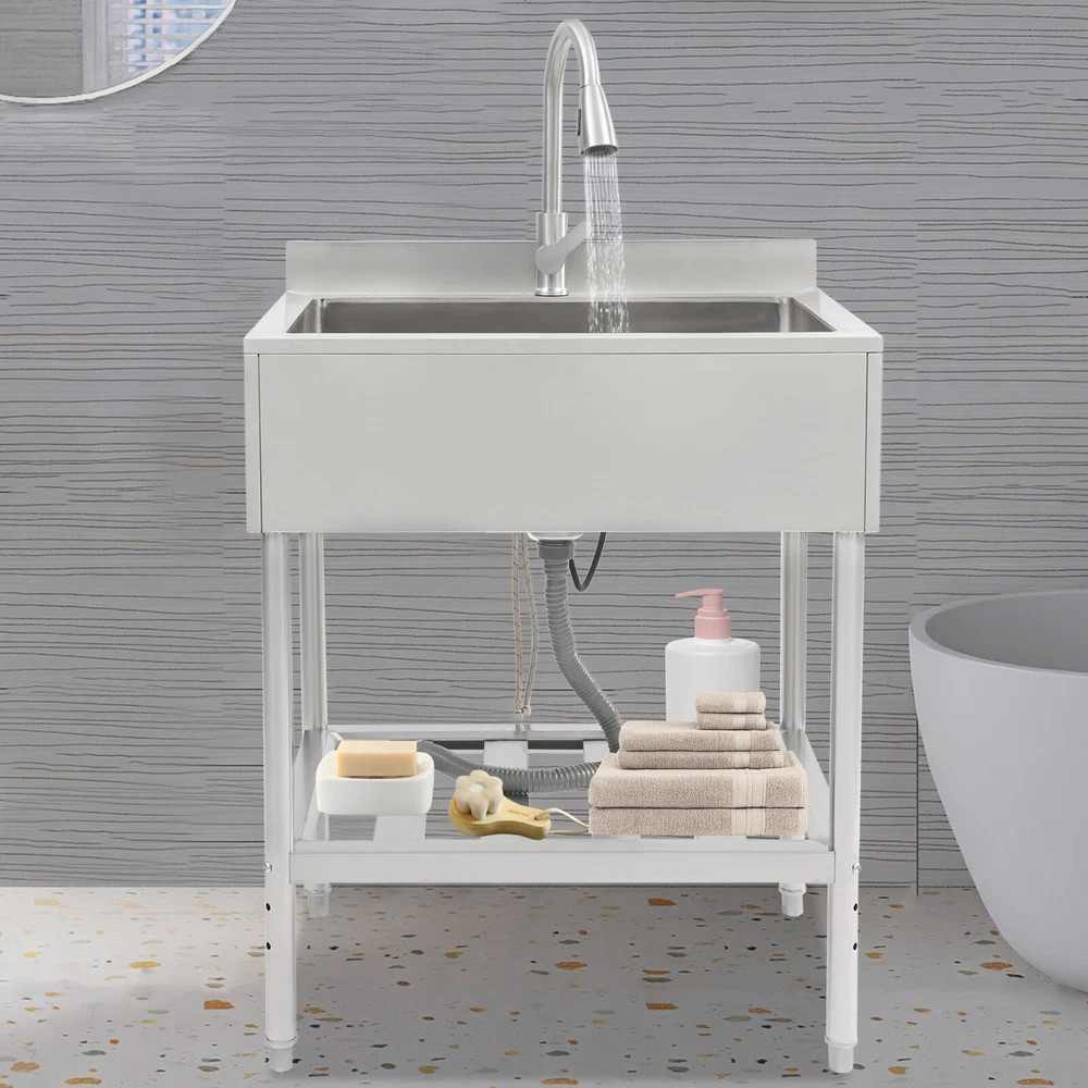Application This product is suitable for both commercial and residential use and can be used in the kitchen, garden, garage, backyard, restaurant, laundry room, school, hospital, outdoor and other places. Specification Material: 304 Stainless Steel Color: Silver Process: Wire Drawing Style: Modern Assembly Required: Yes Mounting Type: Free Standing Shape: Rectangle Product Size: 78.23*55.88*100.33cm/30.8*22*39.5in Shelf Max. Load Capacity: 50kg/110.23lbs Package Size: 83*61*44cm/32.68*24.02*17.32in Package Included 1* Free Standing Stainless Steel Sink Other Accessories for Assembly Free Standing Commercial Sink Prep Table w/ Faucet Stainless Steel Kitchen Sink Free Standing Commercial Sink Prep Table W/ Faucet Stainless Steel Kitchen Sink Key Features Made to Last: High-quality 304 Stainless Steel and Exquisite Wire Drawing Process Make This Product Sturdy, Impact-resistant , High-temperature Resistant , and Not Easy to Rust and Deform, Ensuring a Long Service Life. Convenient Washing: the 360° Swivel Gooseneck Faucet with Pull-out Design Provides You with a Full Range of Cleaning Angles for a Comfortable and Easy Cleaning Experience. in Addition, It Supports Dual Use of Hot and Cold Water, and You Can Easily Switch Between Hot and Cold Water to Meet Your Different Needs. Large Sink Space: the Enlarged Sink Makes It Possible to Accommodate More Pots and Pans While Still Avoiding Splashing. Thoughtful Design: the Removable Filter in the Basin Prevents Food and Debris from Clogging the Drain, and Also Makes It Easy for You to Clean It in Time. Also, It Comes with a Lid to Reduce Odors and Small Flying Insects Coming from the Pipes. Strong Load-bearing Capacity: the Thickened Material and Rectangular Structure Make the Product More Stable and the Lower Shelf Can Bear a Weight of 110.23 Lbs , Allowing You to Place a Variety of Heavy Objects for Your Convenience. Easy Assembly: a Simple Stru cture and Complete Accessories Help You Finish the Installation Quickly and Use It in a Short Time. Effortless Cleaning: the Smooth Surface, Round Corners, and Simple Structure Allow You to Clean It Easily Without Leaving Dead Corners of Dirt Accumulation. Ideal Gift: with Good Performance and a Modern Appearance, It Can Be Used As an Ideal Housewarming Gift for Parents, Friends, and Lovers so That They Can Also Enjoy a More Convenient Life. Good Customer Service: We Aim to Provide Quality Products and Services. If You Have Problems, Please Feel Free to Contact Us. We Will Reply and Solve the Problem for You As Soon As Possible. Details Switch: You Can Control the Water Output Through the Switch on the Faucet, Making It Convenient for You to Clean Items. Baffle: It Can Prevent Splashing Water from Contaminating the Wall. Application This Product Is Suitable for Both Commercial and Residential Use and Can Be Used in the Kitchen, Garden, Garage, Backyard, Restaurant, Laundry Room, School, Hospital, Outdoor and Other Places. Specification Material: 304 Stainless Steel Color: Silver Process: Wire Drawing Style: Modern Assembly Required: Yes Mounting Type: Free Standing Shape: Rectangle Product Size: 78.23*55.88*100.33cm/ 30.8*22*39.5in Shelf Max. Load Capacity: 50kg/110.23lbs Package Size: 83*61*44cm/32.68*24.02*17.32in Gross Weight: 14kg/30.86lbs Net Weight: 12.8kg/28.22lbs Package Included 1* Free Standing Stainless Steel Sink Other Accessories for Assembly Notes Please Check the Size Carefully Before Ordering. Please Do Not Clean It with Hard Tools like Steel Wire Balls (Not Included) for a Longer Service Life. Please Allow the Slight Color Difference Caused by the Shooting Light and 1-3cm Error Due to Manual Measurement, and Make Sure You Do Not Mind Before Ordering. Payment Delivery details Terms of sales About us Contact us Payment We accept ebay payment 。 Fees such as import duties, taxes are not included in the item price or shipping costs. These charges are the buyer's responsibility. Delivery details Shipping: 2-9 working days to: USA Terms of sales We maintain high standards of excellence and strive for hundred percent customer satisfaction. Feedback is very important to us. We hope that you contact us immediately before you give neutral or negative feedback, so that we can address your concerns. It is impossible to address issues if we do not know about them! About us Your satis faction is our ultimate goal. We work hard to earn your trust and future business. Our certified technicians have tested each item before shipping. The unit comes with 1 year limited warranty on all manufacturing defects. a) If you receive a defective item, you may return it or ask for a discount. Please contact us within 14 days after you receive the package. b) What you returned must be intact and in its original packaging as re? u. Customer is responsible for shipping costs of the returned item. c) We will cover the cost of shipping back t with the shipping rate indicated in the registration page. We will send you a new unit or refund the full payment you paid. Thank you. Contact us Business Hour Business Hour: Monday To Friday: 8:30 AM to 5:00 PM (Beijing China time) Due to time zones, our reply to your questions may not be immediately. But within above working time, we will reply your email within 24 hours. If it's non-workdays, please kindly be patient and wait till Monday. Please contact us with ebay message. Please feel free to contact us if you have any questions. Monday To Friday: 8:30 AM to 5:00 PM (Beijing China time) Due to time zones, our reply to your questions may not be immediately. But within above working time, we will reply your email within 24 hours. If it's non-workdays, please kindly be patient and wait till Monday. Please contact us with ebay message. Please feel free to contact us if you have any questions.