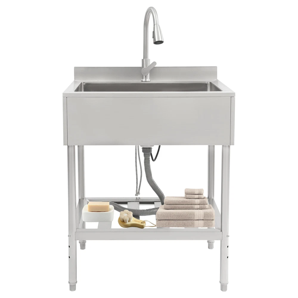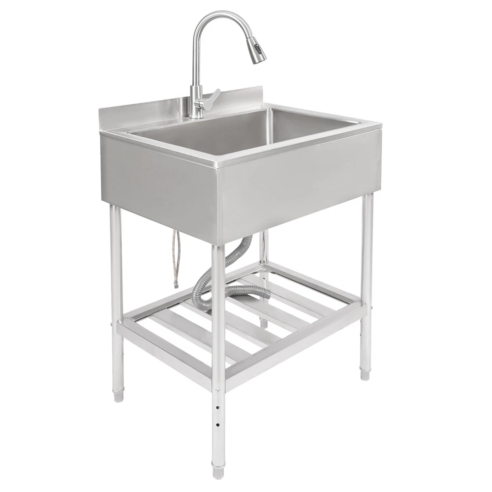 $ 138.52Commercial Single Bowl Stainless Steel Hand Wash Sink Basin Freestanding &Faucet