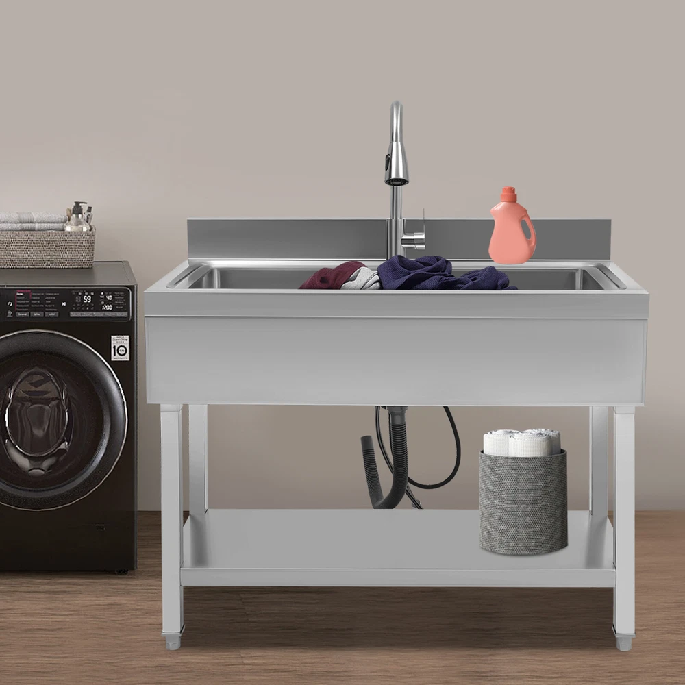 Specifications Style: Modern Shape: Rectangular Color: Silver Material: 201 Stainless Steel Surface Treatment: Brushed Mount Type: Floor Mount Assembly Required: Yes Water Dispensing Mode: 2 (Bubble Dispensing, Shower Mode) Number of Bowls: Single Bowl Capacity: 50L/ 13.21 Gal Maximum Load Capacity: 300kg/ 661.39 lbs Faucet Pull-out Length: 60cm/ 23.62 in Feet Adjustable Height: 1-3cm/ 0.39-1.18 in Faucet Rotation Angle: 360° Drain Diameter: 3-1/2'' Product Size: 91.4*50.8*90.2cm/ 36*20*35.5 in Total Height of the Product with Faucet: 1.25m/ 4.1 ft Gross Weight: 16kg/ 35.27 lbs Package Size: 105*55*40cm/ 41.34*21.65*15.75 in Commercial Sink Stainless Steel Utility Sink Single Bowl Kitchen Sink w/ Faucet Application This product is suitable for bathrooms, washrooms, hotels, restaurants, laundries, shops, utility rooms, laboratories, canteens, cafeterias, warehouses, and so on. Specifications Style: Modern Shape: Rectangular Color: Silver Material: 201 Stainless Steel Surface Treatment: Brushed Mount Type: Floor Mount Assembly Required: Yes Water Dispensing Mode: 2 (Bubble Dispensing, Shower Mode) Number of Bowls: Single Bowl Capacity: 50L/ 13.21 Gal Maximum Load Capacity: 300kg/ 661.39 lbs Faucet Pull-out Length: 60cm/ 23.62 in Feet Adjustable Height: 1-3cm/ 0.39-1.18 in Faucet Rotation Angle: 360° Drain Diameter: 3-1/2'' Product Size: 91.4*50.8*90.2cm/ 36*20*35.5 in Total Height of the Product with Faucet: 1.25m/ 4.1 ft Gross Weight: 16kg/ 35.27 lbs Package Size: 105*55*40cm/ 41.34*21.65*15.75 in Key Features Sturdy and Durable: The product is made of high-quality 201 stainless steel, using brushed technology, making this product wear-resistant, corrosion-resistant, sturdy, and less prone to rusting, so it can be used in wet environments. Large Capacity: This sink with a capacity of up to 13.21 Gal will allow you to wash your clothes and vegetables without splashing and without restricting your movement. Thoughtful Design: The faucet has two water outlet modes: shower and bubbling water mode, as well as dual control of hot and cold water outlets, which can meet different cleaning needs. It can rotate 360 ° and pull up to a length of 23.62 inches, making it easy to clean every corner of the sink and improving the convenience and flexibility of use. Excellent Load-bearing Capacity: A stable rectangular structure, high-quality material, and one-piece molded sink give the product stability and sturdiness with a maximum load capacity of 661.39 lbs, making it easy for you to handle dishes on it. Storage Assistant: The bottom shelf keeps your cleaning supplies, detergents, or other essentials within reach and keeps your space organized. Adjustable Feet: The four feet can be rotated 360° and can be adjusted in height (0.39-1.18 inches) to keep them level, ensuring stability on uneven surfaces and providing you with a safe workspace. Effortless Clean: Thanks to its smooth and watertight surface, you are allowed to easily remove dust from the surface of the product with a towel. Customer Service: We stand behind all our guests and look forward to assisting you with your purchase. It is our pleasure to answer your confusion and questions. The end of the story between us is not "we sell and you buy" Details Raised Bottom: It separates this product from the floor, making it easy to drain and clean the bottom. Splash Guardrail: It prevents spills, keeps walls clean, and prevents items from falling over the sink. Raised Edges: The raised edges can efficiently prevent overflowing, and keep your kitchen dry and clean. Filter Basket and Lid: Filter basket intercepts food scraps for easy disposal and prevents clogging. The lid helps block odors. Package Included 1* Sink 1* Faucet 4* Feet 2* Water Pipes 1* Chinese Manual Other Accessories Required for Assembly Notes Please note that you should double-check the size and specification you require before purchasing. Please note that to prolong the life of the sink, do not scratch the surface with sharp objects. Please do not use strong acids or alkalis to clean items in the sink, and do not put hard objects or rusty metal in contact with the sink for a long time, keep the sink clean by cleaning the sink and drying it with a rag after each use. Please allow the slight color difference caused by the shooting light and 1-3cm error due to manual measurement, and make sure you do not mind before you order. Payment Delivery details Terms of sales About us Contact us Payment We accept ebay payment 。 Fees such as import duties, taxes are not included in the item price or shipping costs. These charges are the buyer's responsibility. Delivery details Shipping: 2-9 working days to: USA Terms of sales We maintain high standards of excellence and strive for hundred percent customer satisfaction. Feedback is very important to us. We hope that you contact us immediately before you give neutral or negative feedback, so that we can address your concerns. It is impossible to address issues if we do not know about them! About us Your satis faction is our ultimate goal. We work hard to earn your trust and future business. Our certified technicians have tested each item before shipping. The unit comes with 1 year limited warranty on all manufacturing defects. a) If you receive a defective item, you may return it or ask for a discount. Please contact us within 14 days after you receive the package. b) What you returned must be intact and in its original packaging as re? u. Customer is responsible for shipping costs of the returned item. c) We will cover the cost of shipping back t with the shipping rate indicated in the registration page. We will send you a new unit or refund the full payment you paid. Thank you. Contact us Business Hour Business Hour: Monday To Friday: 8:30 AM to 5:00 PM (Beijing China time) Due to time zones, our reply to your questions may not be immediately. But within above working time, we will reply your email within 24 hours. If it's non-workdays, ple