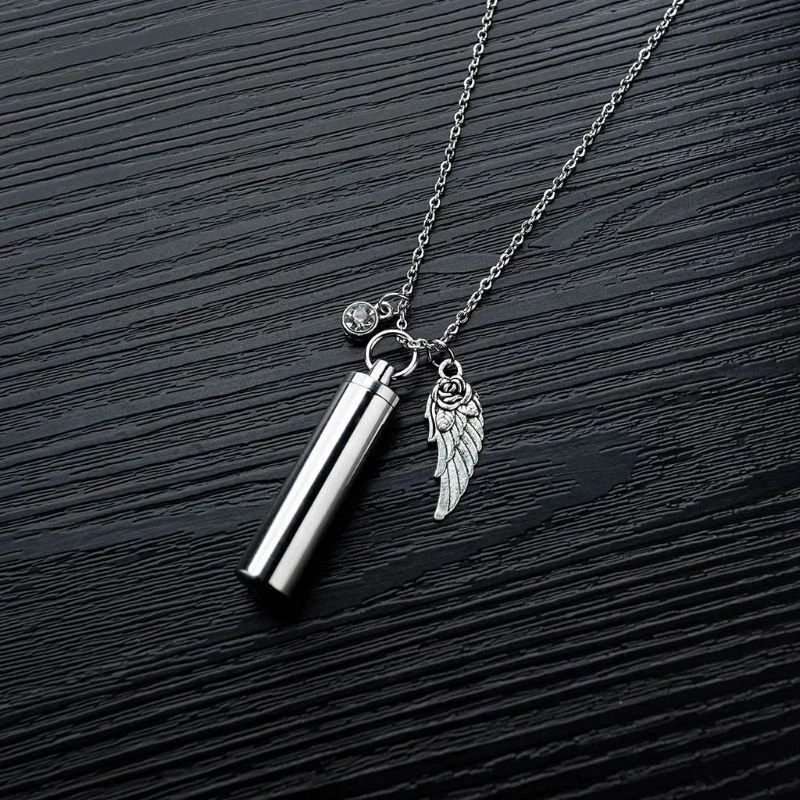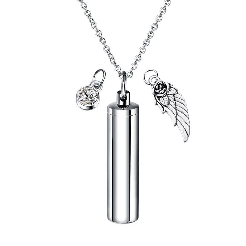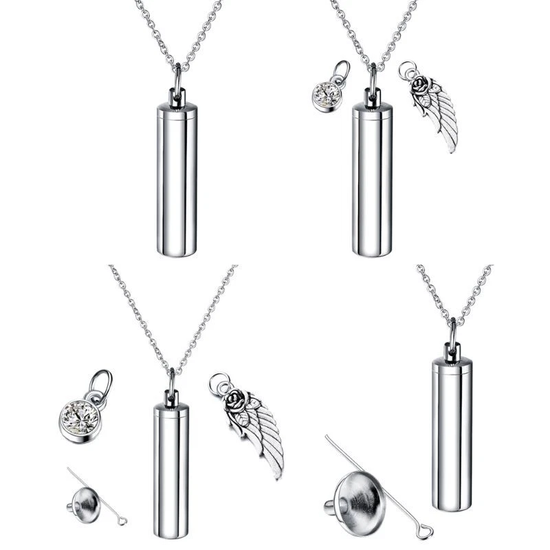 Stainless Steel Cremation Jewelry Cylinder Pet Memorial Urn Necklace Wing and high Features: high stainless steel, highly-polished surface, hypoallergenic, sturdy and durable. Never rust, corrode, fade or stain. Last forever just like the memory it represents. Use as Pendant Necklace or Keychain.High polished Surface, Smooth and Comfortable to Wear. A lovely necklace to remember a special and keep them close to your heart at all times. This could be used for Cremation Jewelry,Urn Jewelry, Cremation Urn, Necklaces for Ashes, Urns for Ashes. Specification: Stainless Steel Color: Metal 1 2#; 3#; 4# Size: Cylinder: 4.7x1.1cm(1.85inx0.4in); wing: 3cm(1.18in); adjustable chain length: 50cm(19.69in) Quantity: 1 Set Note:1.Please allow 1-3cm error due to manual measurement. pls make sure you do not mind before you bid. 2.Due to the difference between different monitors, the picture may not reflect the actual color of the item. Thank you! Package includes(without retail package): 1 Set x Pet Cremation Jewelry
