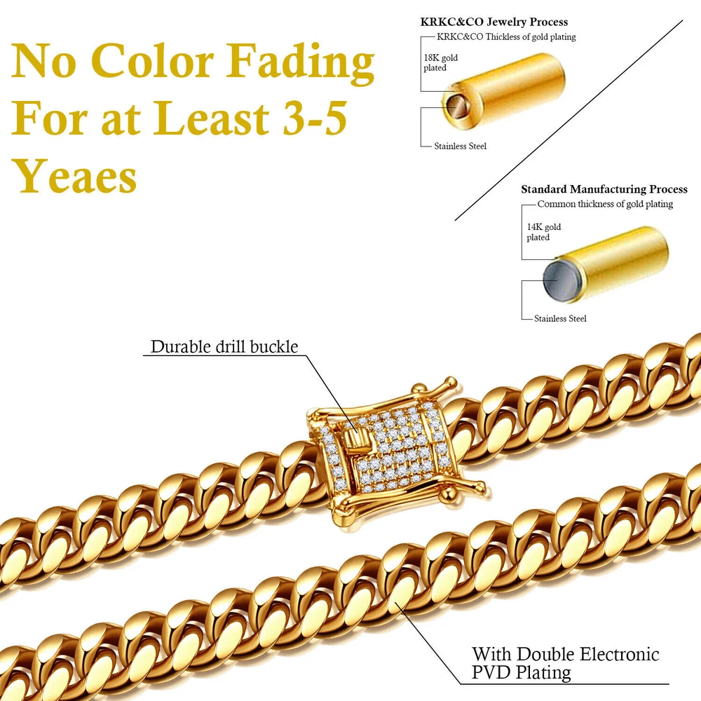 1. This Cuban link chain is a total game-changer! The 18K gold color gives it a luxurious look, and the stainless steel makes it durable yet lightweight. The length options are perfect for any style, whether you want a subtle layered look or a bold statement piece. It arrived quickly and was exactly as described—super shiny and well-made. Definitely worth every penny, and the seller’s customer service is top-notch. Highly recommend for anyone into hip-hop jewelry or just wanting a sleek, high-quality chain!