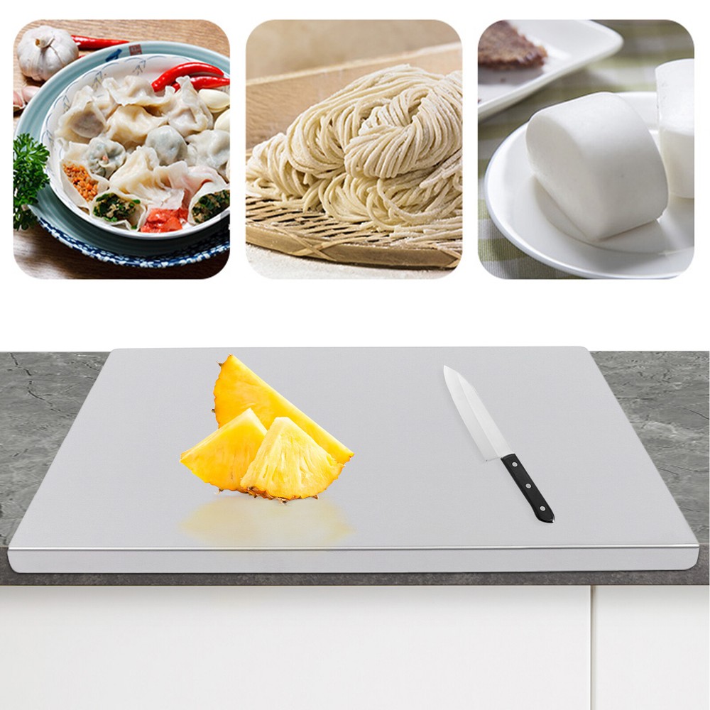 Stainless Steel Cutting Chopping Boards Large Pastry Board Counter with Lip Top Cutting Boards Large Stainless Steel Cutting Chopping Boards Pastry Board Meat Description This is a cutting board made of stainless steel. It has an L-shaped bending design so that the cutting board will not slide easily when you are using it. The stainless steel also makes it not moldy or cracked, making it easy for you to clean. It also reduces the possibility of ingredients becoming stringy. What's Included? 1* Stainless Steel Cutting Board Features&Highlights Good Material: The material of this cutting board is stainless steel, compared with other materials, it will not mold or crack, and is easy to clean. So you can use it for a long time. Free from Odor: Compared to other materials, stainless steel cutting board does not leave an odor after cutting odorous ingredients, so it does not cause them to become stringy. Unique Design: It has an L-shaped bending that allows you to snap the cutting board firmly to the edge of the table, preventing injuries from sliding the board back and forth while you're chopping. Versatile Use: Thanks to its smooth, easy-to-clean texture, you can use it not only to cut vegetables but also to knead the dough. Large Size: It can hold more food at once, so you can use it with great convenience, which can meet your daily needs. Easy to Clean: Since it is made of stainless steel, it has a smooth surface and will not mold. So you can wipe it with a towel or clean it directly with water. Thin and Light: Compared with ordinary cutting boards, it is thinner and lighter, so when it is not in use, you can just put it on the table without getting in the way. Customer Service: We aim to provide quality products and services. If you have any problems, please feel free to contact us. We will reply and solve the problem for you as soon as possible. Weights&Dimensions Product Size: 60*50*1.5cm/ 23.6*19.6*0.5in Package Size: 55*45*5cm/ 21.65*17.72*1.97in Net Weight: 3.3kg/ 7.28lbs Gross Weight: 3.7kg/ 8.16lbs Specifications Material: Stainless Steel Details L-shaped Folded Edge: This design allows the entire cutting board to be firmly fixed to the table, making it less likely to slide and easier for you to operate. Stainless Steel Material: Compared to other materials, stainless steel is not easy to mold, will not crack, is easy to clean, and does not require maintenance. It is a great material for cutting boards. Application It can be used in kitchens at home or in restaurants for cutting vegetables and kneading the dough. Notes Please allow the slight color difference caused by the shooting light and 1-3 cm error due to manual measurement, and make sure you do not mind before ordering. Payment Delivery details Terms of sales About us Contact us Payment We accept ebay payment 。 Fees such as import duties, taxes are not included in the item price or shipping costs. These charges are the buyer's responsibility. Delivery details Shipping: 2-9 working days to: USA Terms of sales We maintain high standards of excellence and strive for hundred percent customer satisfaction. Feedback is very important to us. We hope that you contact us immediately before you give neutral or negative feedback, so that we can address your concerns. It is impossible to address issues if we do not know about them! About us Your satis faction is our ultimate goal. We work hard to earn your trust and future business. Our certified technicians have tested each item before shipping. The unit comes with 1 year limited warranty on all manufacturing defects. a) If you receive a defective item, you may return it or ask for a discount. Please contact us within 14 days after you receive the package. b) What you returned must be intact and in its original packaging as re? u. Customer is responsible for shipping costs of the returned item. c) We will cover the cost of shipping back t with the shipping rate indicated in the registration page. We will send you a new unit or refund the full payment you paid. Thank you. Contact us Business Hour Business Hour: Monday To Friday: 8:30 AM to 5:00 PM (Beijing China time) Due to time zones, our reply to your questions may not be immediately. But within above working time, we will reply your email within 24 hours. If it's non-workdays, please kindly be patient and wait till Monday. Please contact us with ebay message. Please feel free to contact us if you have any questions. Monday To Friday: 8:30 AM to 5:00 PM (Beijing China time) Due to time zones, our reply to your questions may not be immediately. But within above working time, we will reply your email within 24 hours. If it's non-workdays, please kindly be patient and wait till Monday. Please contact us with ebay message. Please feel free to contact us if you have any questions. Characteristic Convenient Use,Easy Operation,Easy installation Features Durable, Dishwasher Safe, Easy Clean, Light Weight Brand Unbranded Type Counter Saver Material Stainless Steel Size 60*50*1.5cm/ 23.6*19.6*0.5in Making Method N/A Color As Shown Shape Rectangle Number of Items in Set 1 MPN Does not apply Manufacturer Warranty 1 Year Item Weight 3.3kg/ 7.28lbs UPC does not apply On Feb 27, 2026 at 22:57:27 PST, seller added the following information: