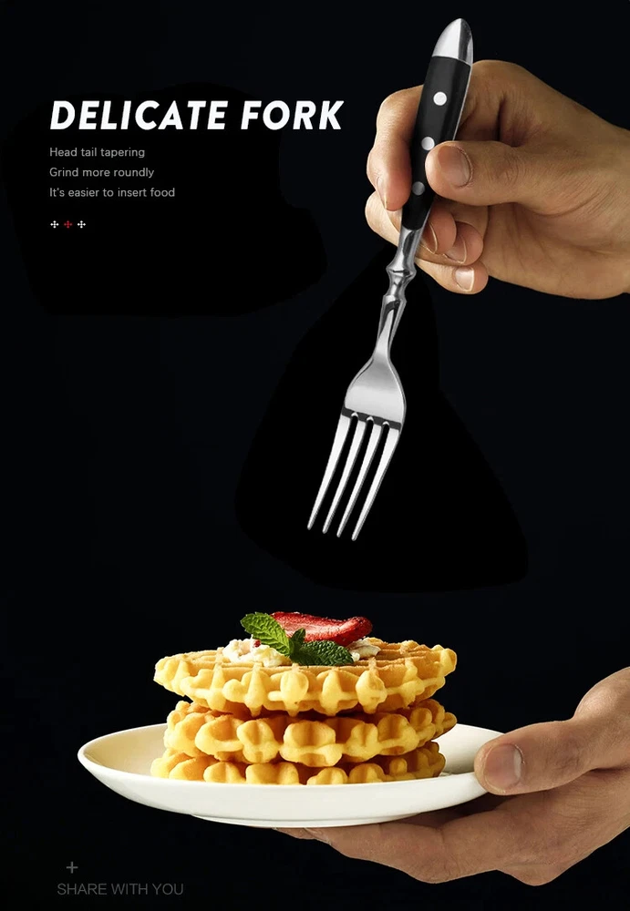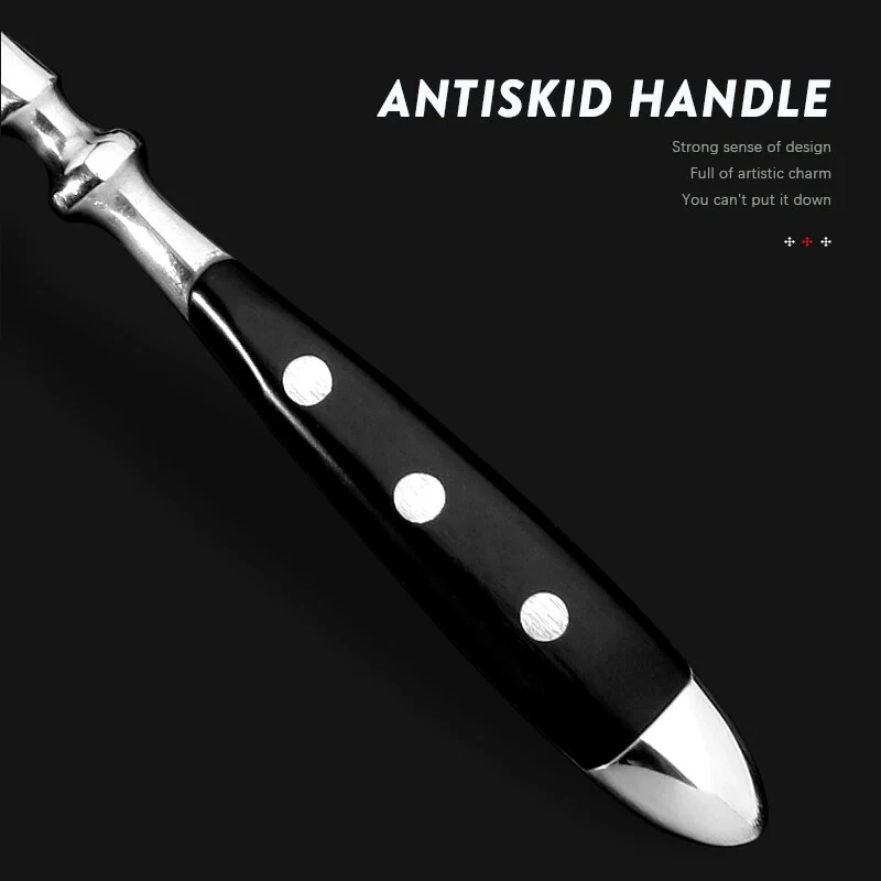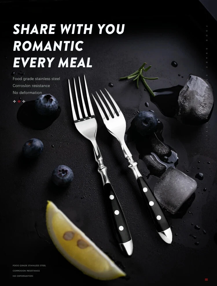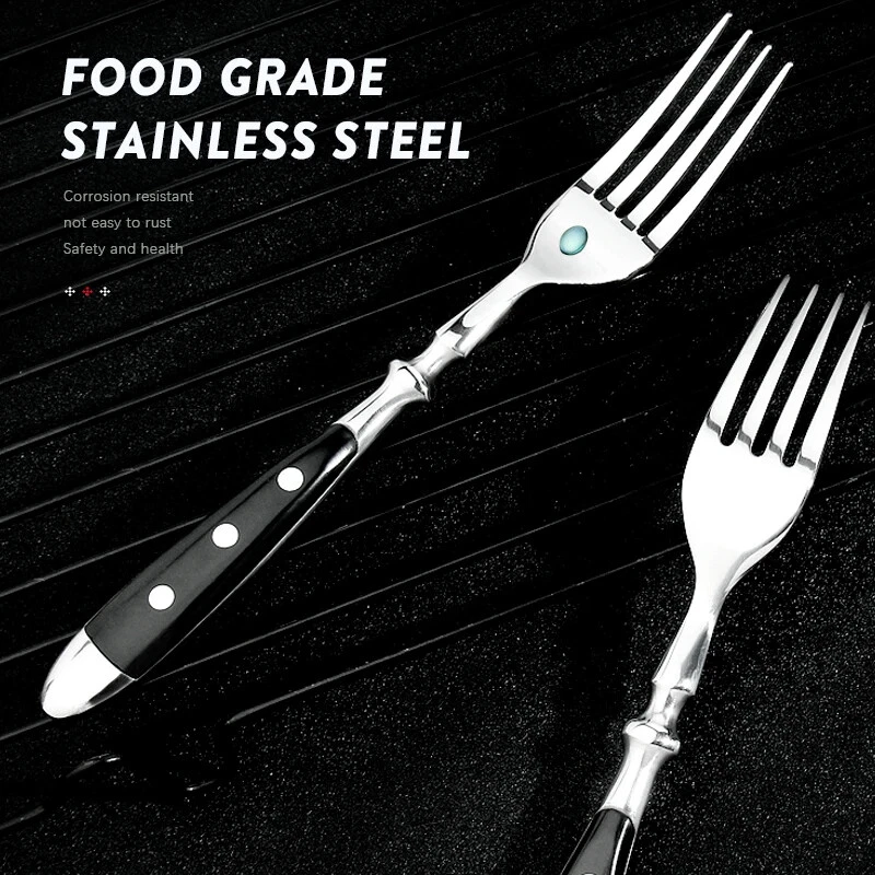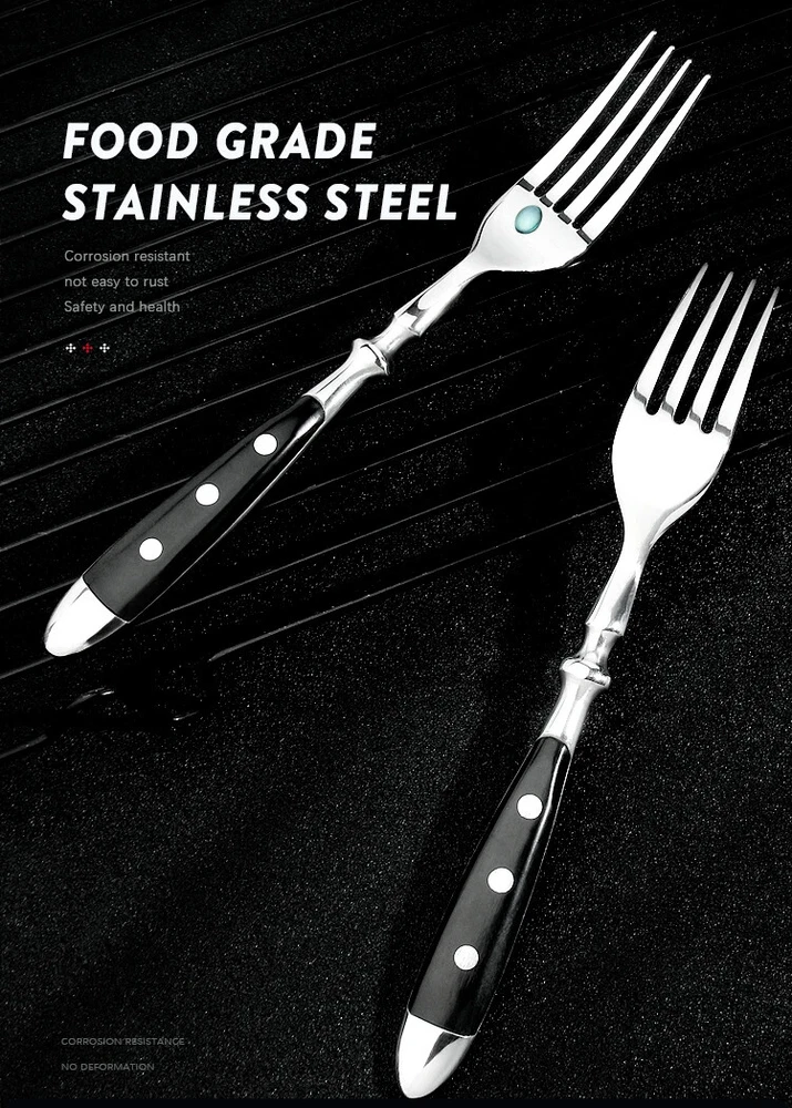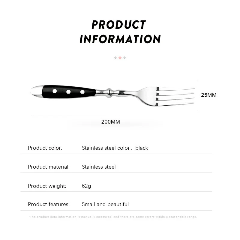 3548 Product sellpoints Engraving Technique:Exquisite engraving technique adds a touch of sophistication to the dinnerware set. Multi-functional Cutlery:Versatile set for slicing, paring, boning, carving, and dicing, perfect for diverse culinary tasks. Dinnerware Set For 8|Premium German Steel 1.4116:Crafted with high-grade German steel 1.4116 for exceptional durability and sharpness. Serrated Blade Edge:Serrated edges ensure a clean cut through various foods, from meats to fruits. Modern Stainless Steel Flatware:Sleek, modern stainless steel design adds a touch of elegance to any dining experience. Product color:Stainless steel color, black Product material:Stainless steel Product weight:62g Product features:Small and beautifu