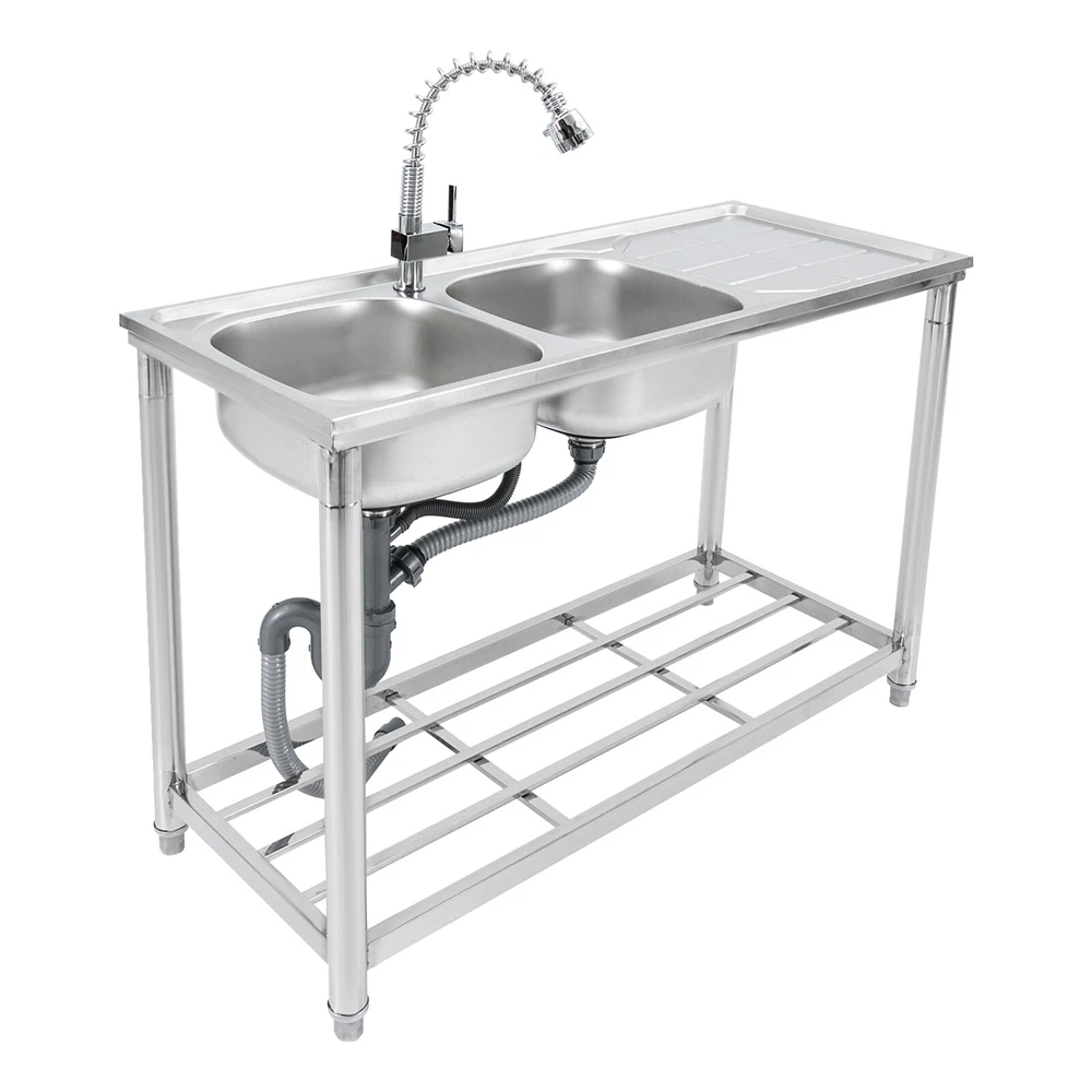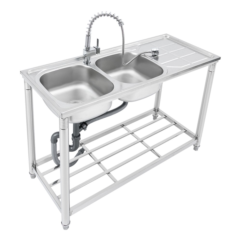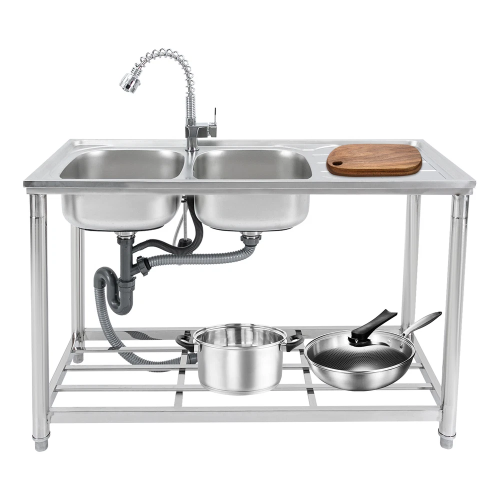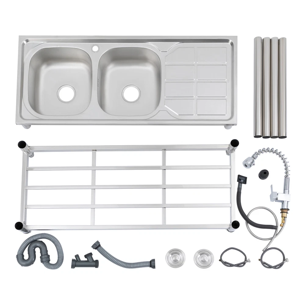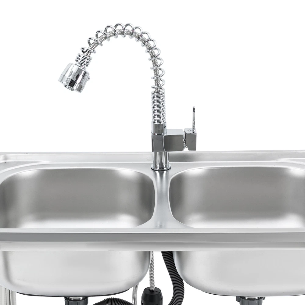 Application The Product Is Suitable for Use in Kitchens, Bars, Restaurants, Dessert Stores, Cafeterias, Garages, and Other Commercial Establishments to Wash and Clean Food, Fruits and Vegetables, and More. Specifications Color: Silver Material: 201 Stainless Steel Process: Electroplated Number of Bowls: 2 Mount Type: Free Standing Assembly Required: Yes Pull-out Faucet Length: 50cm/19.69in Load Bearing Capacity: 100kg/220.46lbs Faucet Interface: 1/2in Inlet Water Pipe: 80cm/31.5in Product Size: 120*50*80cm/47.24*19.69*31.5in Each Bowl Size: 39*35*17cm/15.35*13.78*6.69in Countertop Length: 41cm/16.14in Packaging Size: 125*55*28cm/49.21*21.65*11in Gross Weight: 10kg/22lbs Package Included 1*Stainless Steel Sink 1*Pull-out Faucet Other Needed Accessories Welcome to our store 👉promotion_sales Description Use This Shiny and Durable Stainless Steel Sink to Elevate Your Kitchen Grade and Improve Your Washing Experience and Kitchen Working Efficiency. It Comes with a Pull-out Faucet, Efficient Drainage, a Large Countertop, and a Sturdy Bottom Shelf to Provide You with a Convenient and Flexible Washing Experience, and Extra Storage Space for Your Kitchenware to Keep Your Kitchen Room Neat and Clean. Key Features Sturdy and Durable: Made of 201 Stainless Steel with the Electroplated Process, the Product Is Highly Resistant to Corrosion, Rust, Deformation, and Wear, Giving It High Hardness and Long Service Life. Flexible Washing: the Product Comes with Two Bowls to Provide You with Enough Space for Washing Your Kitchenware, and a Pull-out Faucet Capable of Pulling out to a Length of 19.69 Inches to Give You the Flexibility to Clean. in Addition, the 360° Rotatable Faucet Allows You to Freely Adjust the Direction of Water Flow and Use Water Without Restriction. Large Storage Room: the Product Comes with a 16.14*19.69-Inch Countertop and a Shelf for Storing Your Pots, Pans, Bowls, Ladles, Basins, and Other Kitchenware. High Load Bearing: the Thickened Board and Sturdy Tubes Provide the Product with a Strong Structure to Hold a Weight of 220.46 Lbs. Good Appearance: the Glossy Appearance Makes It Easy to Blend into Various Styles of Kitchens Excellent Drainage: the Large-diameter Drain Can Drain the Water Quickly, and the Filter Basket Can Effectively Isolate out Debris to Avoid Clogging Waterways. in Addition, the U-shaped Drain Can Prevent Odor from Leaking out and Polluting the Air in the Kitchen. Easy to Clean: the Smooth Surface and Internal Round Corners Don't Allow Liquids and Residues to Accumulate, Making It Easy for You to Clean up with a Rag. Customer Service: We Aim to Provide Quality Products and Services. If You Have Any Problems, Please Feel Free to Contact Us. We Will Reply and Solve the Problem for You As Soon As Possible. Details Adjustable Feet: the Sturdy Feet Can Be Adjusted to Fit Uneven Surfaces and Make the Product Stay Stable During Your Work. Ceramic Spool: the Internal Ceramic Spool Ensures Explosion-proof , Precise Temperature Regulation and Reliable Leak-proof Operation for a Long Service Life. Abs Aerator: It Allows the Water and Air Flowing Through It to Mix Fully, Improving Water Flushing Power While Effectively Reducing Water Consumption and Saving Water. Overflow Gap: It Can Prevent Water from Spilling over the Countertop and Wetting the Floor. Application The Product Is Suitable for Use in Kitchens, Bars, Restaurants, Dessert Stores, Cafeterias, Garages, and Other Commercial Establishments to Wash and Clean Food, Fruits and Vegetables, and More. Specifications Color: Silver Material: 201 Stainless Steel Process: Electroplated Number of Bowls: 2 Mount Type: Free Standing Assembly Required: Yes Pull-out Faucet Length: 50cm/19.69in Load Bearing Capacity: 100kg/220.46lbs Faucet Interface: 1/2in Inlet Water Pipe: 80cm/31.5in Product Size: 120*50*80cm/47.24*19.69*31.5in Each Bowl Size: 39*35*17cm/15.35*13.78*6.69in Countertop Length: 41cm/16.14in Packaging Size: 125*55*28cm/49.21*21.65*11in Gross Weight: 10kg/22lbs Package Included 1*Stainless Steel Sink 1*Pull-out Faucet Other Needed Accessories Notes Please Check the Size Carefully Before Ordering. Please Do Not Clean It with Hard Tools like Steel Wire Balls for a Longer Service Life. Please Allow the Slight Color Difference Caused by the Shooting Light and 1-3cm Error Due to Manual Measurement, and Make Sure You Do Not Mind Before You Order. Payment Delivery details Terms of sales About us Contact us Payment We accept ebay payment 。 Fees such as import duties, taxes are not included in the item price or shipping costs. These charges are the buyer's responsibility. Delivery details Shipping: 2-9 working days to: USA Terms of sales We maintain high standards of excellence and strive for hundred percent customer satisfaction. Feedback is very important to us. We hope that you contact us immediately before you give neutral or negative feedback, so that we can address your concerns. It is impossible to address issues if we do not know about them! About us Your satis faction is our ultimate goal. We work hard to earn your trust and future business. Our certified technicians have tested each item before shipping. The unit comes with 1 year limited warranty on all manufacturing defects. a) If you receive a defective item, you may return it or ask for a discount. Please contact us within 14 days after you receive the package. b) What you returned must be intact and in its original packaging as re? u. Customer is responsible for shipping costs of the returned item. c) We will cover the cost of shipping back t with the shipping rate indicated in the registration page. We will send you a new unit or refund the full payment you paid. Thank you. Contact us Business Hour Business Hour: Monday To Friday: 8:30 AM to 5:00 PM (Beijing China time) Due to time zones, our reply to your questions may not be immediately. But within above working time, we will reply your email within 24 hours. If it's non-workdays, please kindly be patien