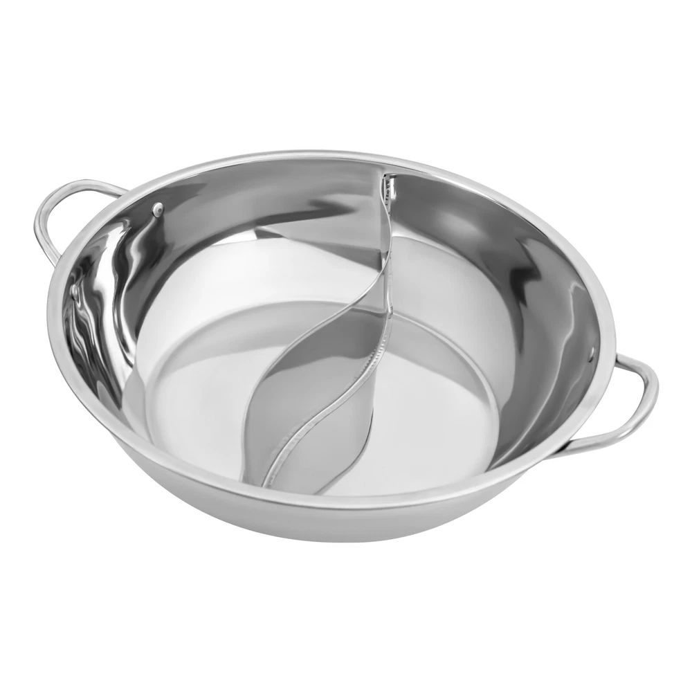 Application It can be used in kitchens in hotels, restaurants, homes, etc., and is suitable for use with induction stoves, gas stoves, electric stoves, ceramic stoves, and ovens. The Correct Way of Checking If a Pot is Leaking Please keep the pot balanced and stable. You can fill one side of the pot with water and the other side with colored water (such as vinegar, but not included). If the color of the water does not change, the pot is not leaking under the divider. Specification Material: Stainless Steel and Glass Color: Silver Shape: Round Process: Polish Mounting Type: Tabletop Assembly Required: No Is Dishwasher Safe: Yes Number of Pieces: 1 Package Size: 35.5*35*12cm/13.98*13.78*4.72in Product Size(D*H): 34*8.5cm/13*3.34in Bottom Diameter: 23cm/9in Gross Wei Stainless Steel Hot Pot W/ Dual Divider Shabu Shabu Pot W/ Glass Lid Cookware Stainless Steel Hot Pot W/ Divider Shabu Shabu Pot W/ Glass Lid Dual Sided Set Description If you are an experienced chef or passionate about cooking, then you undoubtedly know the importance of quality work in the kitchen. Our exceptional stainless steel hot pot is crafted from durable and healthy materials that can fulfill a wide range of cooking needs. So why wait? Make the smart choice and invest in this outstanding work today! Application It can be used in kitchens in hotels, restaurants, homes, etc., and is suitable for use with induction stoves, gas stoves, electric stoves, ceramic stoves, and ovens. The Correct Way of Checking If a Pot is Leaking Please keep the pot balanced and stable. You can fill one side of the pot with water and the other side with colored water (such as vinegar, but not included). If the color of the water does not change, the pot is not leaking under the divider. Specification Material: Stainless Steel and Glass Color: Silver Shape: Round Process: Polish Mounting Type: Tabletop Assembly Required: No Is Dishwasher Safe: Yes Number of Pieces: 1 Package Size: 35.5*35*12cm/13.98*13.78*4.72in Product Size(D*H): 34*8.5cm/13*3.34in Bottom Diameter: 23cm/9in Gross Weight: 1.48kg/3.26lbs Net Weight: 1.3kg/2.87lbs Package Included 1* Stainless Steel Hot Pot 1*Lid Key Features Build to Last: It is made of high-quality stainless steel with a polish treatment , making it durable, healthy, environmentally-friendly, and rustproof to meet your long-term cooking needs. It also offers superior stick resistance without reacting with food. Ample Space: 13*3.34 inches size makes it possible to cook enough food at once to serve you and your family. Cooking Assistant: There is a curved polymerized bottom to absorb heat quickly, and the design with a divider allows you to enjoy the delicious taste of a mandarin duck pot, while you can also use it to make soup, cook noodle lumps, steam buns, or deep fry chicken thighs to satisfy you and your family's cooking needs and taste buds! Compact and Lightweight: With its small footprint ( diameter: 9 inches ) and lightweight (2.87 lbs), you can easily pick it up or store it in a cabinet without taking up too much space. Effortless Clean : Thanks to its smooth surface, large opening(13" in diameter), and simple construction, you can wipe away surface stains with a single damp rag or wash it in the dishwasher. Installation-free: After you receive the product, you can simply clean it and use it directly, which is very convenient. Ideal Gift: Because of its practicality, you can give it as a Christmas, Thanksgiving, or housewarming gift to your cook-loving friends. Customer Service: We aim to provide quality products and services. If you have any problems, please feel free to contact us. We will reply and solve the problem for you as soon as possible. Details Round Edges: The smooth, and burr-free edges make it not only more comfortable to use but also care for your skin. Lid With Handle: The visualized and vented lid allows you to better see what's cooking and ensures that your food is delicious. It has a handle that allows you to hold the lid easily. Sturdy Handles: Riveted handles on both sides of the pot ensure a safe and comfortable grip while allowing you to hold it when cooking on the stovetop or moving it. Notes There is a scratch at the bottom because the divider needs to be sealed. Please wash in hot water with dishwashing liquid before first use. Please do not use only one side of the pot, this will cause the soup to leak to the other side due to temperature imbalance. Please preheat the cookware over low heat first. Please add the right amount of oil while cooking without spraying oil, which can provide a good release for your food. Low-to-medium temps are sufficient for everyday cooking and high heat often causes food to burn and thus stick directly to the bottom of the pot. Please don't move the food too often. Please do not heat an empty pot for a long time to avoid deforming the pot. Please be sure to dry the pot and the bottom of the pot after each use. Please avoid detergent residue as it may corrode the surface of the pot. After a period of use, please clean with a heavy-duty stainless steel cookware cleaner and stainless steel polishing kit (not included). Please avoid direct rinsing of the hot pot with cold water and rapid temperature changes. Please avoid placing strong acids and alkalis food in the pot for a long time. Please allow the slight color difference caused by the shooting light and 1-3cm error due to manual measurement, and make sure you do not mind before ordering. Payment Delivery details Terms of sales About us Contact us Payment We accept ebay payment 。 Fees such as import duties, taxes are not included in the item price or shipping costs. These charges are the buyer's responsibility. Delivery details Shipping: 2-9 working days to: USA Terms of sales We maintain high standards of excellence and strive for hundred percent customer satisfaction. Feedback is very important to us. We hope that you contact us immediately before you give neutral or negative feedback, so tha