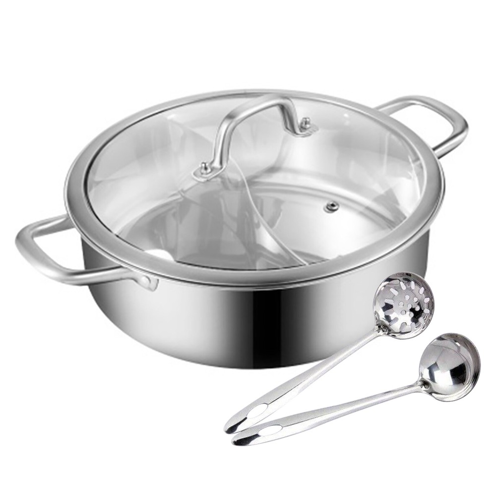 $ 20.54Stainless Steel Shabu Hot Pot with Lid for Induction Cooking Dual Side Soup Nabe
