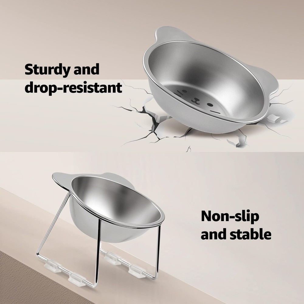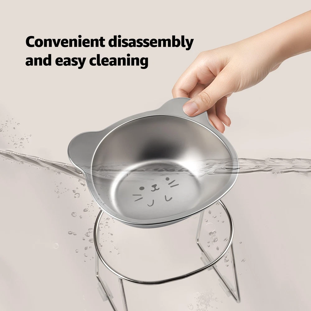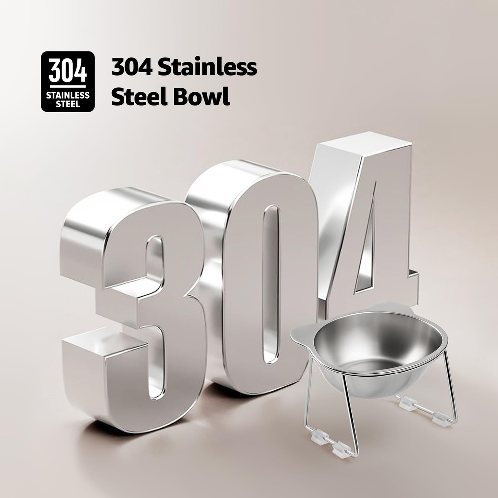 Elevate Your Cat's Dining Experience with Premium Comfort & Hygiene! Give your feline friend a healthy, stress-free eating experience with our stainless steel elevated cat bowl. Designed for both comfort and practicality, this elevated feeder promotes proper posture and joints while your cat eats, making it ideal for cats. Reduces Neck Strain: The stainless steel elevated cat bowl is designed to promote better posture, aid digestion, reduce neck strain, and enhance feeding comfort. Prevents Whisker Fatigue: The wide and shallow design prevents whisker fatigue, while the cat food bowl non-slip base ensures the bowl stays in place during feeding. Durable and Hypoallergenic: Made from food-grade SUS304 stainless steel, this raised cat food bowls prevents chin allergies is resistant to breaking. Practical and Easy to Clean: With its smooth stainless steel surface, this elevated cat bowl is both functional and easy to clean. It is dishwasher-safe and built to last. Perfect for Indoor Cats: Measuring 5.9 inches in diameter and 4.7 inches in height, this cat elevated food bowl is ideal for indoor cats. It helps keep the feeding area clean and tidy, making it a perfect choice for any home.